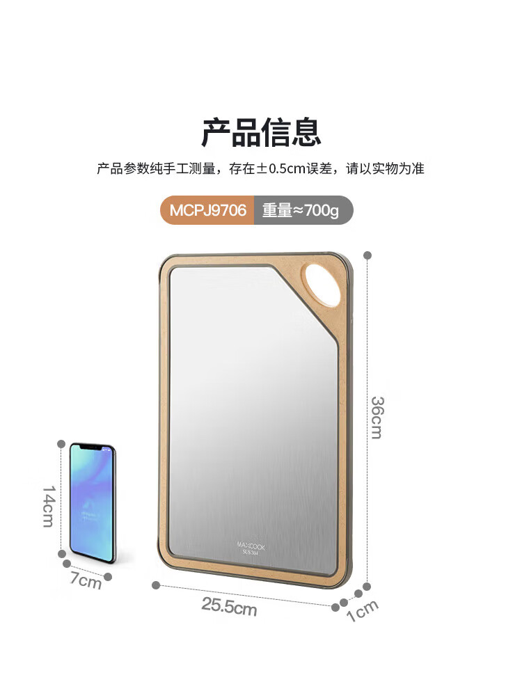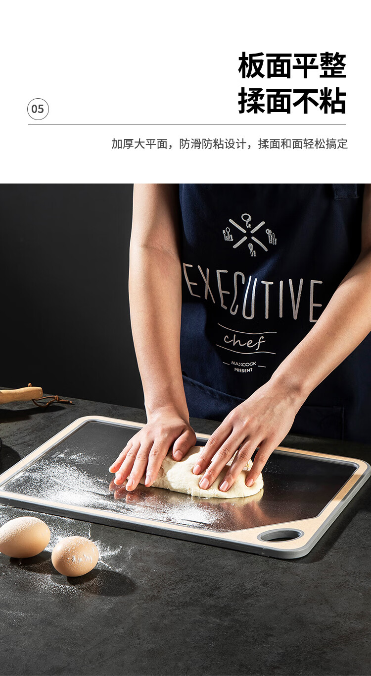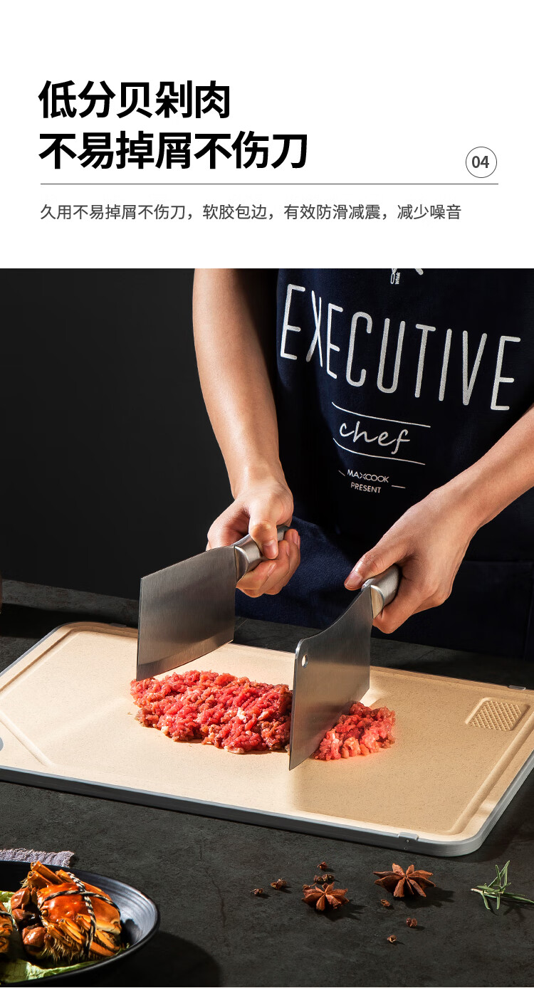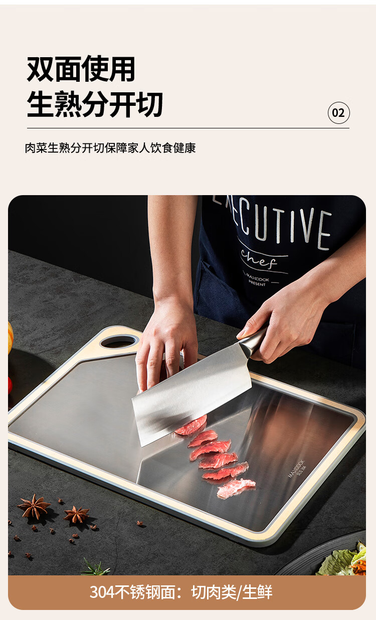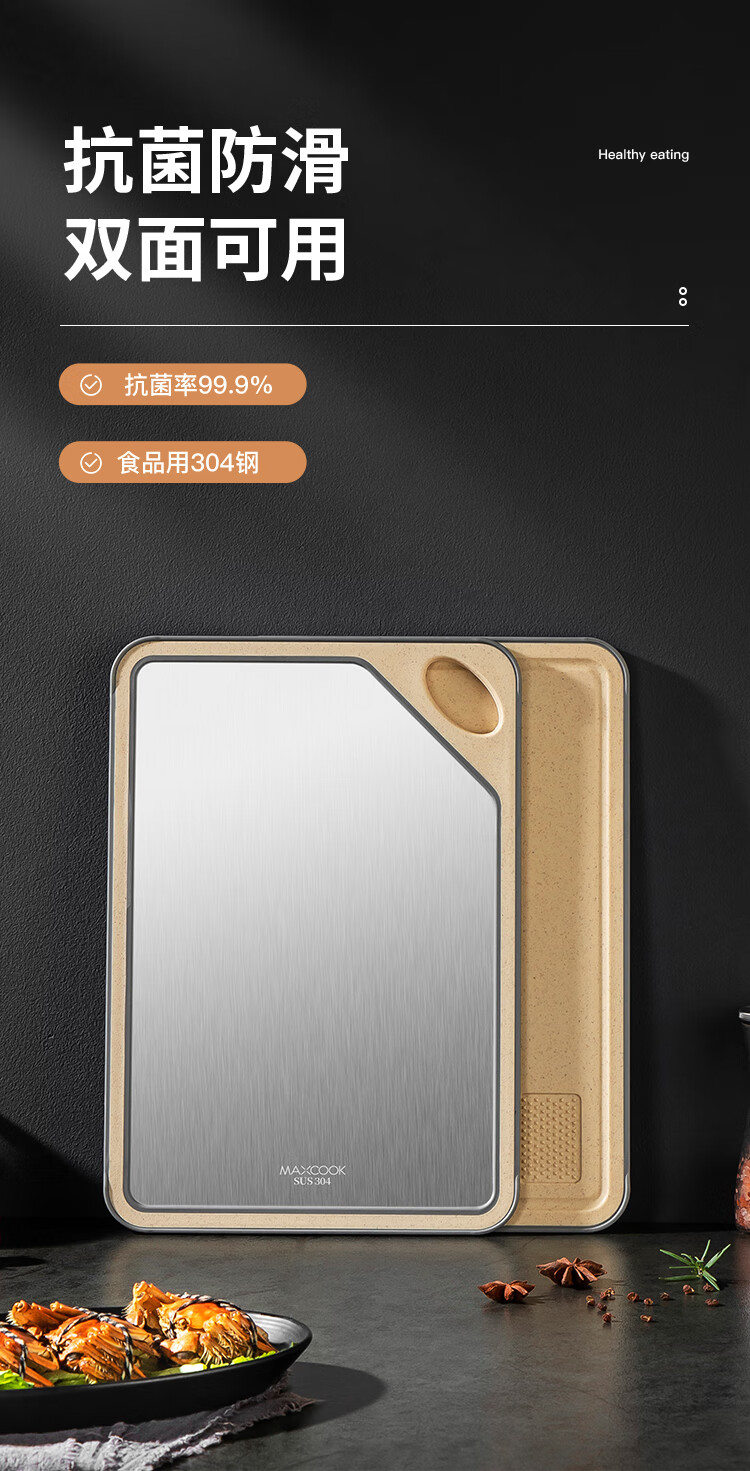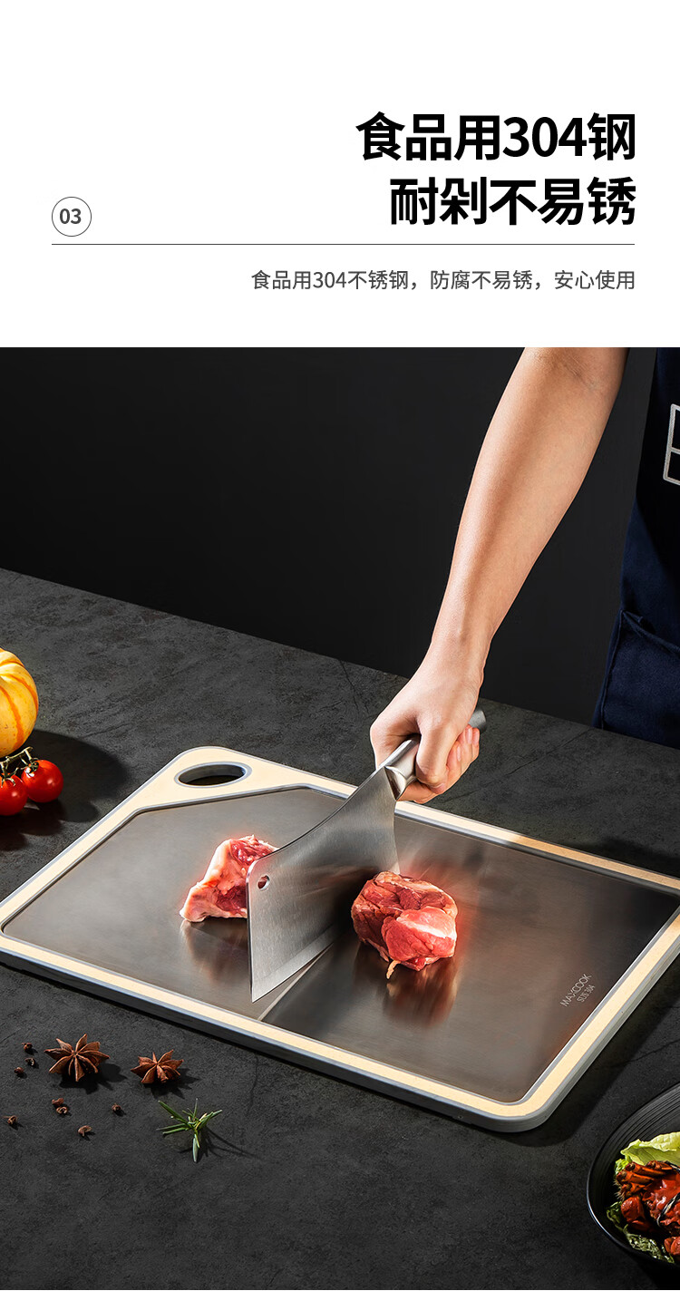 MAXCOOK Schneidebrett aus Edelstahl 304, antibakterielles und schimmelresistentes Schneidebrett, Fleischschneiden, rohes und gekochtes Trennbrett, doppelseitig klebendes Brett 40*28*1 cm