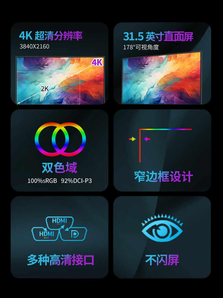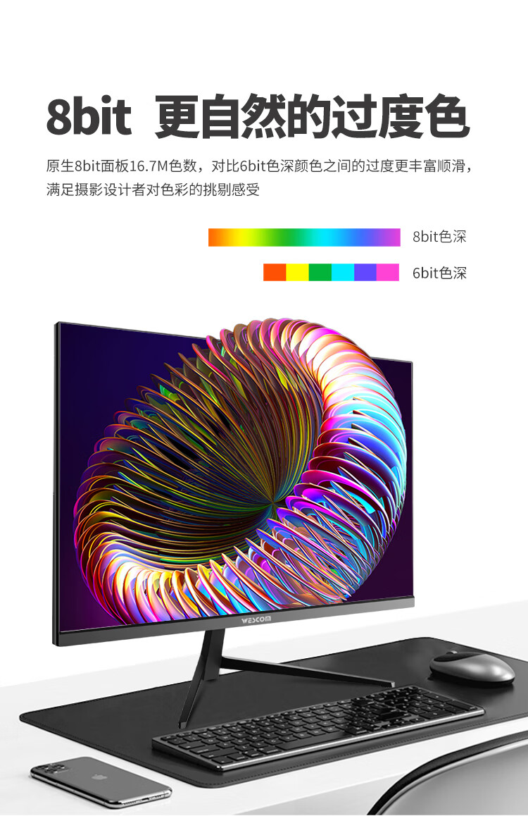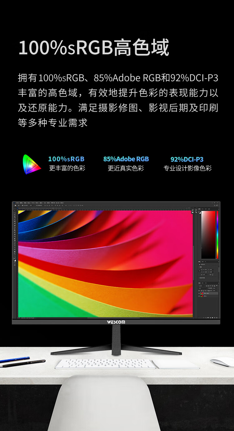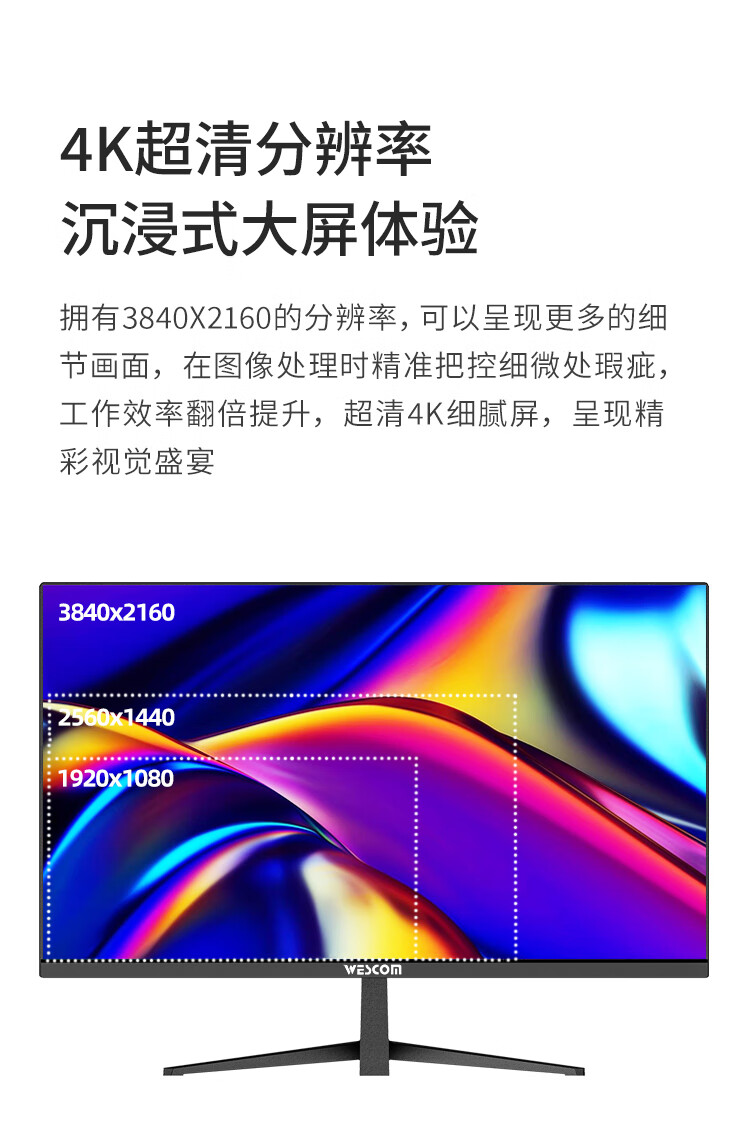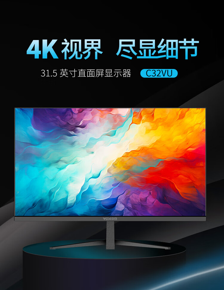 WESCOM31.5英寸4k超高清大屏幕 广视角微边框 商用办公设计监控壁挂台式电脑显示器 C32VU