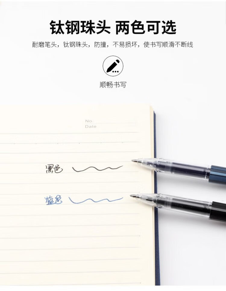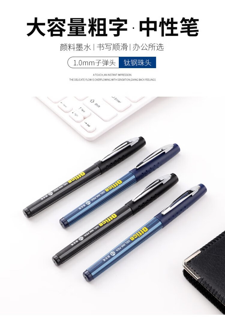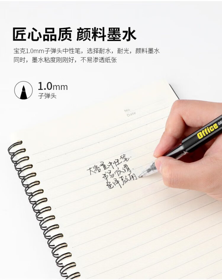 BAOKE large-capacity gel pen, wear-resistant tip, smooth writing, student stationery brush, office supplies signature pen, black 1.0mm bullet tip, 12 pieces/box PC1048