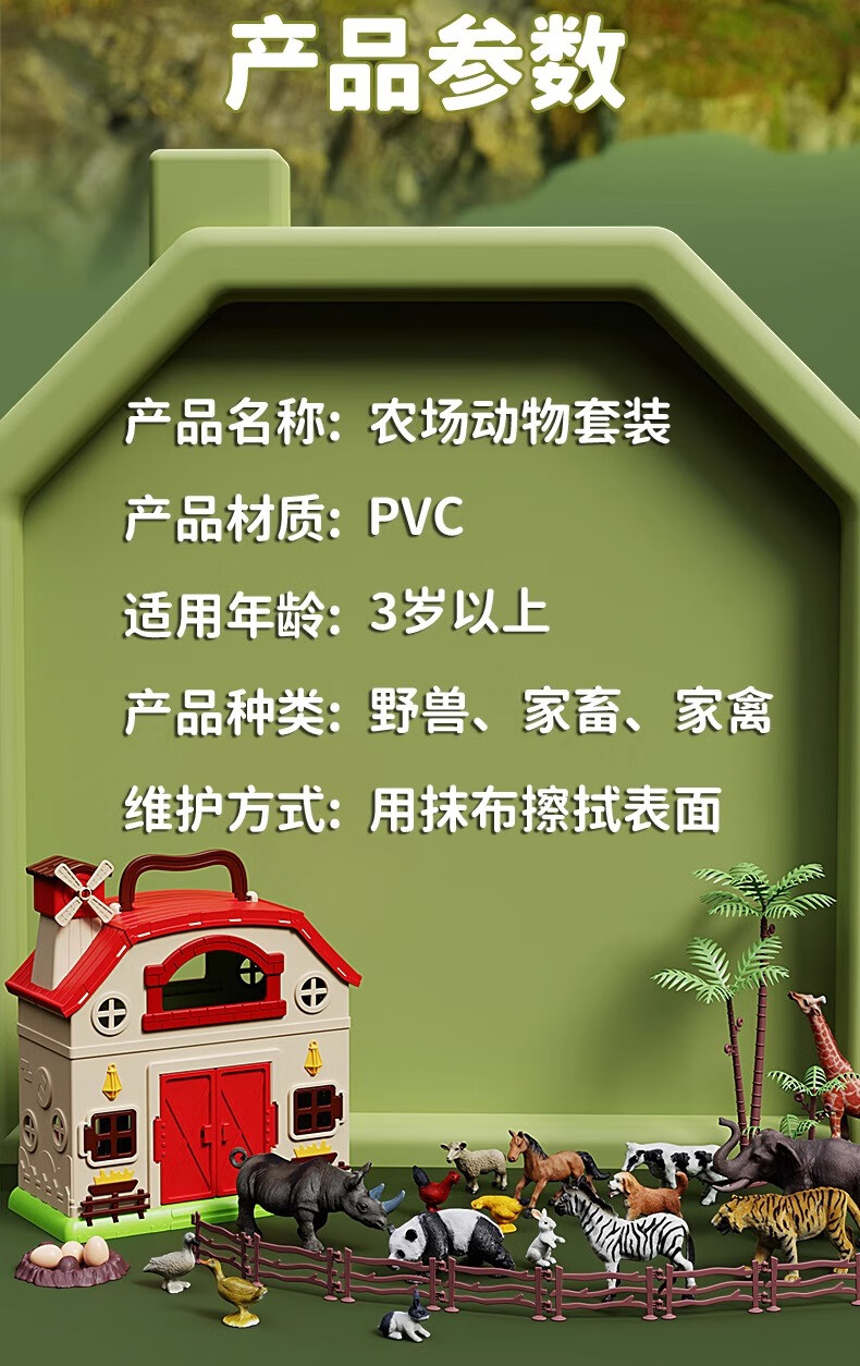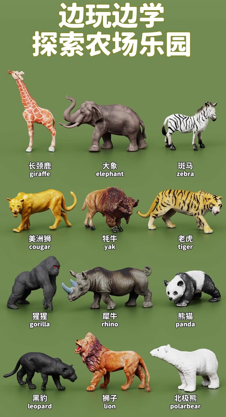 斯纳恩(Snaen)仿真动物模型儿童玩具套装3岁6男女孩童益智早教过家家生日礼物盒