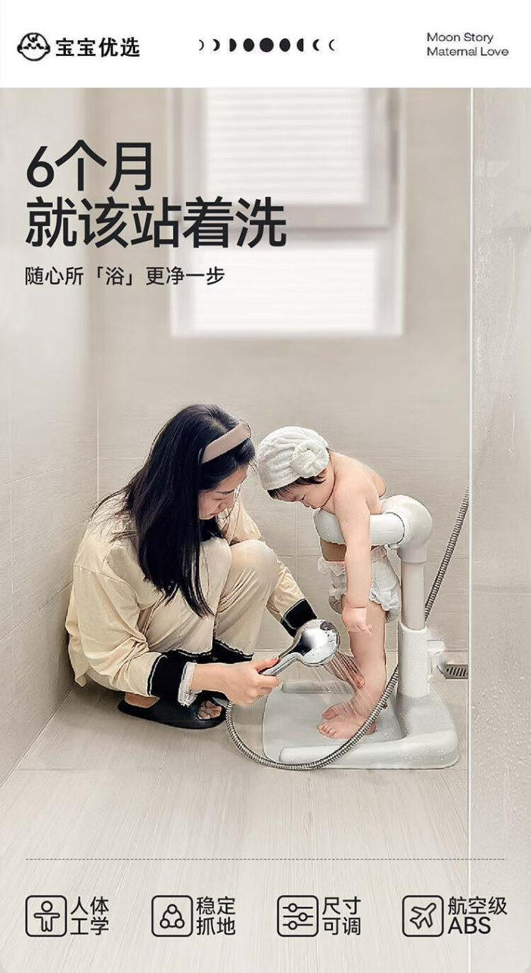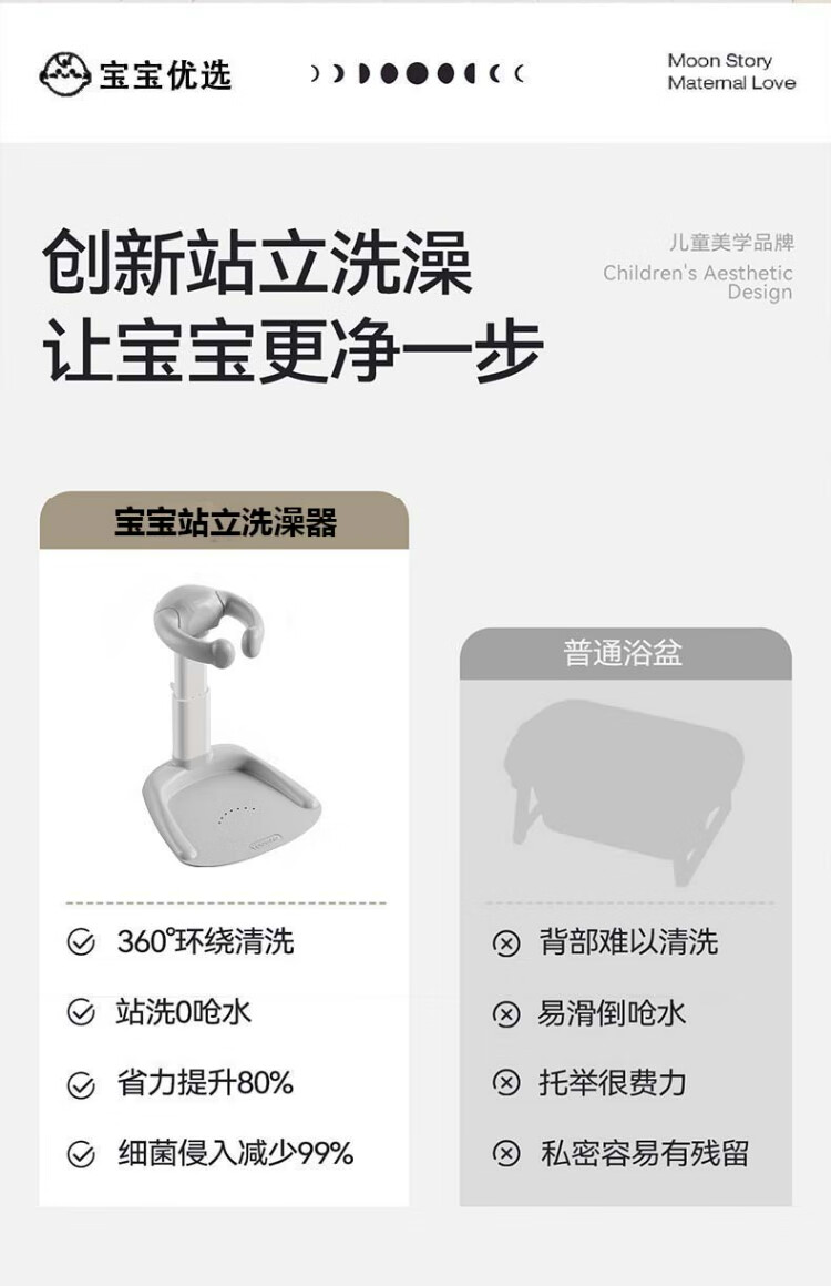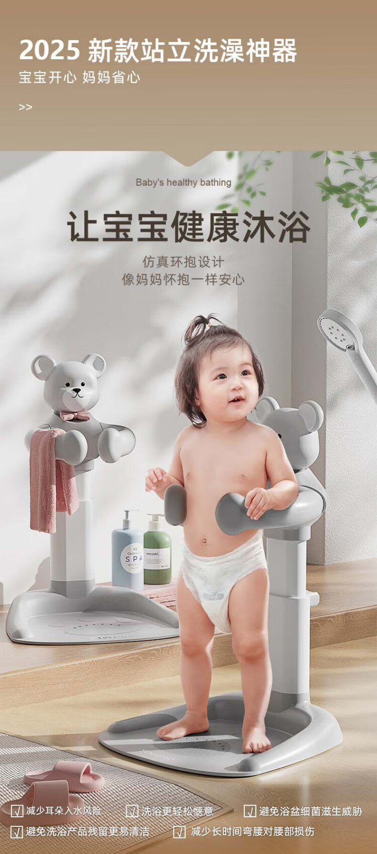 MAILE KID baby standing bath artifact newborn high-end baby shampoo stand washing butt artifact boys and girls birthday gifts