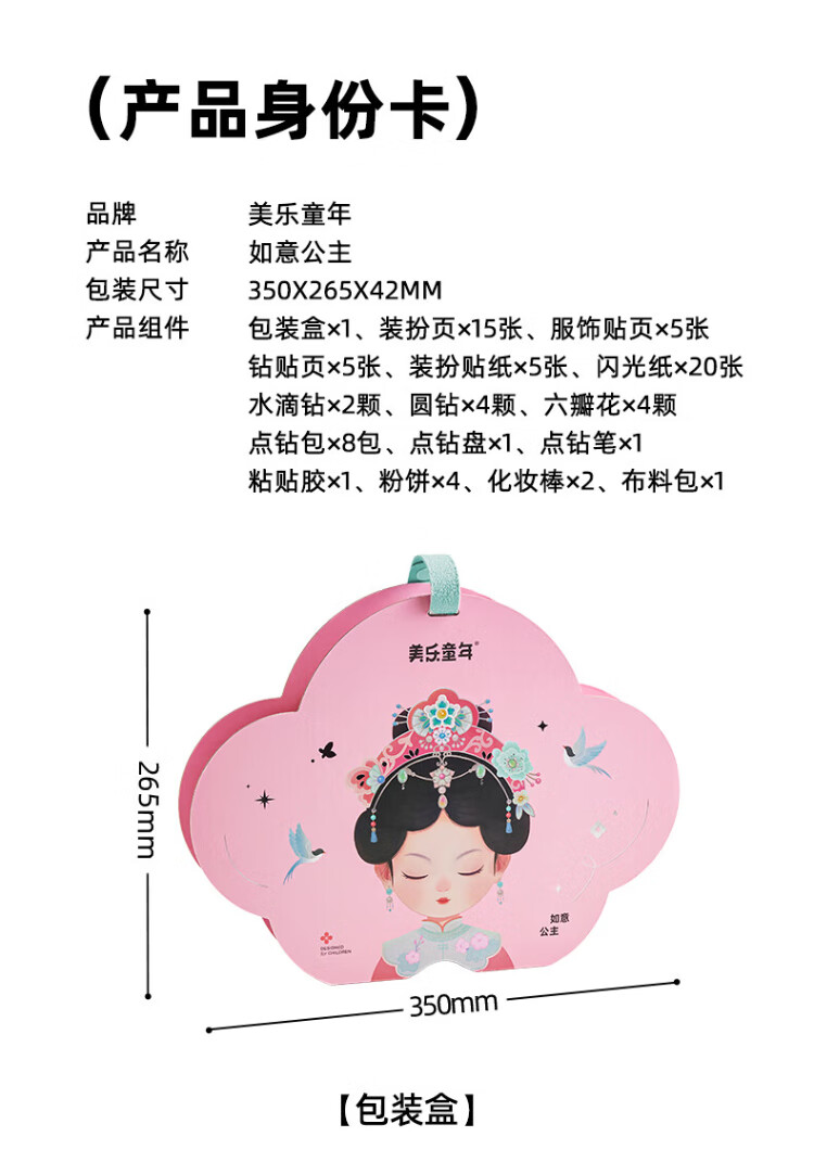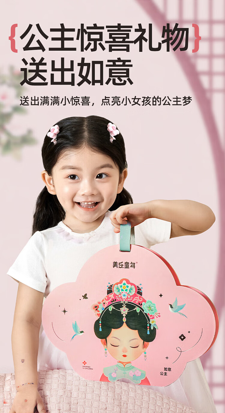 美乐童年如意公主化妆包+3D贴贴乐女孩玩具安静书5-9岁女童礼物