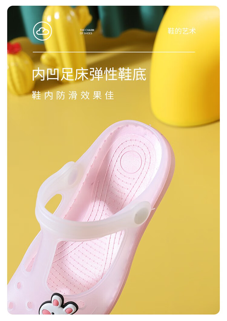迪士尼(DISNEY)新款女孩童凉鞋女童洞洞鞋厚底夏中大童女童沙滩鞋学生凉拖鞋 果冻公主金色 25 内长16.5cm