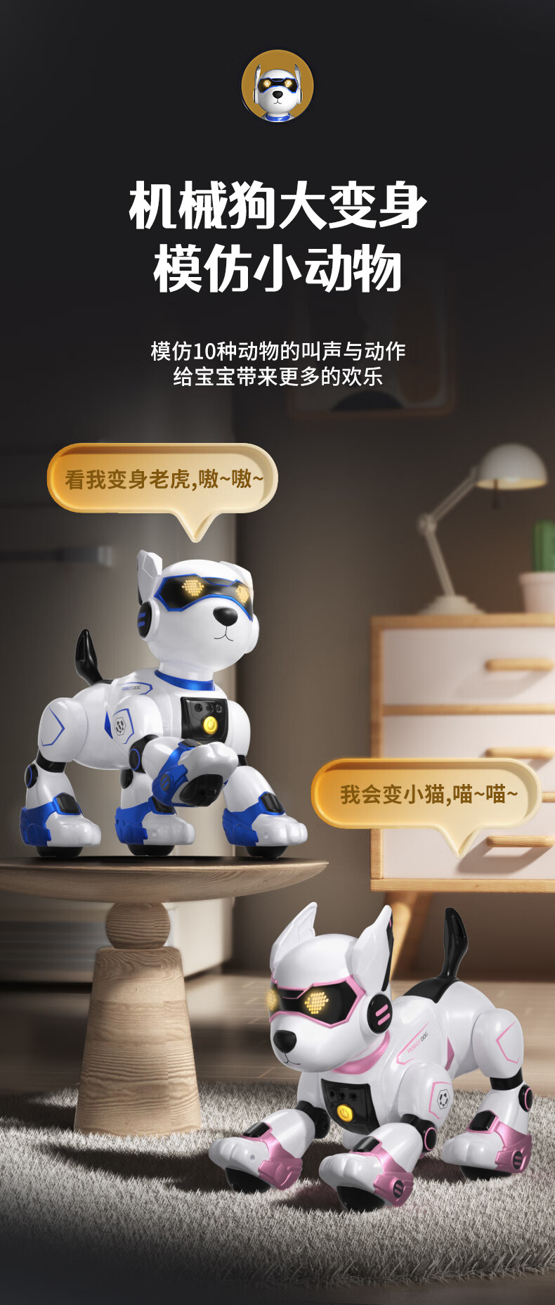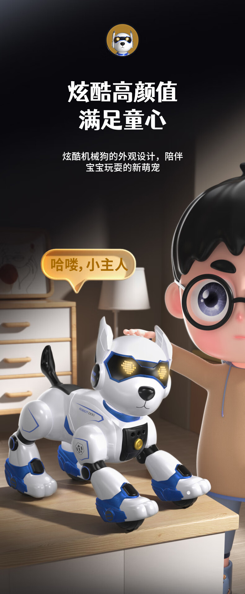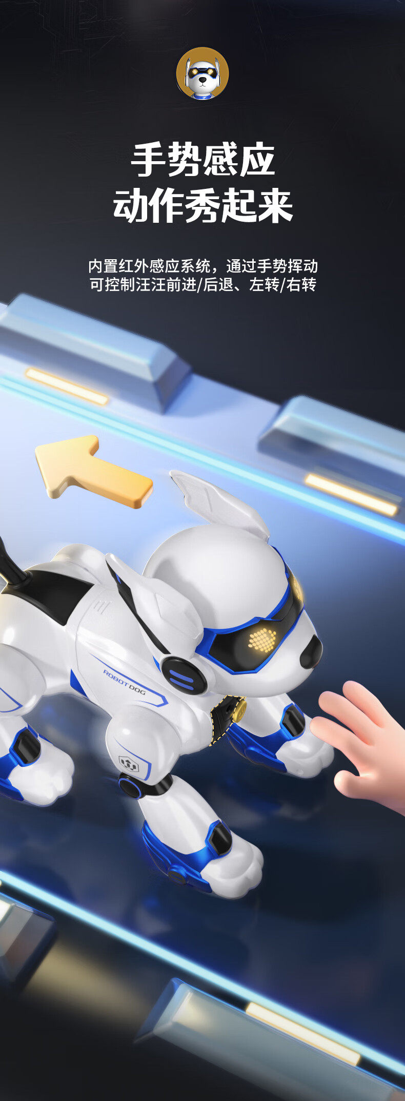 JJRC儿童玩具智能机器狗1-3岁男孩生日礼物女孩三岁宝宝两岁2小孩一岁 早教益智机器狗【声控款】N3蓝色 仿真电子狗男童二岁女童1到3岁