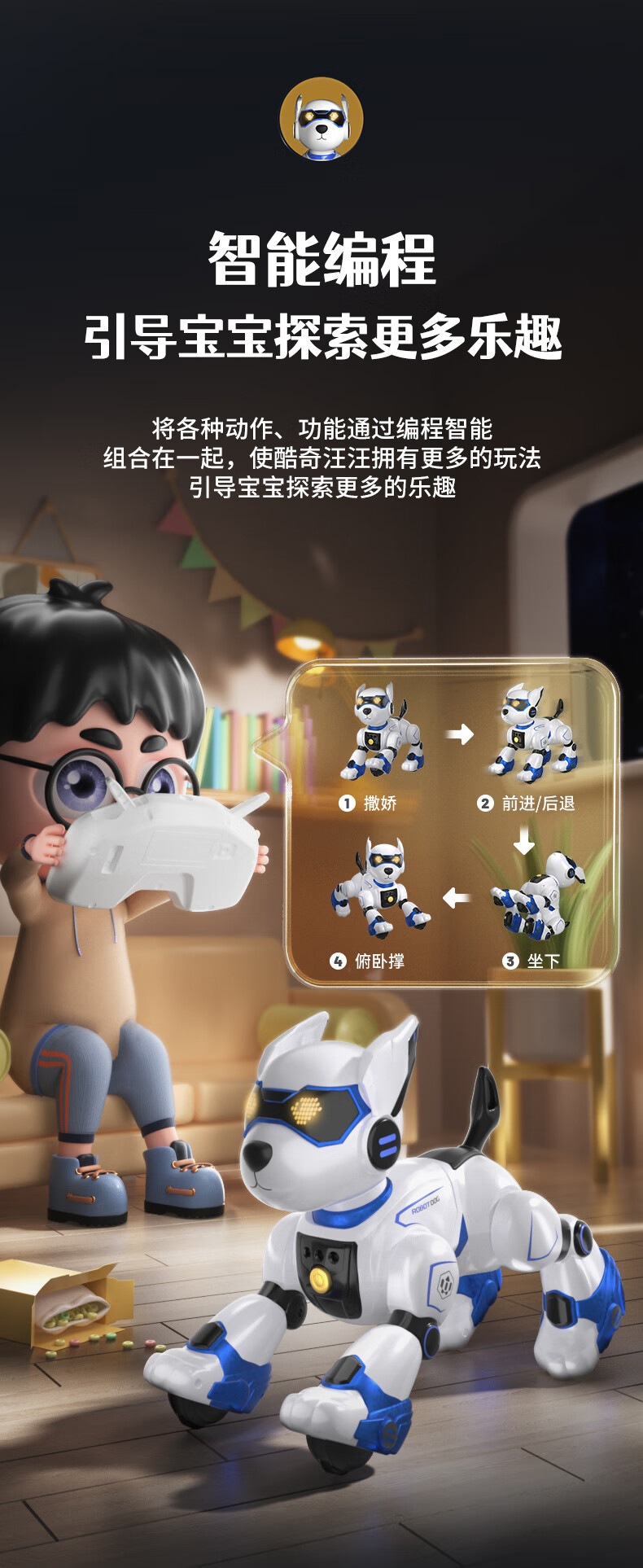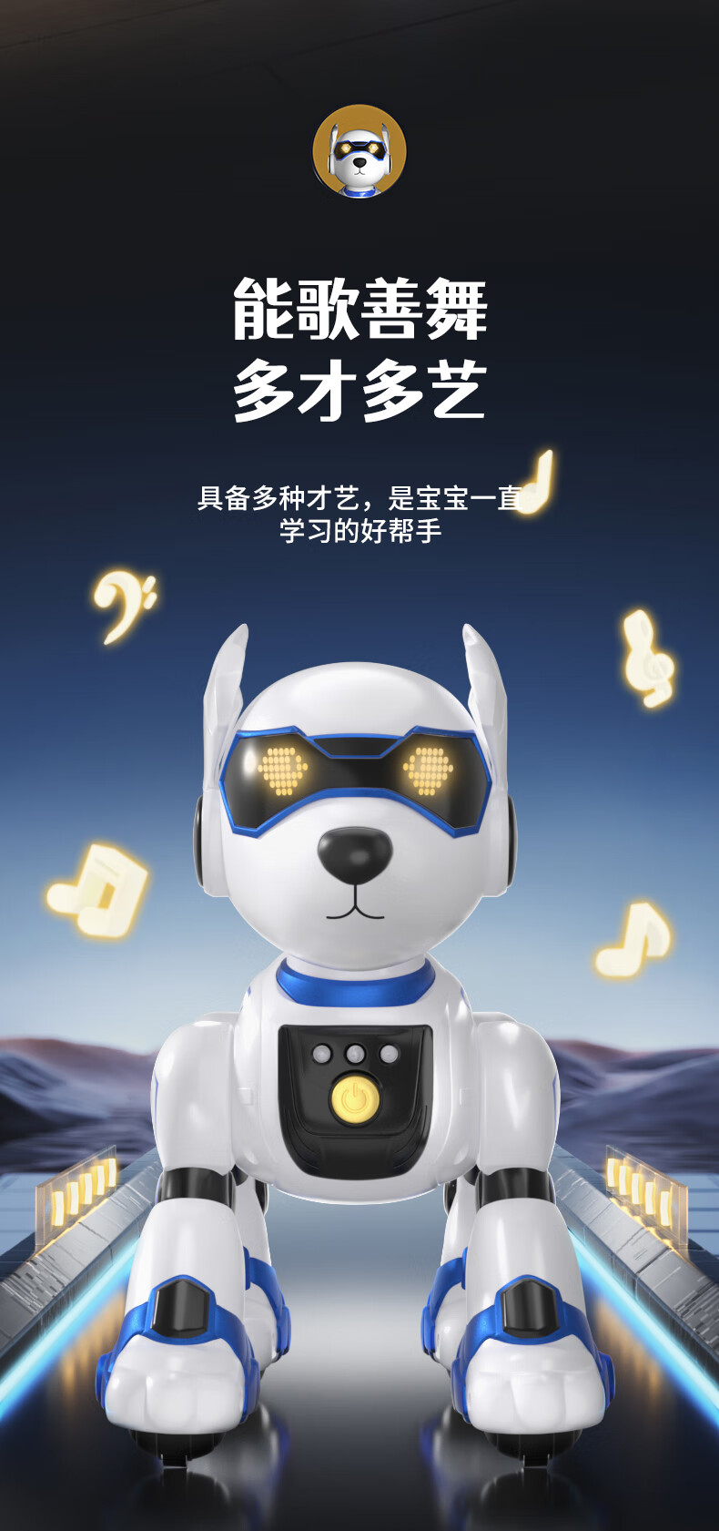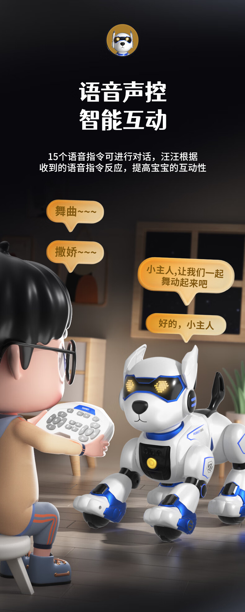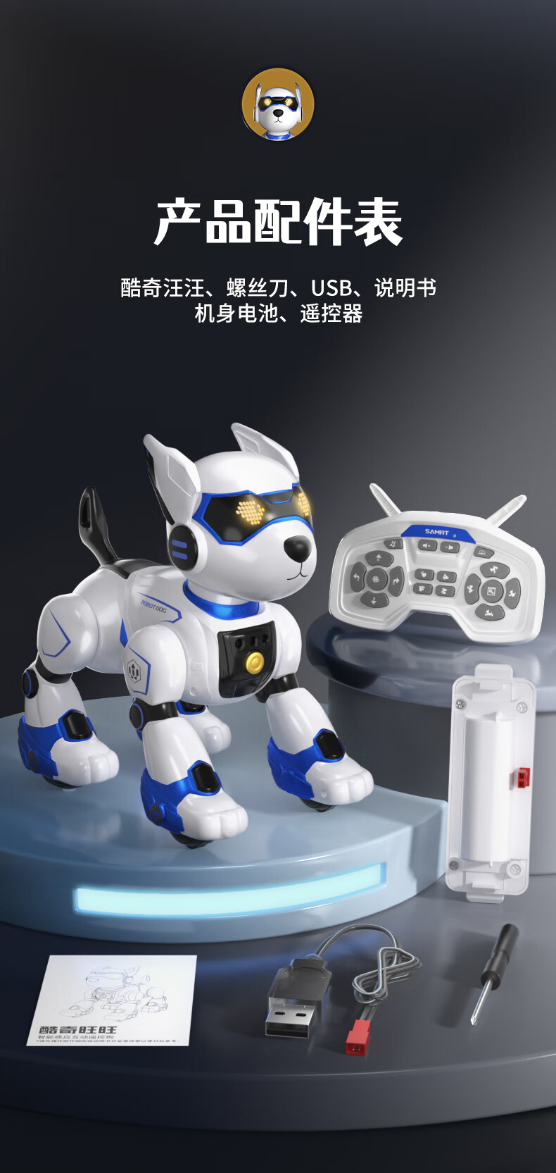 JJRC儿童玩具智能机器狗1-3岁男孩生日礼物女孩三岁宝宝两岁2小孩一岁 早教益智机器狗【声控款】N3蓝色 仿真电子狗男童二岁女童1到3岁