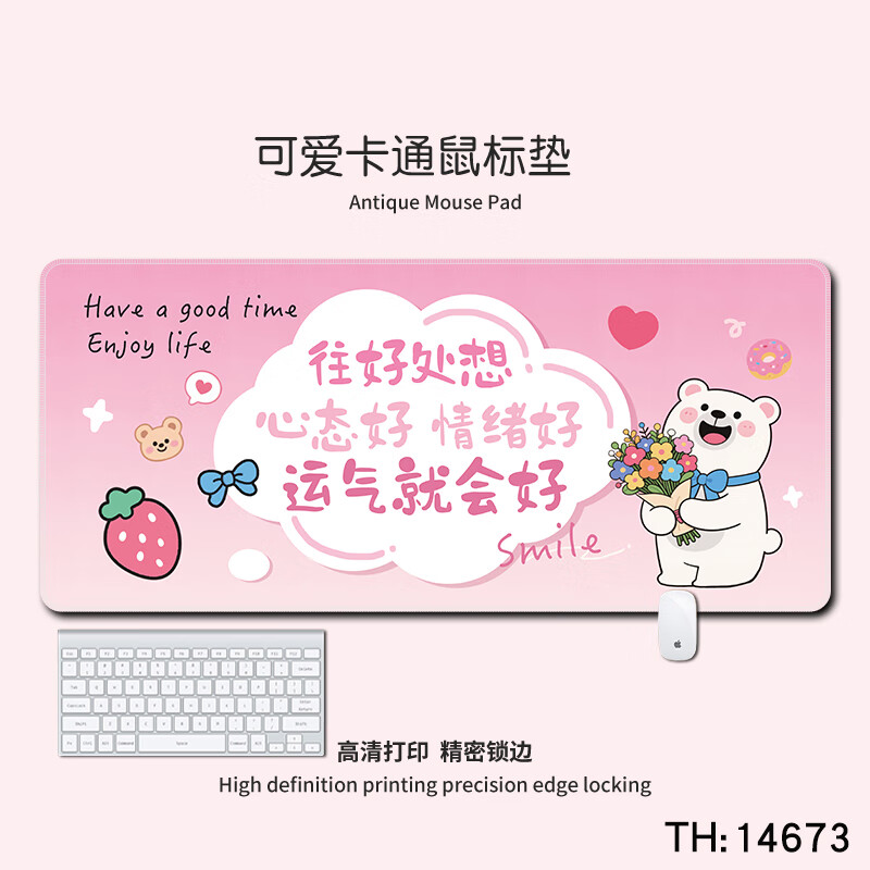 三色猫(SFMCEMQ) 卡通可爱超大号鼠标垫男女生办公家用学习游戏电竞防滑书桌垫键盘垫子动漫加厚锁 15362 80厘米x30厘米x3毫米