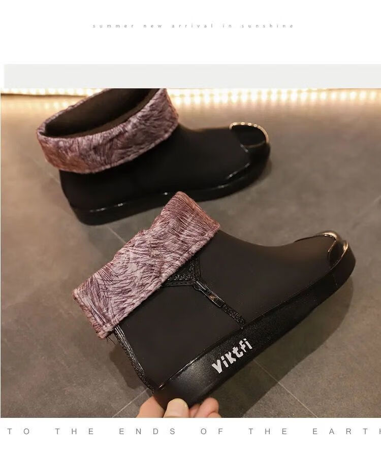 氧龙水鞋防滑雨鞋女防滑外穿新款时尚女士短筒雨鞋加棉套四季通用成人 688雨鞋-黑色 [标准码数] 39 (245mm)