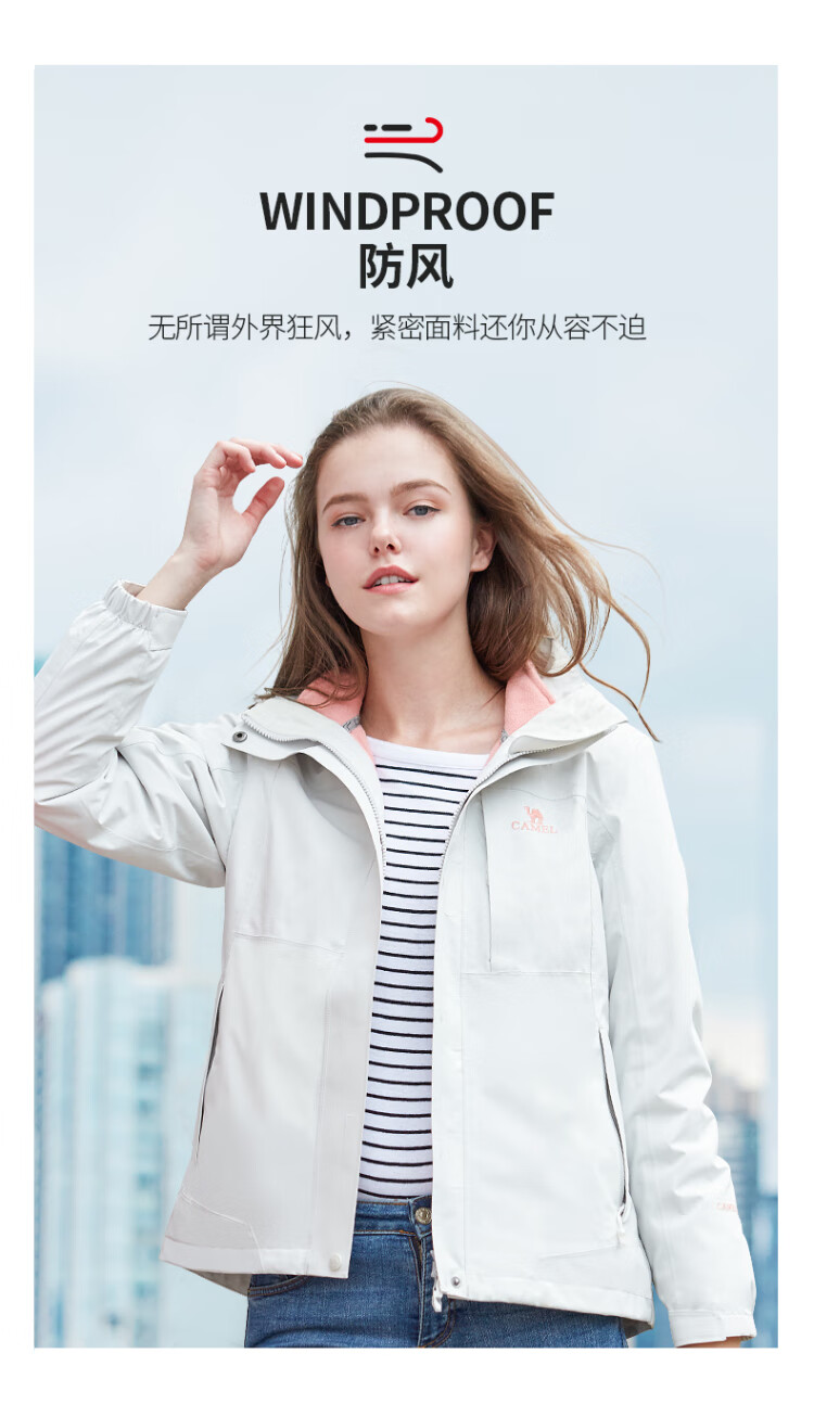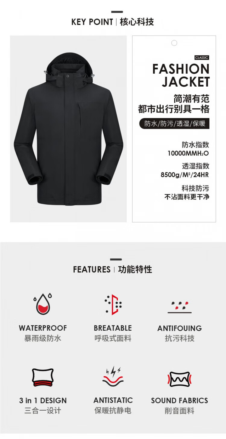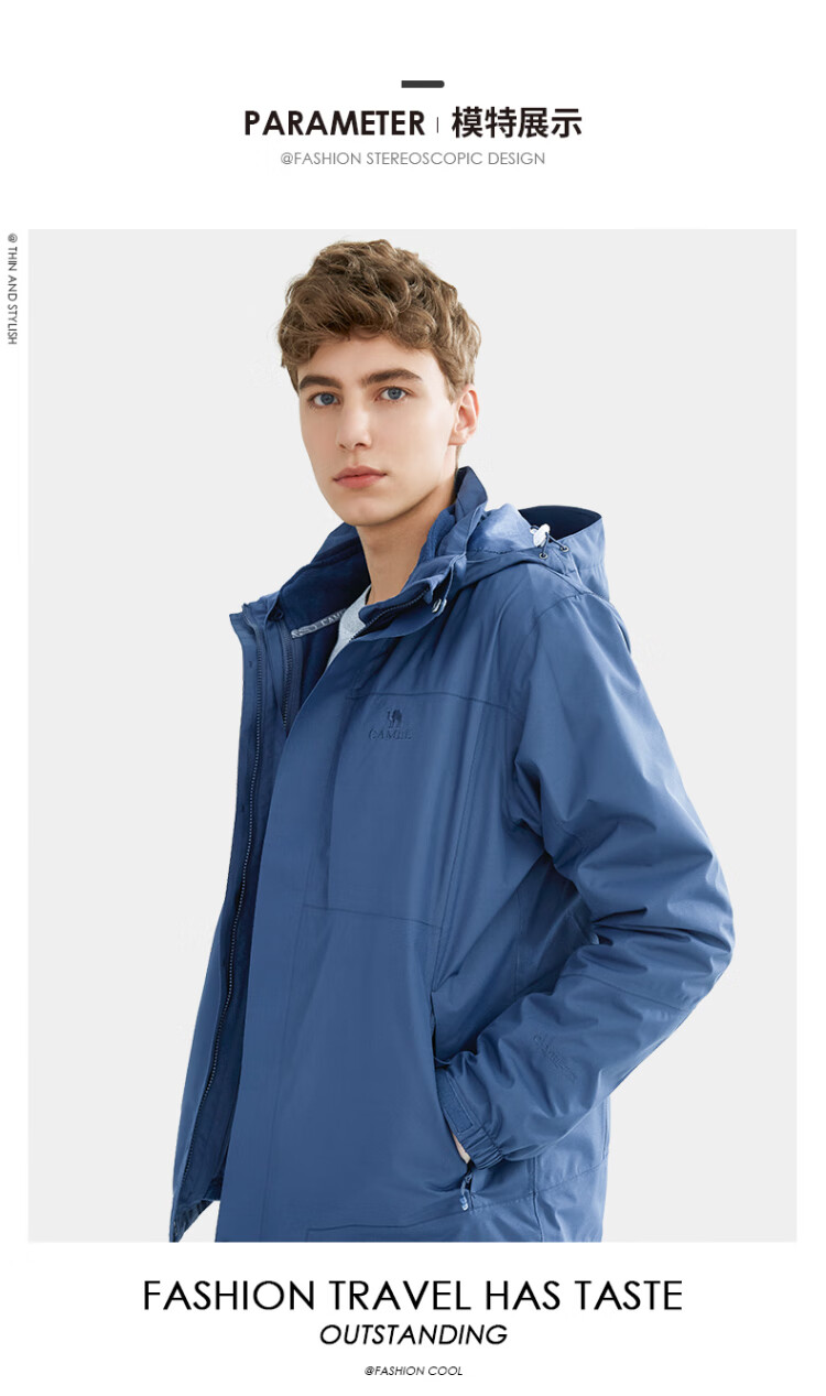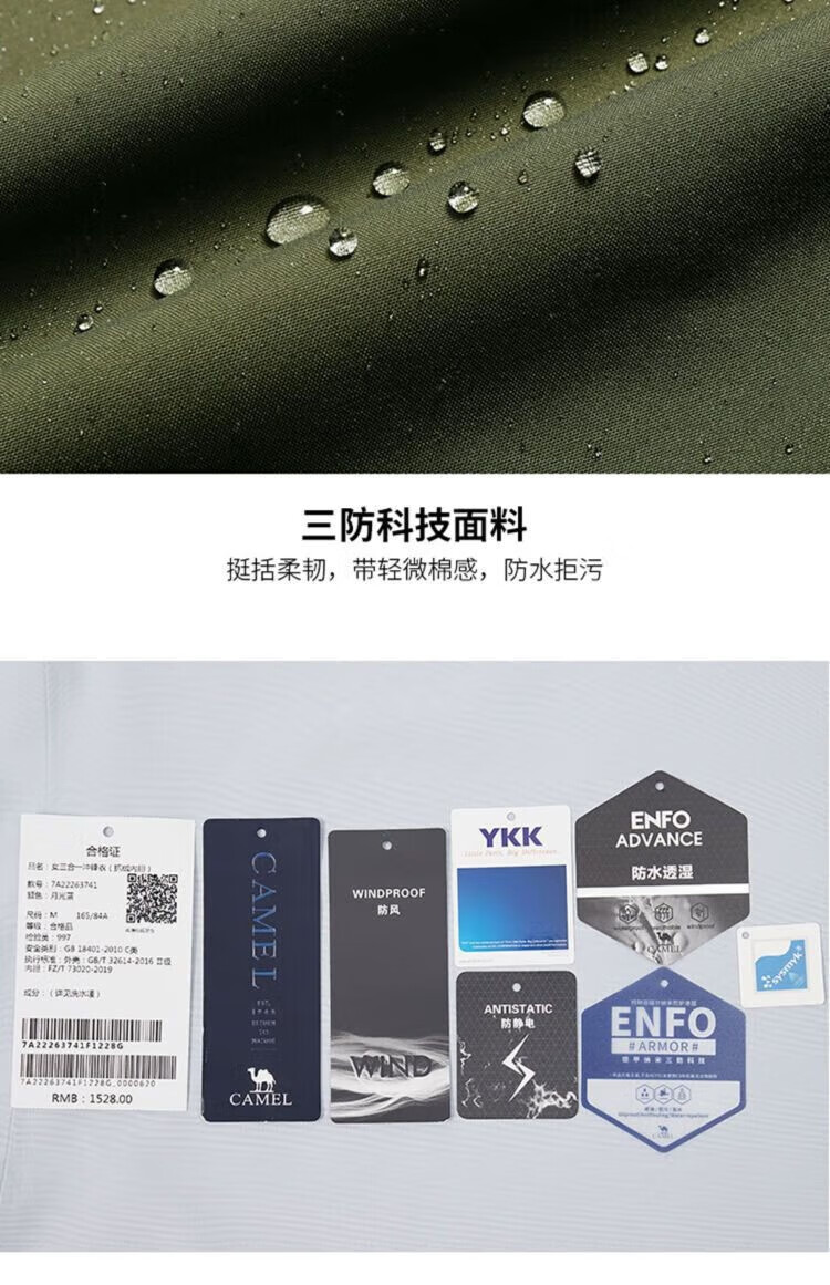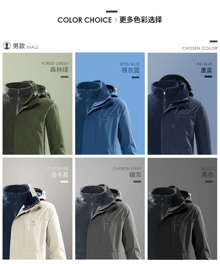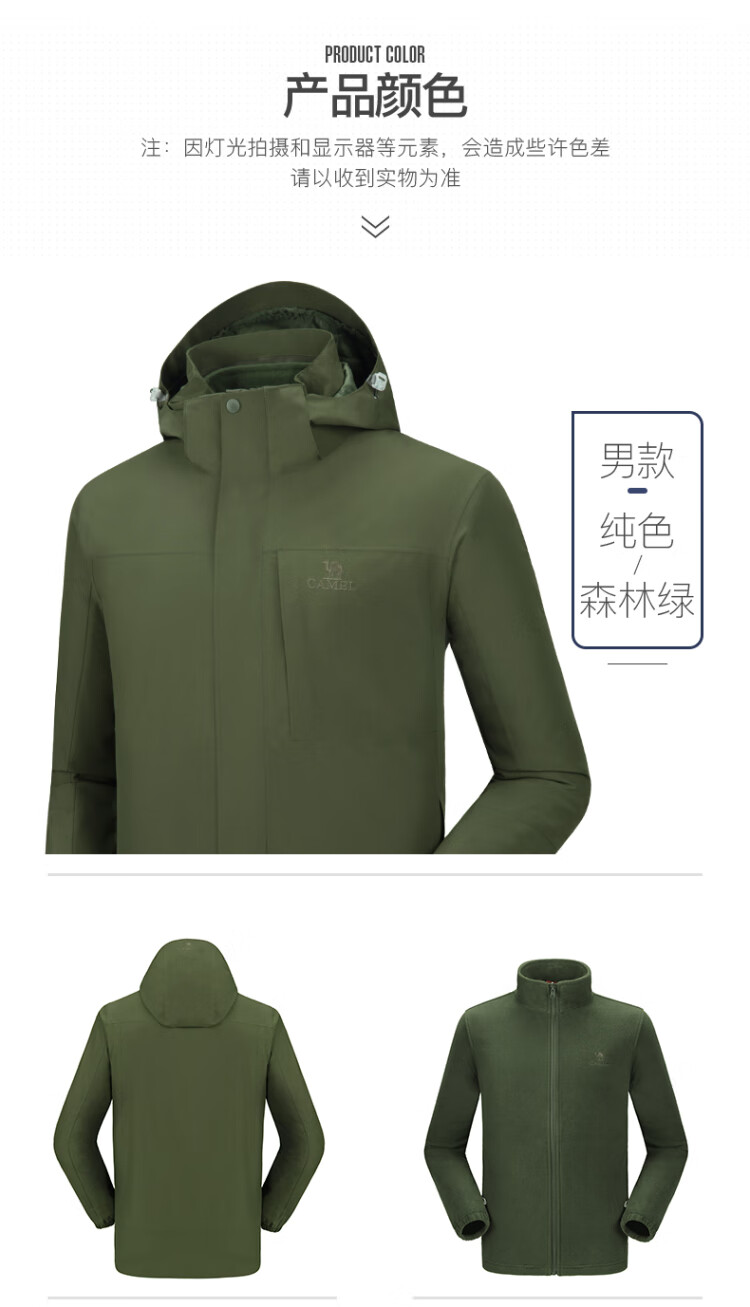 Camel (CAMEL) three-proof windbreaker jacket for men and women three-in-one removable windproof waterproof stain-proof jacket windbreaker AD12263514X, Phantom Black, same style for men and women XL