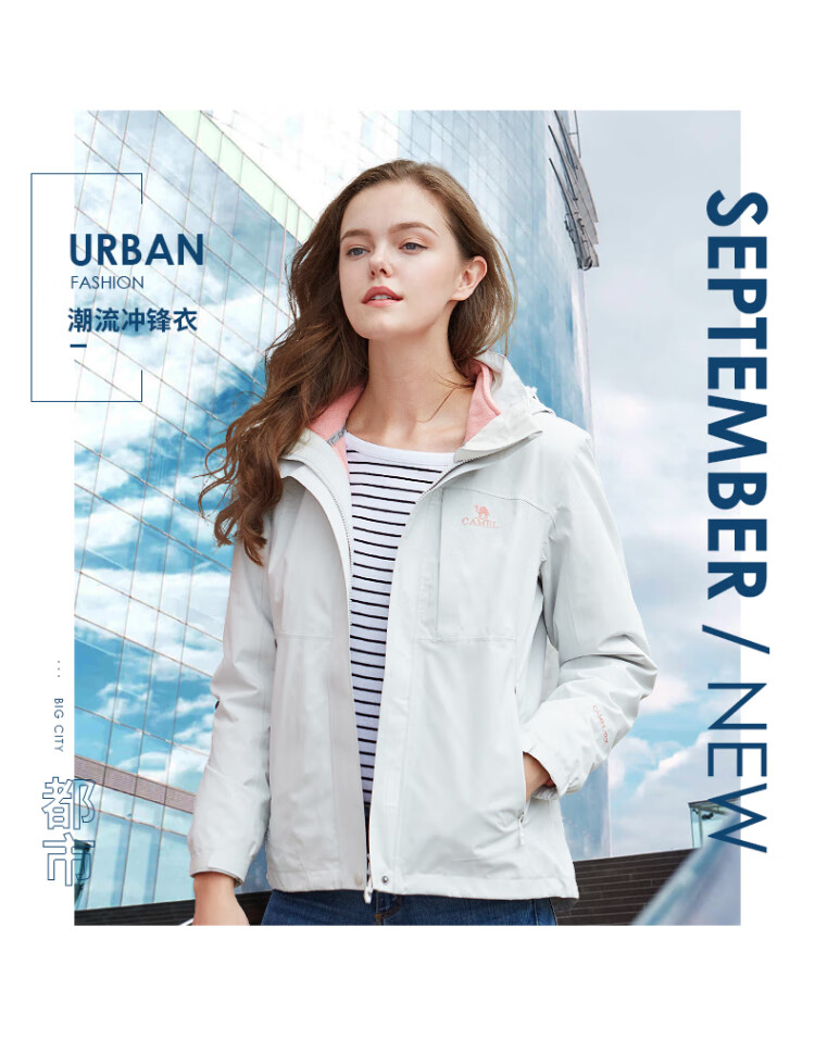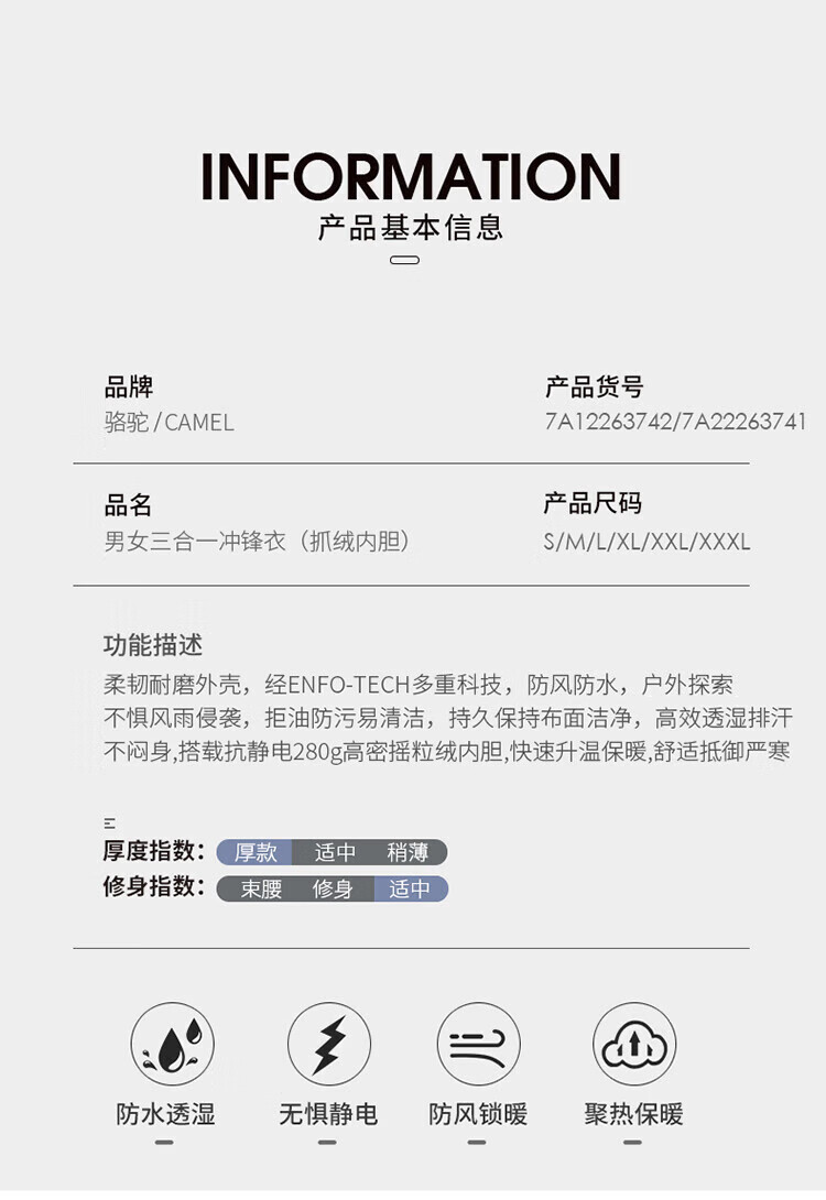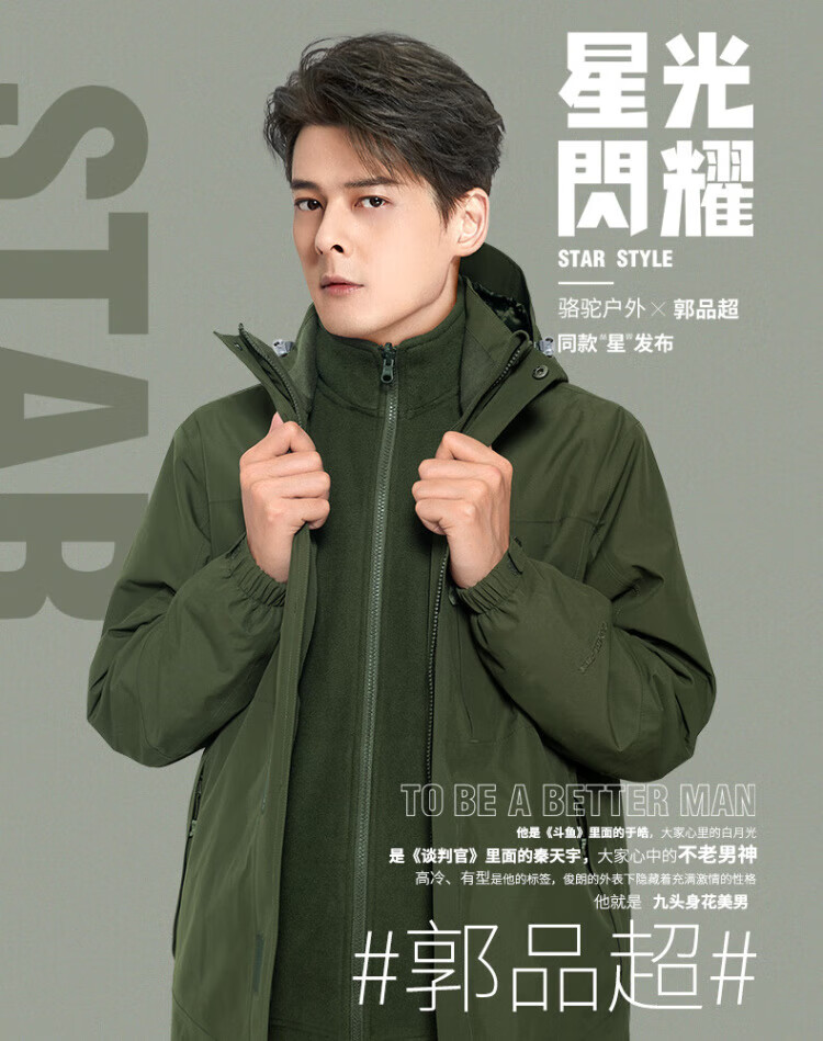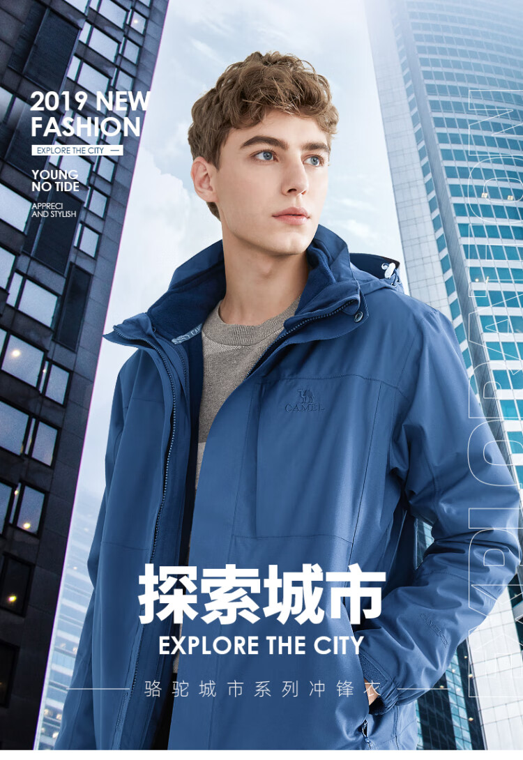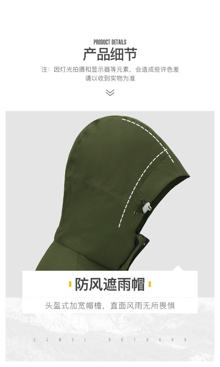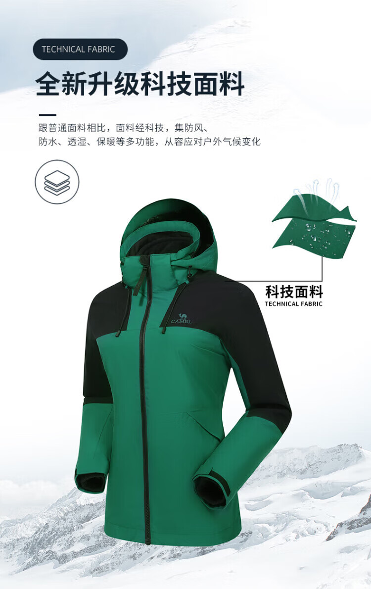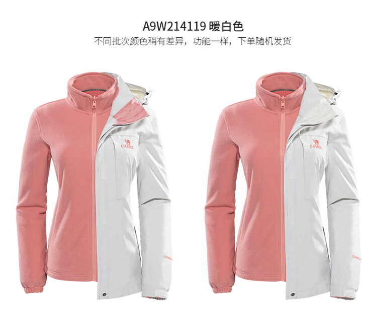Camel (CAMEL) three-proof windbreaker jacket for men and women three-in-one removable windproof waterproof stain-proof jacket windbreaker AD12263514X, Phantom Black, same style for men and women XL