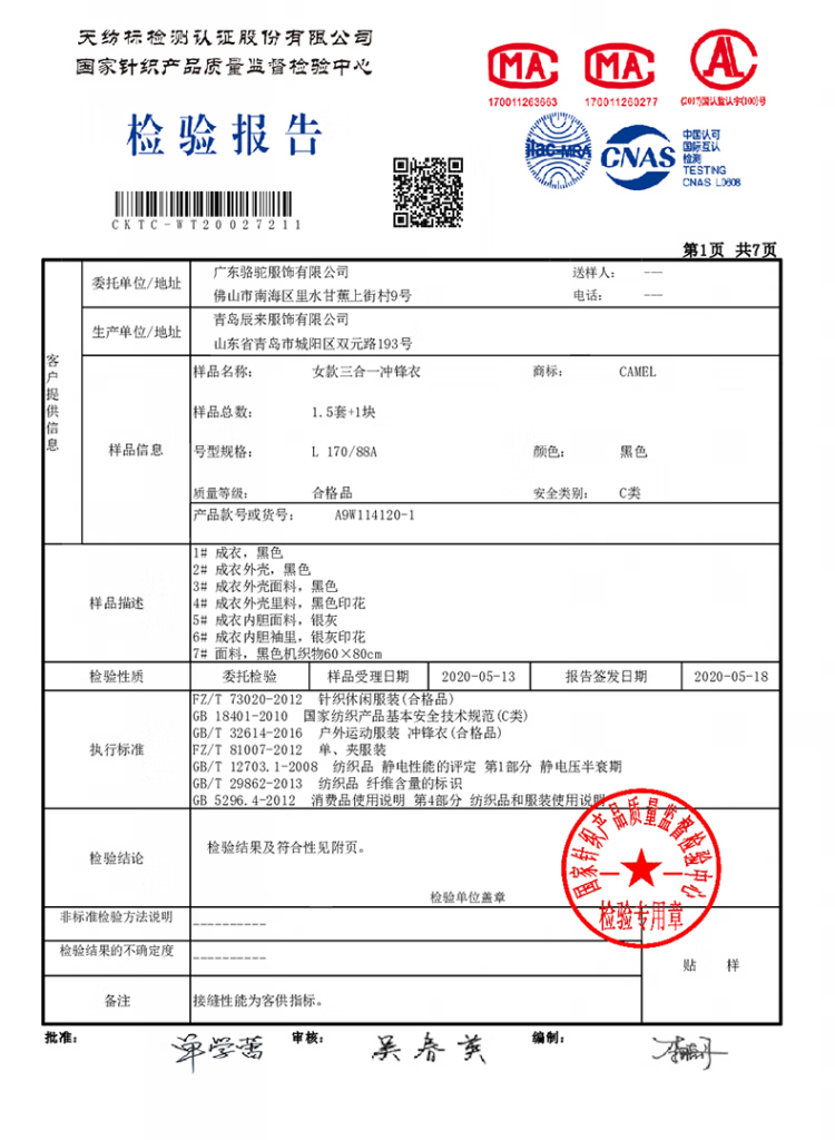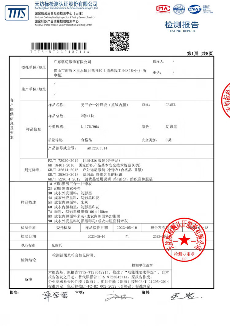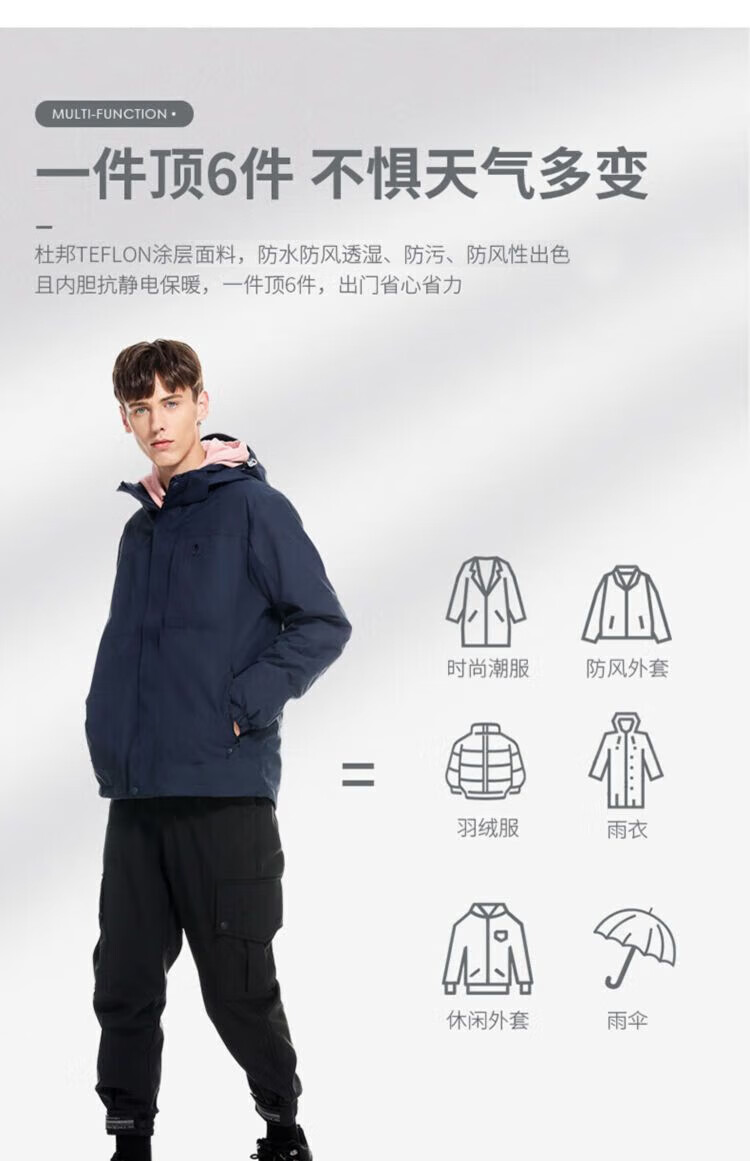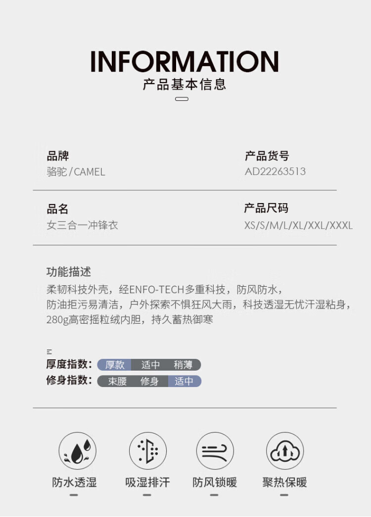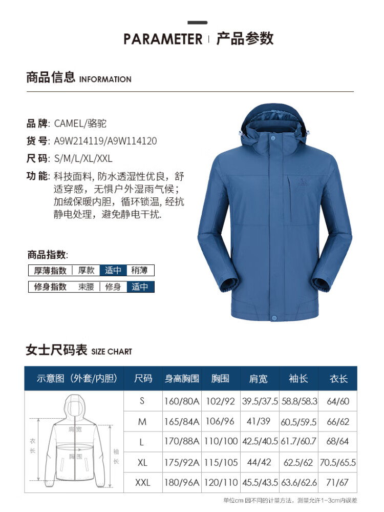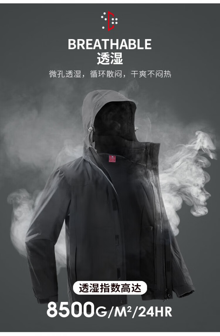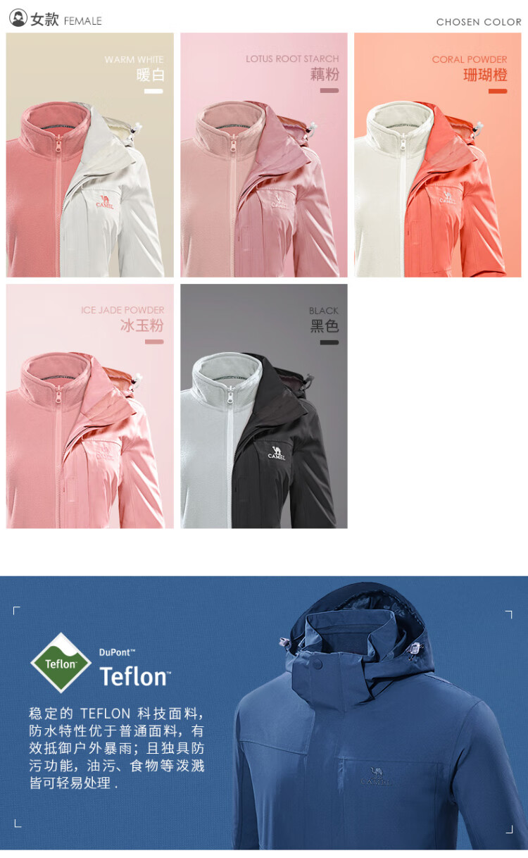 Camel (CAMEL) three-proof windbreaker jacket for men and women three-in-one removable windproof waterproof stain-proof jacket windbreaker AD12263514X, Phantom Black, same style for men and women XL