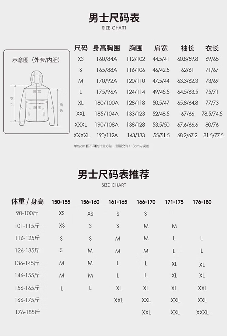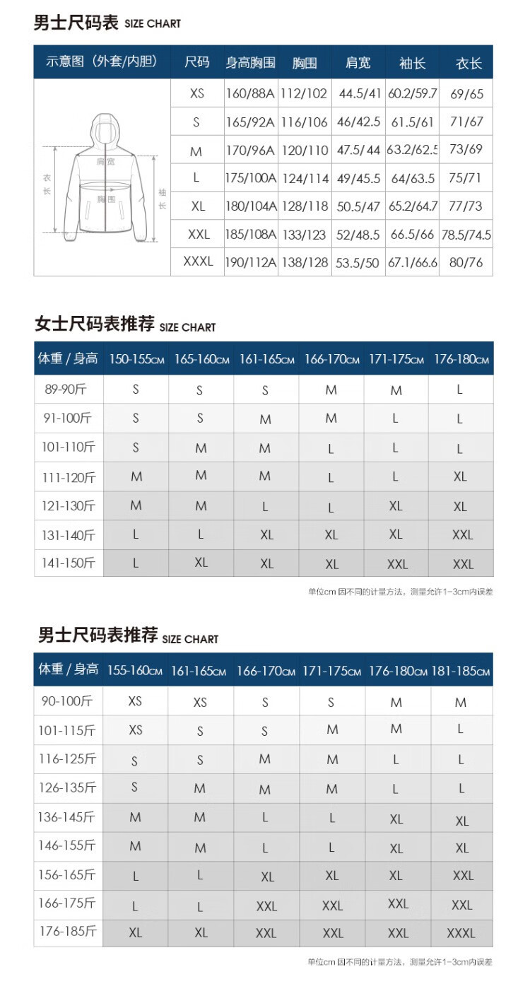China (cm) 165 / 88-90 170 / 96-98 175 / 108-110 180 / 118-122 185 / 126-130