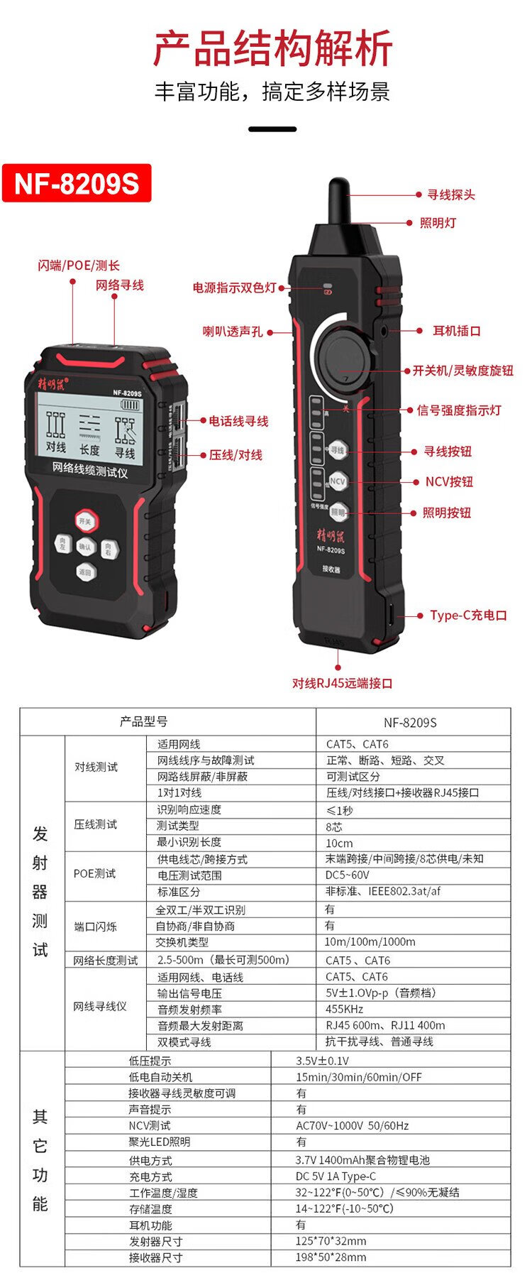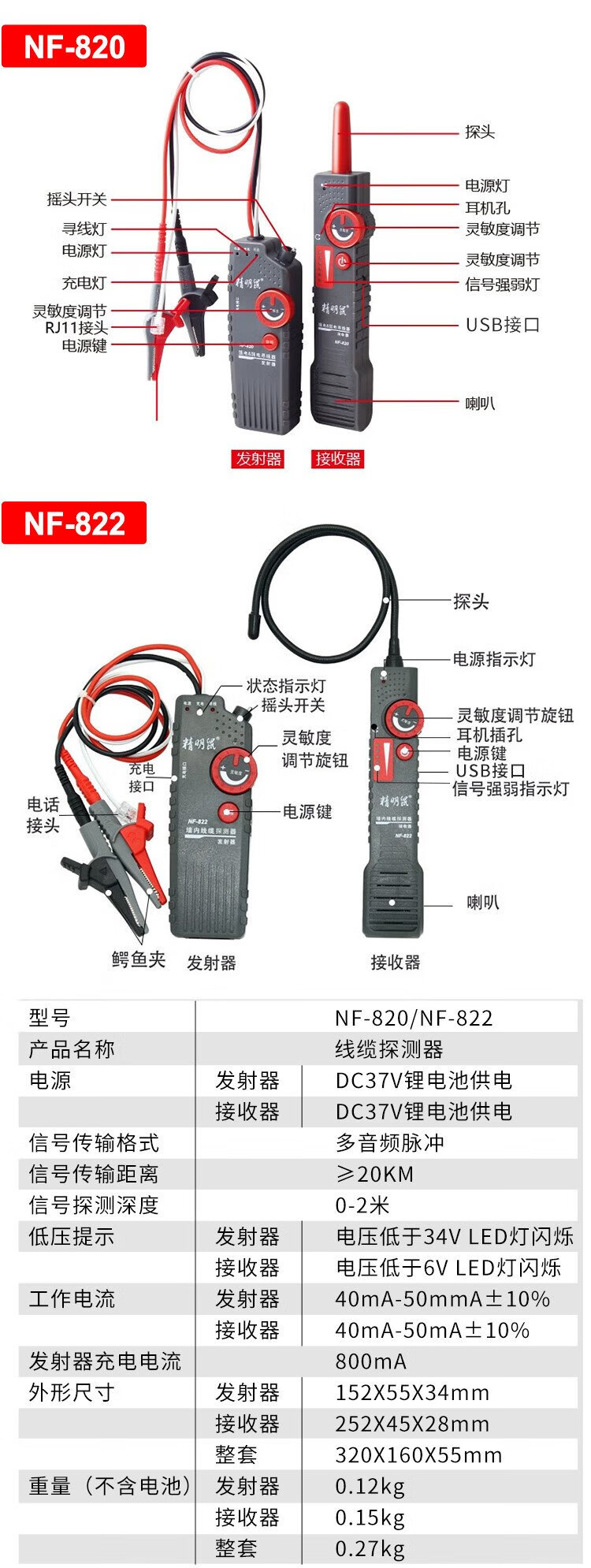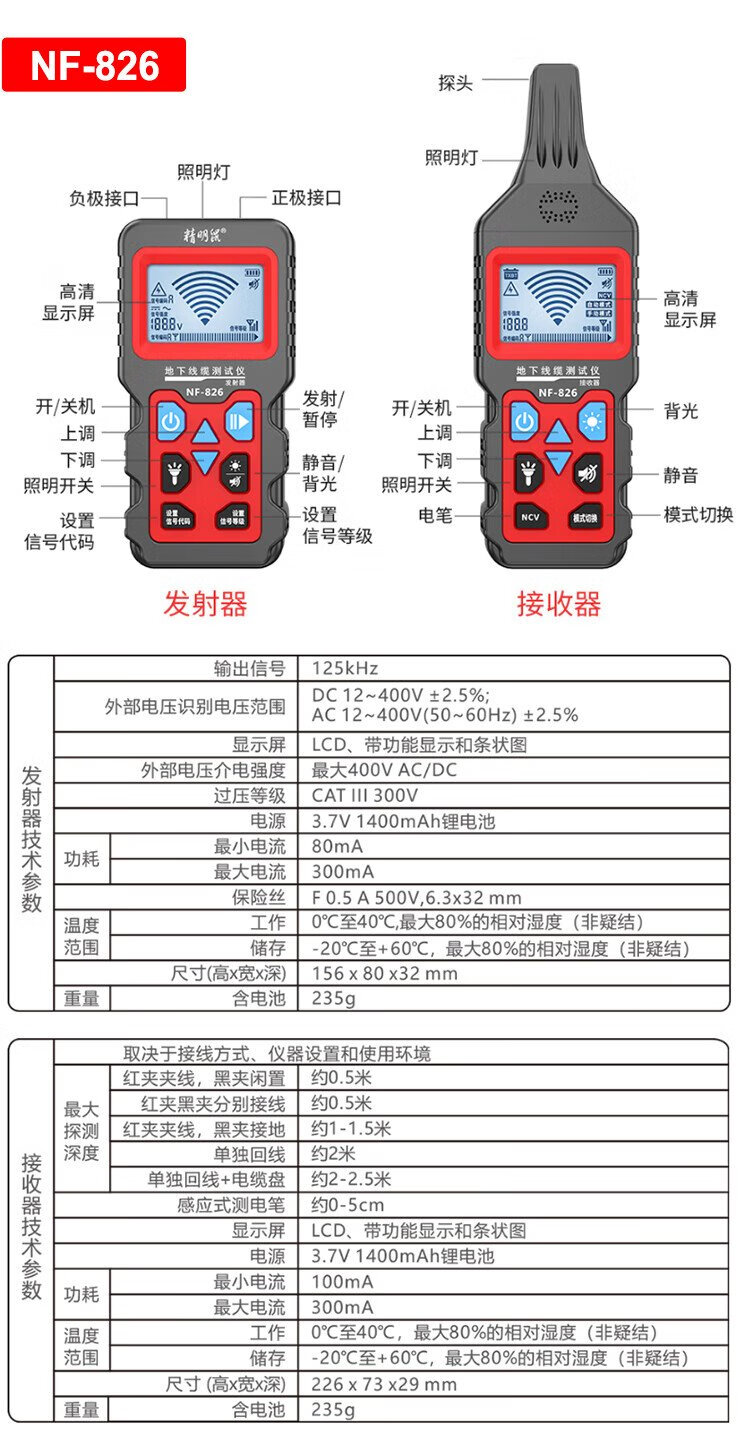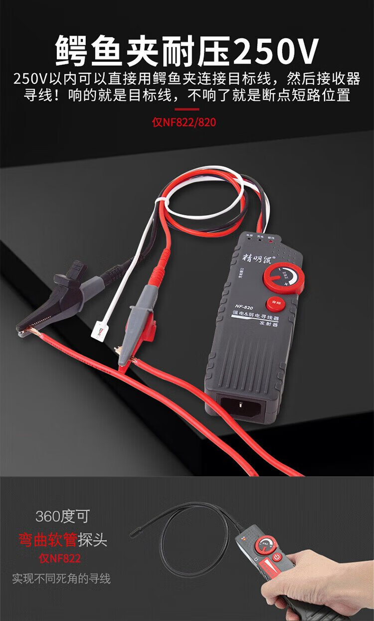 精明鼠寻线仪多功能网线检测仪强电电工查线器220v电线地埋线测试故障 NF-826 明暗线通用[地下2.5米]