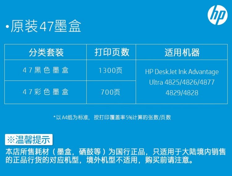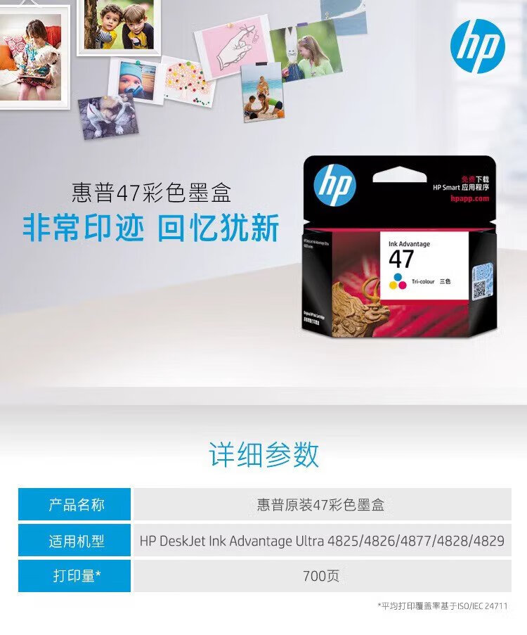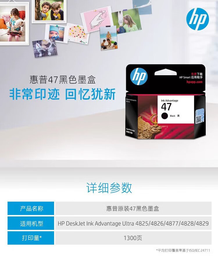 HP惠普原装 47墨盒适用4825 4826 4828 4829 4877 4928 4977 打印机 原装47号黑彩套装【黑彩各1个】