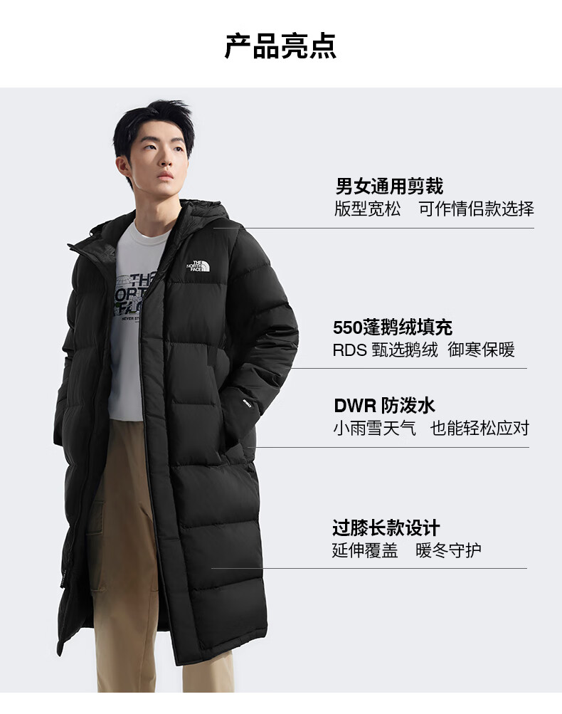 The North Face Down Jacket Couple's Classic Style 550 Puff Goose Down Filled Warm and Splash-proof Autumn and Winter New Style|81P7 4H0/Black L