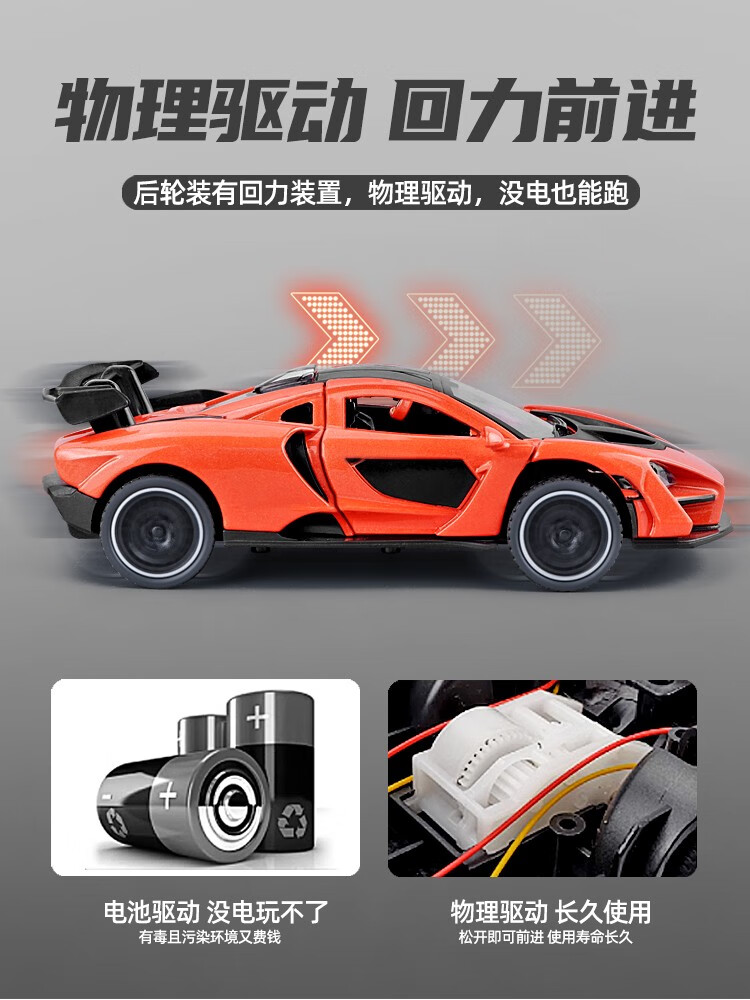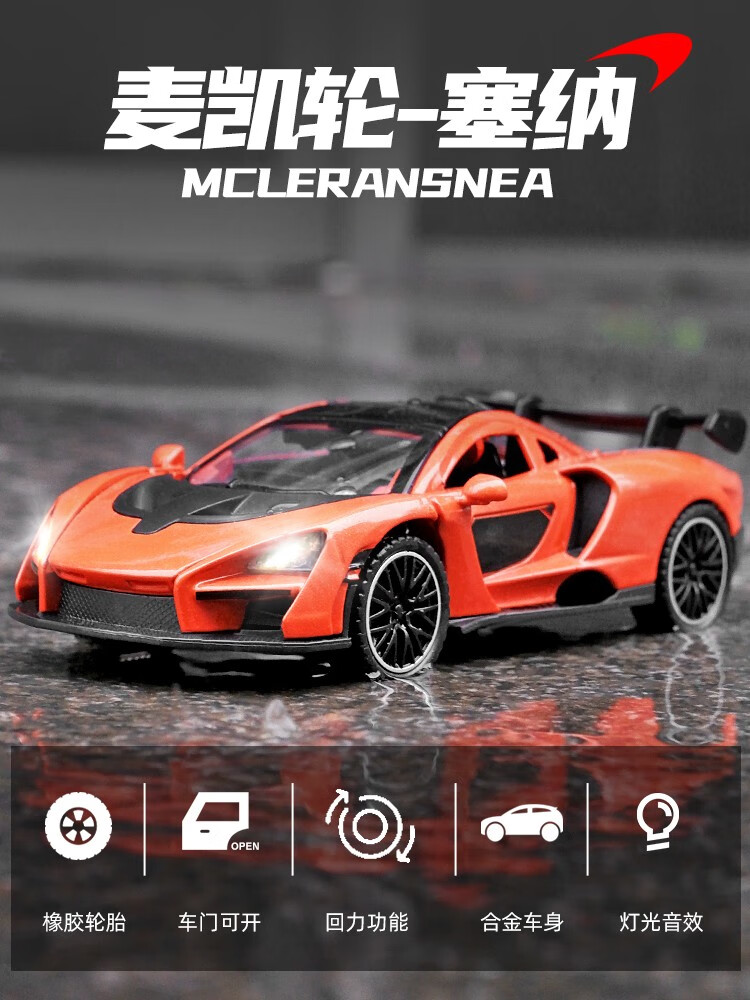 Kawei McLaren Senna modelo de coche para niño, aleación de simulación, coche deportivo de lujo, coche de juguete para niños, color morado