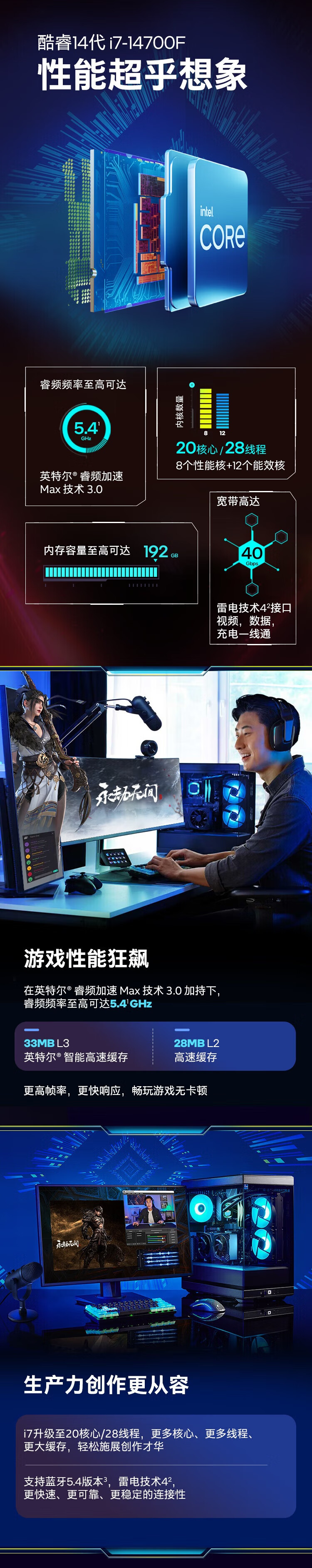 Процессор Intel (Intel) Core 14-го поколения Процессор для настольных ПК CPU i7-14700F в штучной упаковке Пятилетняя гарантия