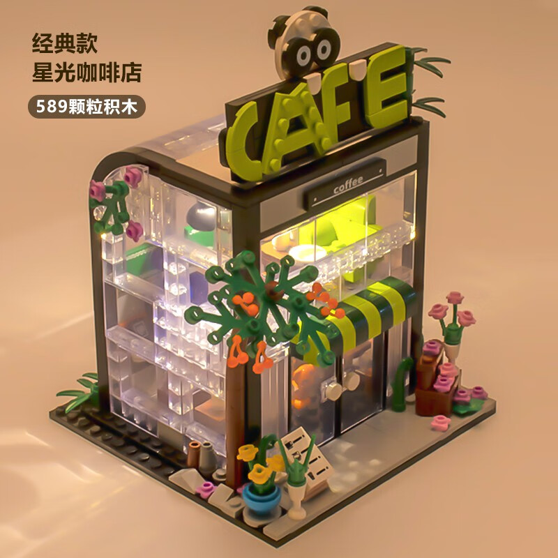 Square Orange Building Blocks Coffee House Romantic Flower Shop Lighting Street View Building Blocks Bookstore Girls Series Assembled Toy House Model Children Teddy Bear Coffee Shop-1381 Particles