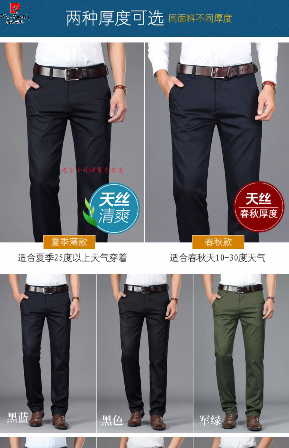 Pierre Cardin Tencel mince été pantalons décontractés pour hommes hommes droits lâches pantalons de travail d'affaires d'âge moyen pantalons de costume pantalons pour hommes 6223 noir printemps et automne 29 deux pieds deux