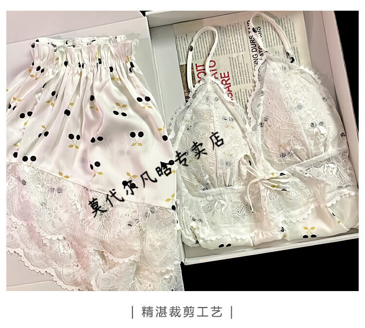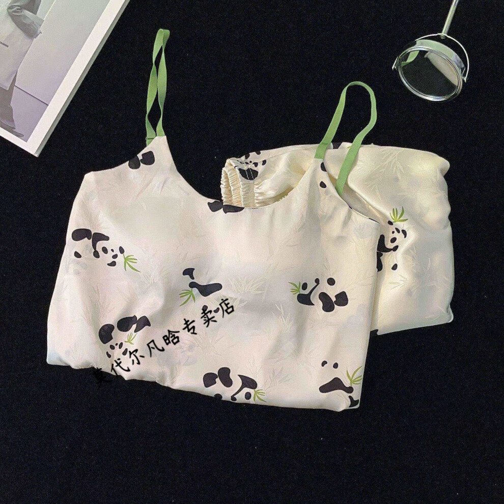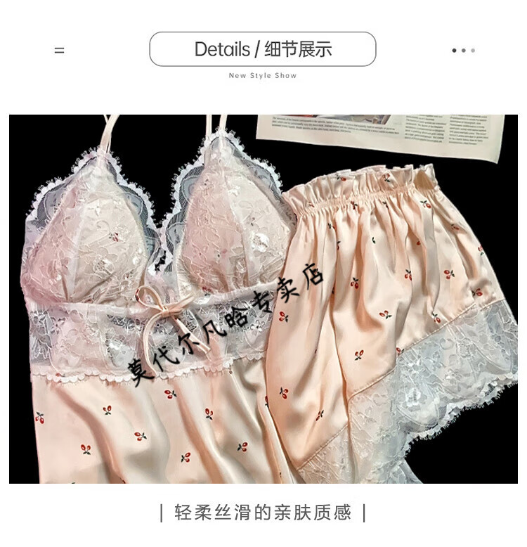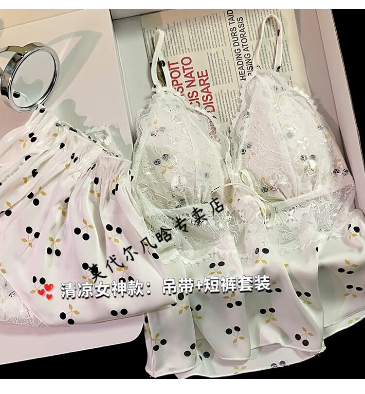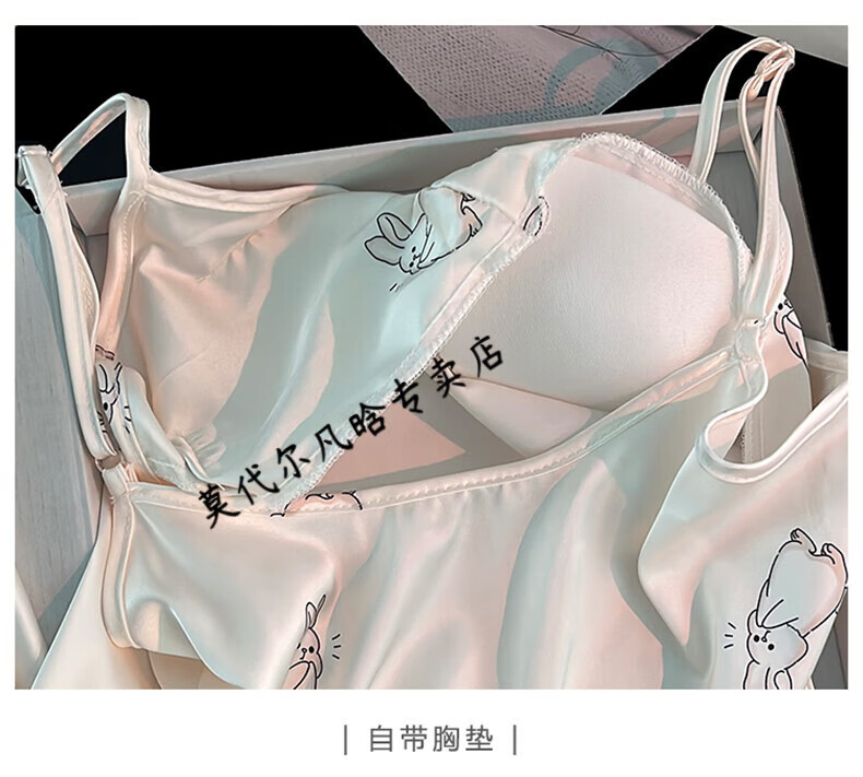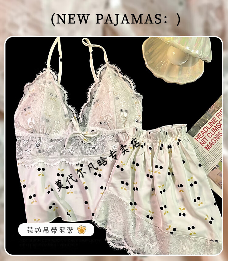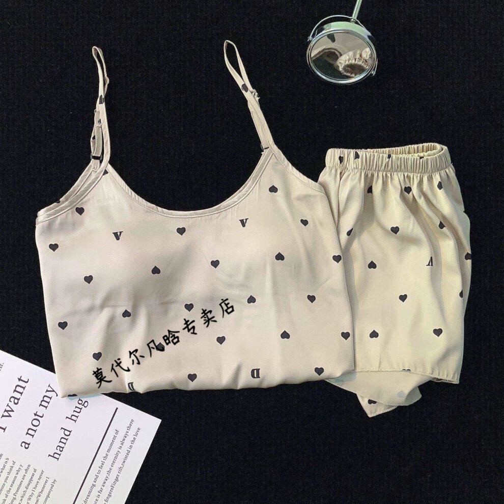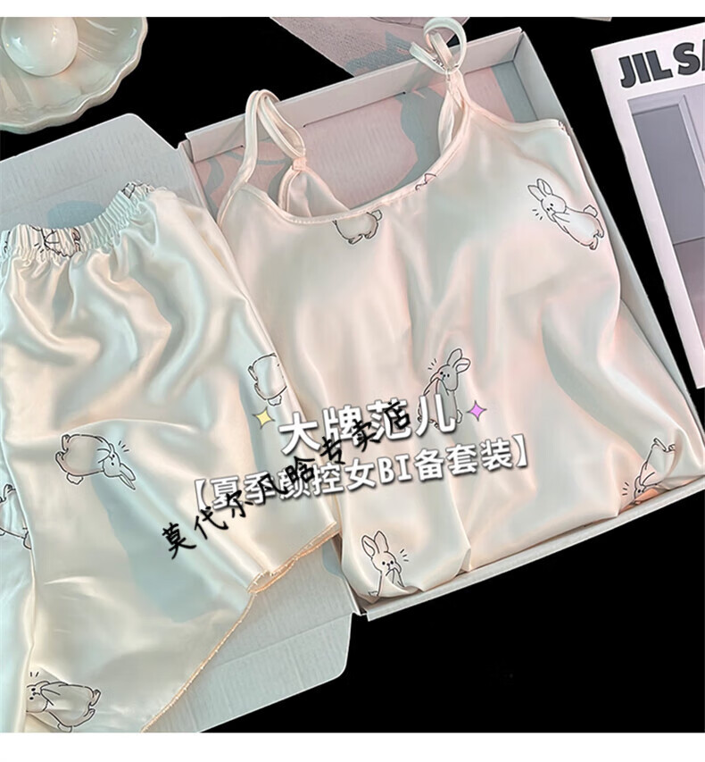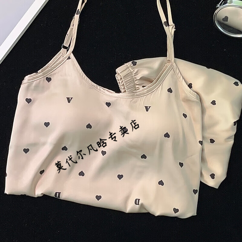 莫代尔吊带胸垫睡衣奶乎乎冰丝夏季女款高级感两件套装纯欲风外出家居服 B682-9 带胸垫 L 100-120斤左右