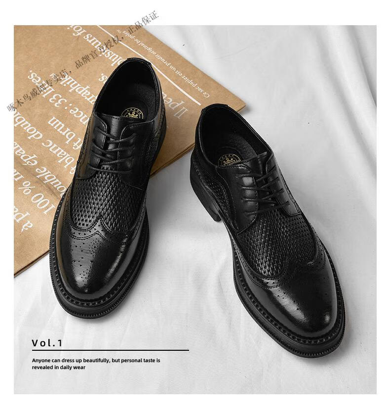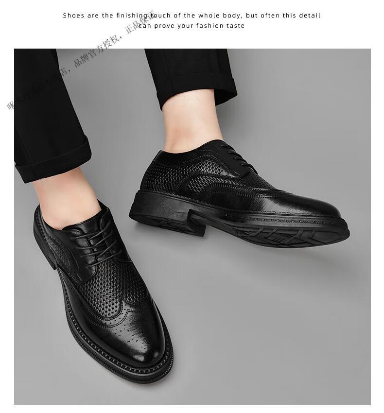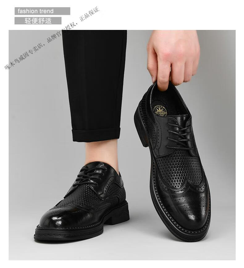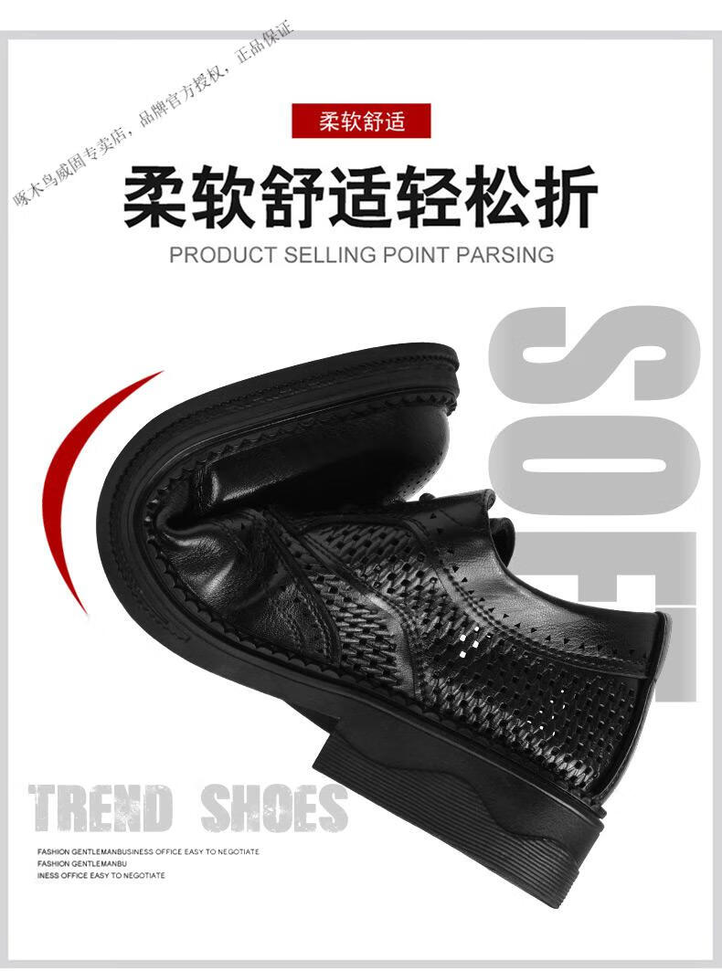 啄木鸟皮鞋男尖头新款夏季透气男士休闲商务英伦鞋潮流软底镂空凉鞋 黑色1381凉鞋款 38 标准皮鞋码
