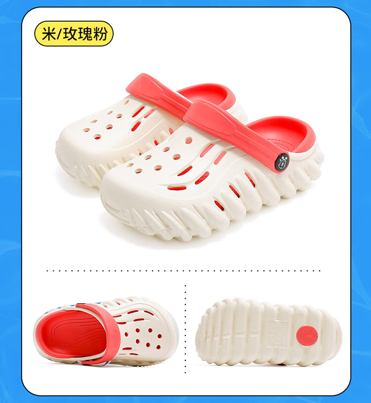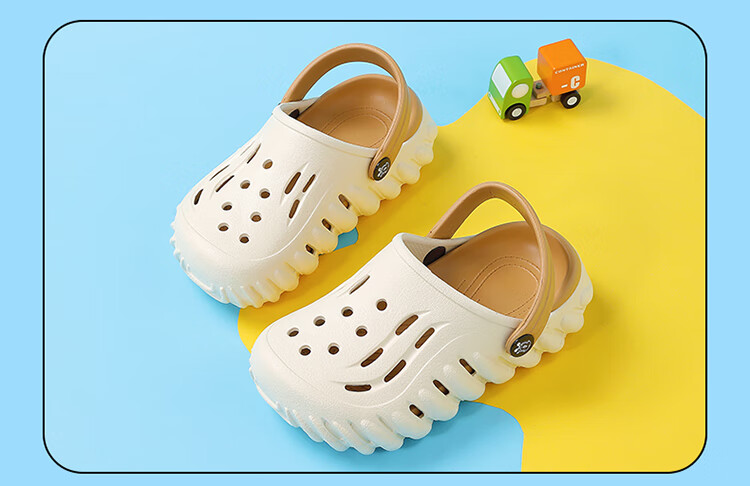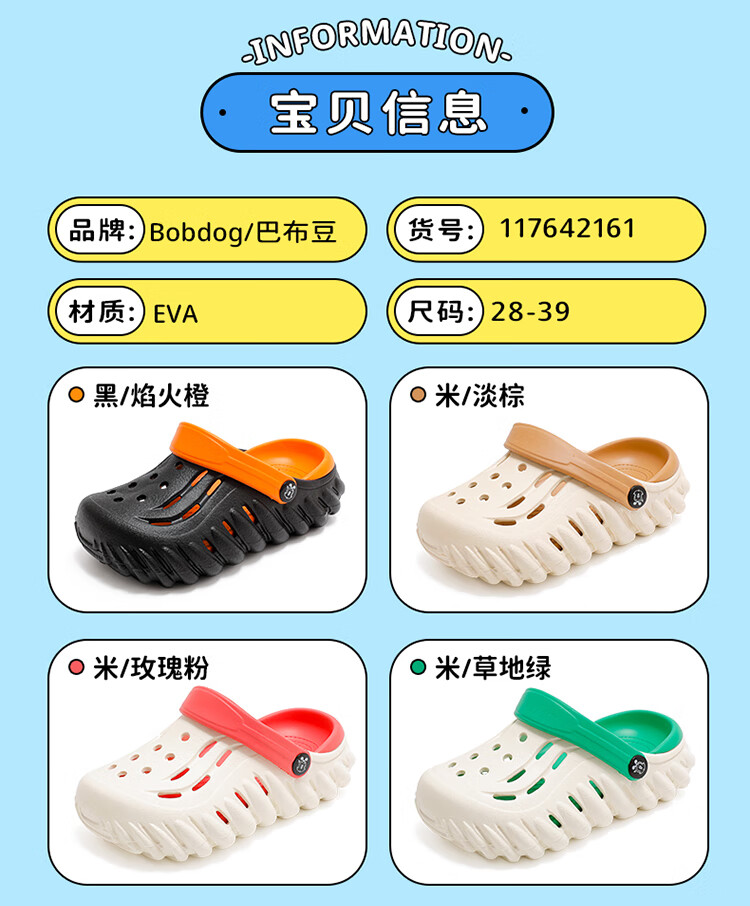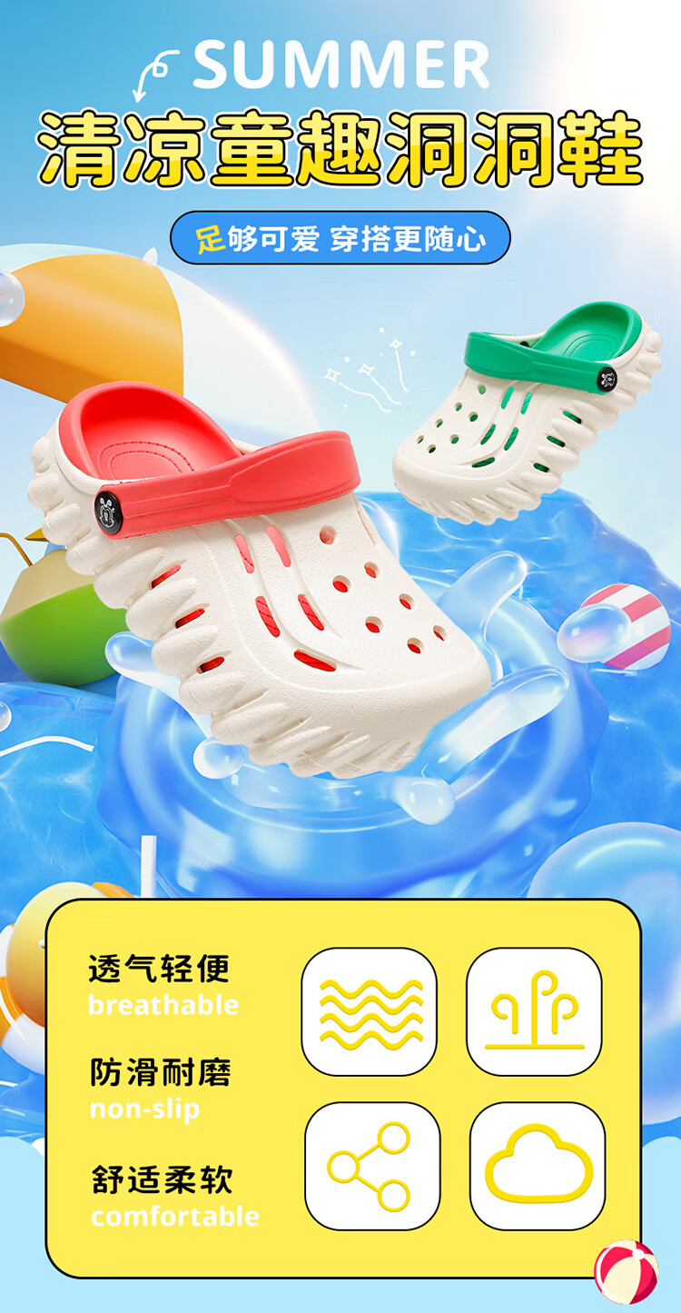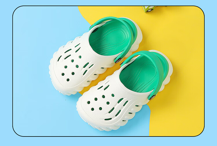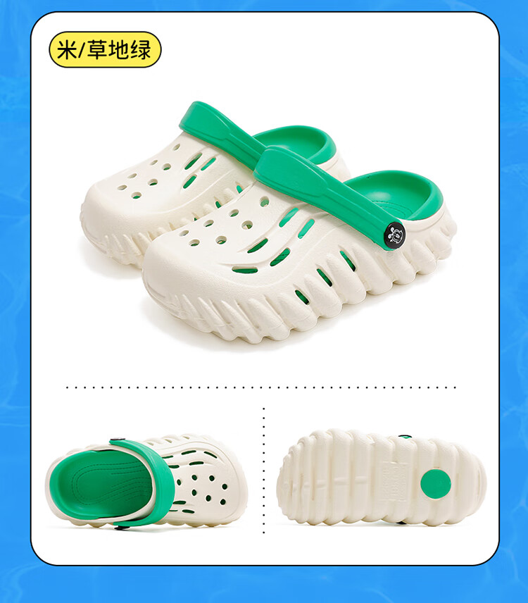 巴布豆童鞋男童夏季凉鞋新款儿童拖鞋中大童室外洞洞鞋女孩鞋子 米/草地绿 28 -29适合脚长18.5cm