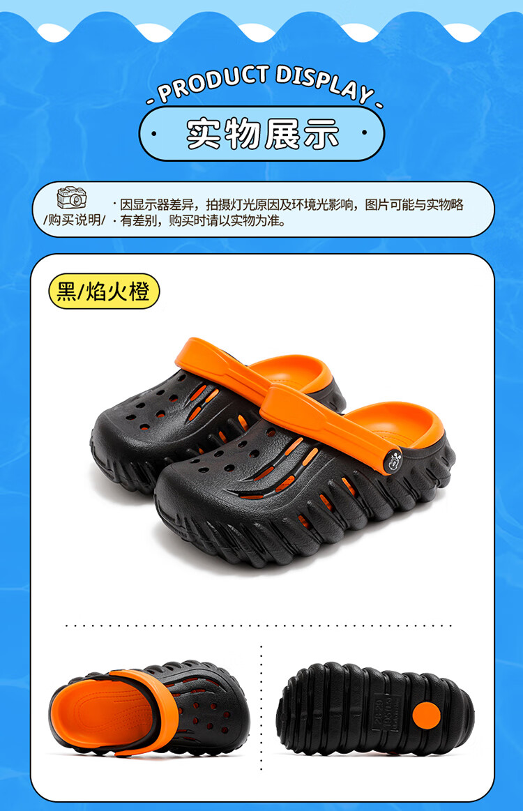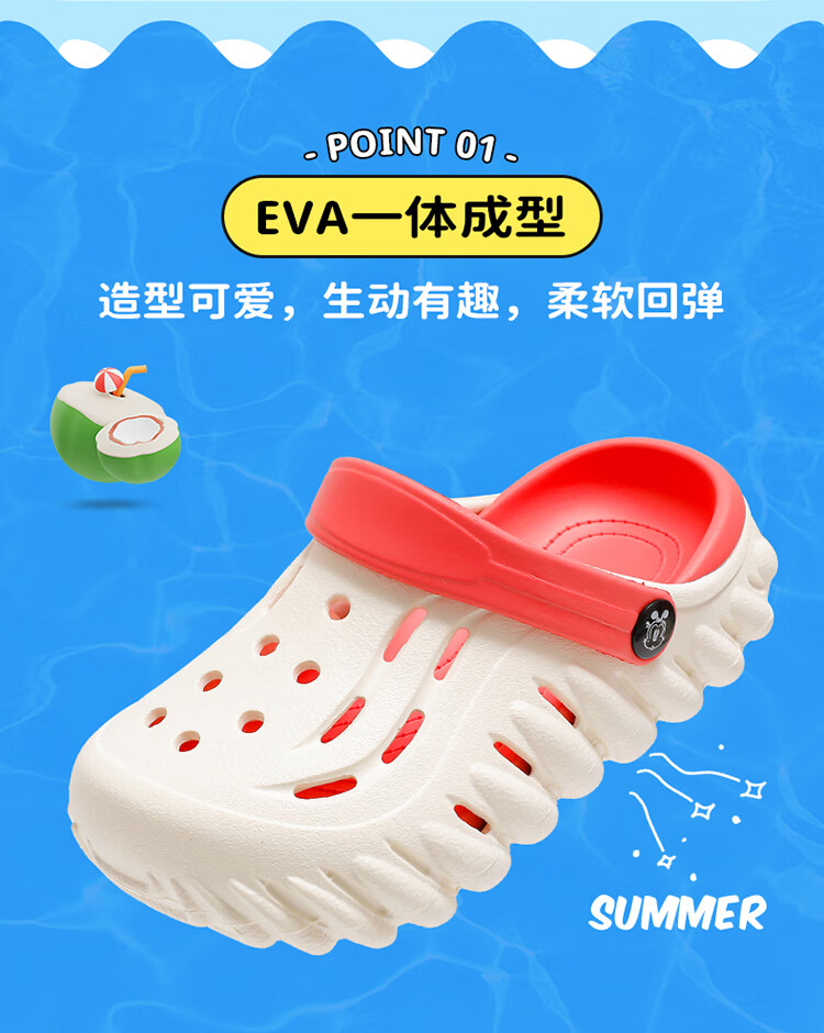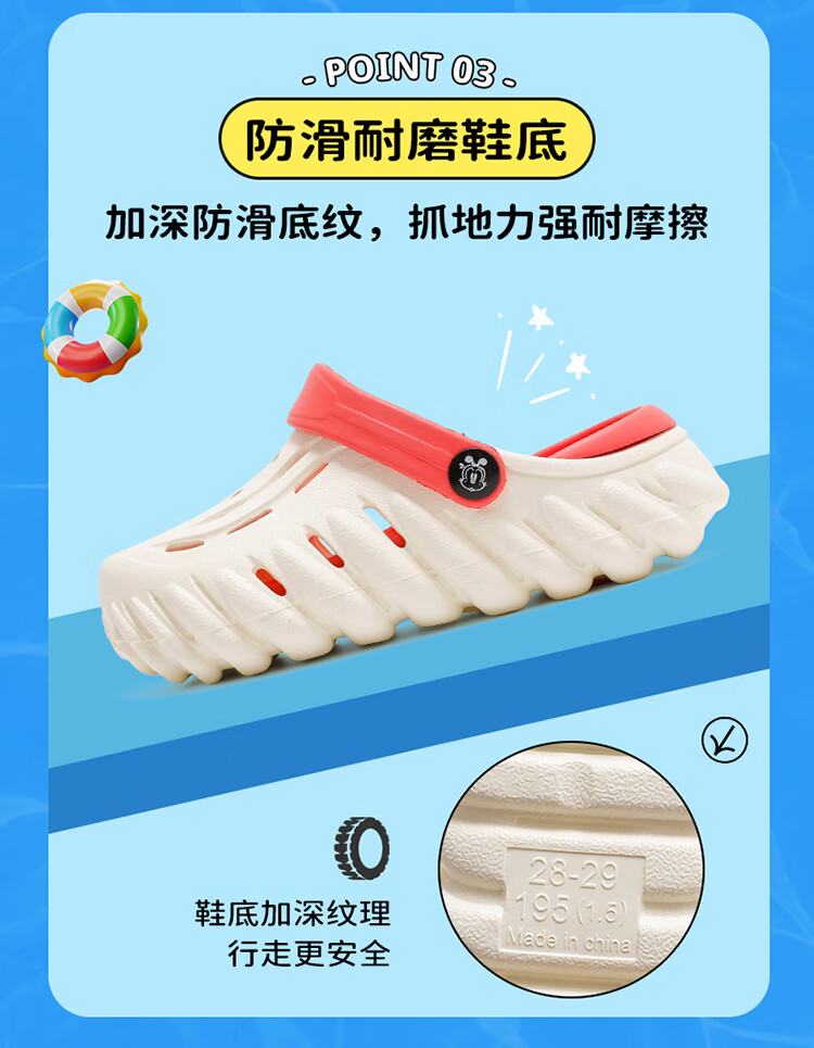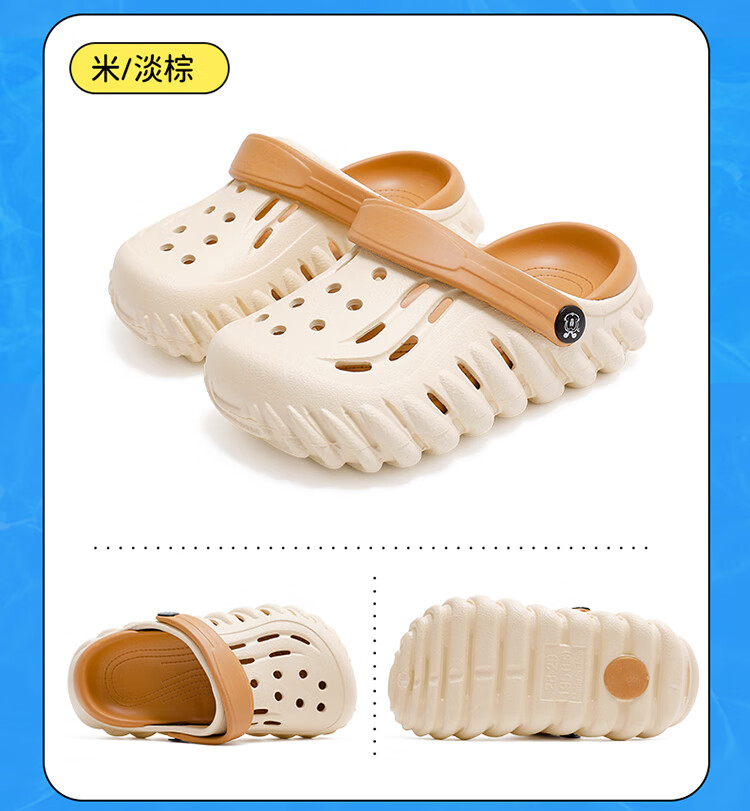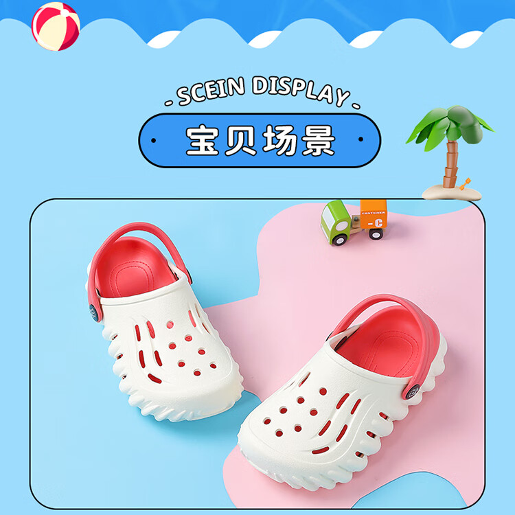 巴布豆童鞋男童夏季凉鞋新款儿童拖鞋中大童室外洞洞鞋女孩鞋子 米/草地绿 28 -29适合脚长18.5cm