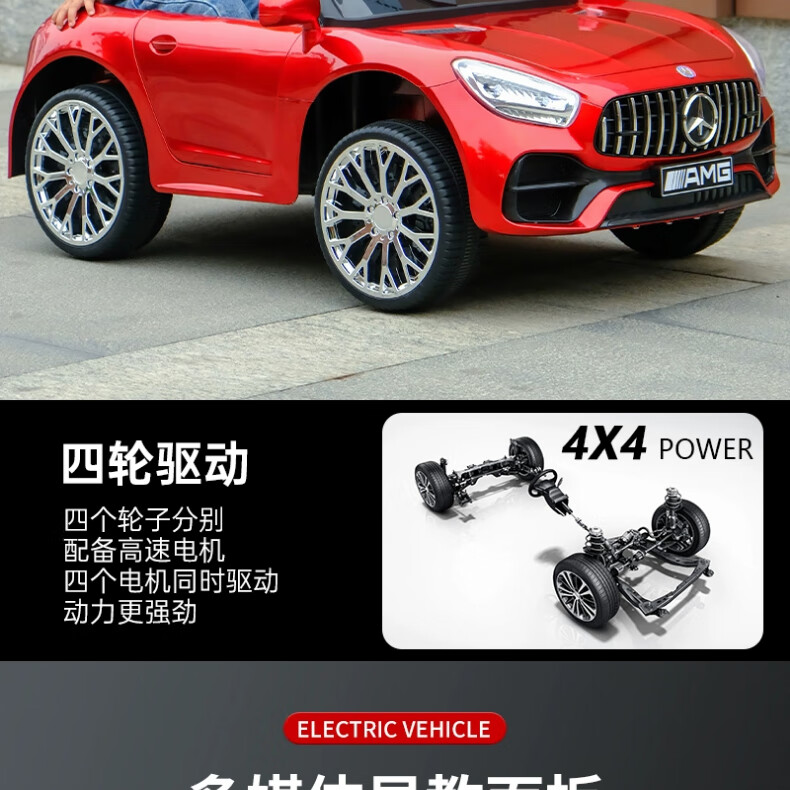 诺天使【双座】儿童电动车可坐人玩具四轮汽车遥控摇摆男女孩宝宝童车 烤漆红(四驱+皮座+遥控+12v大电 送人周岁生日礼物玩具