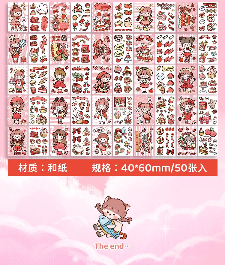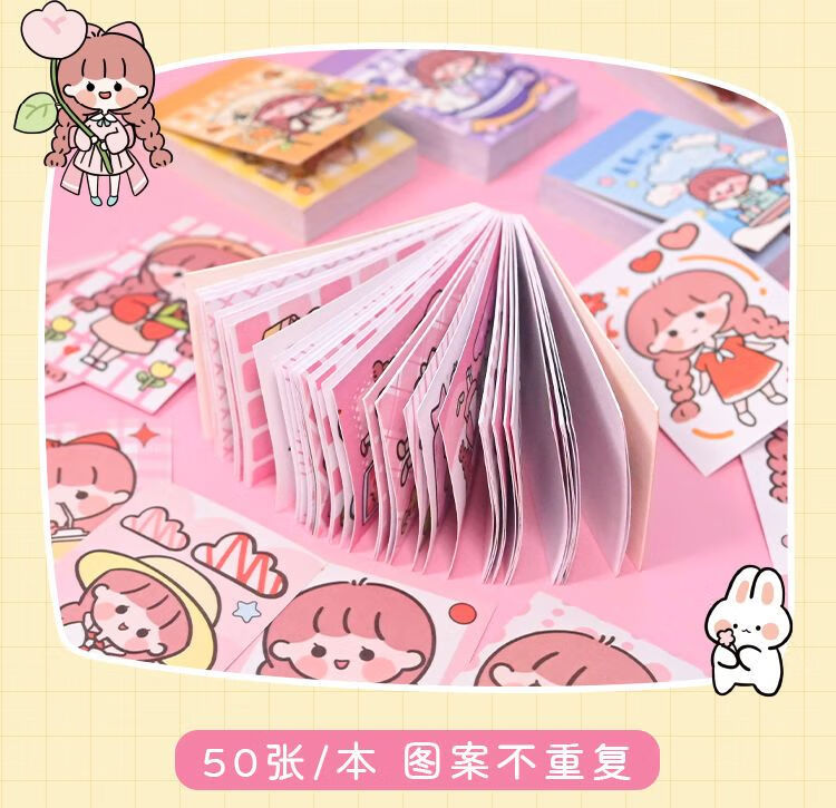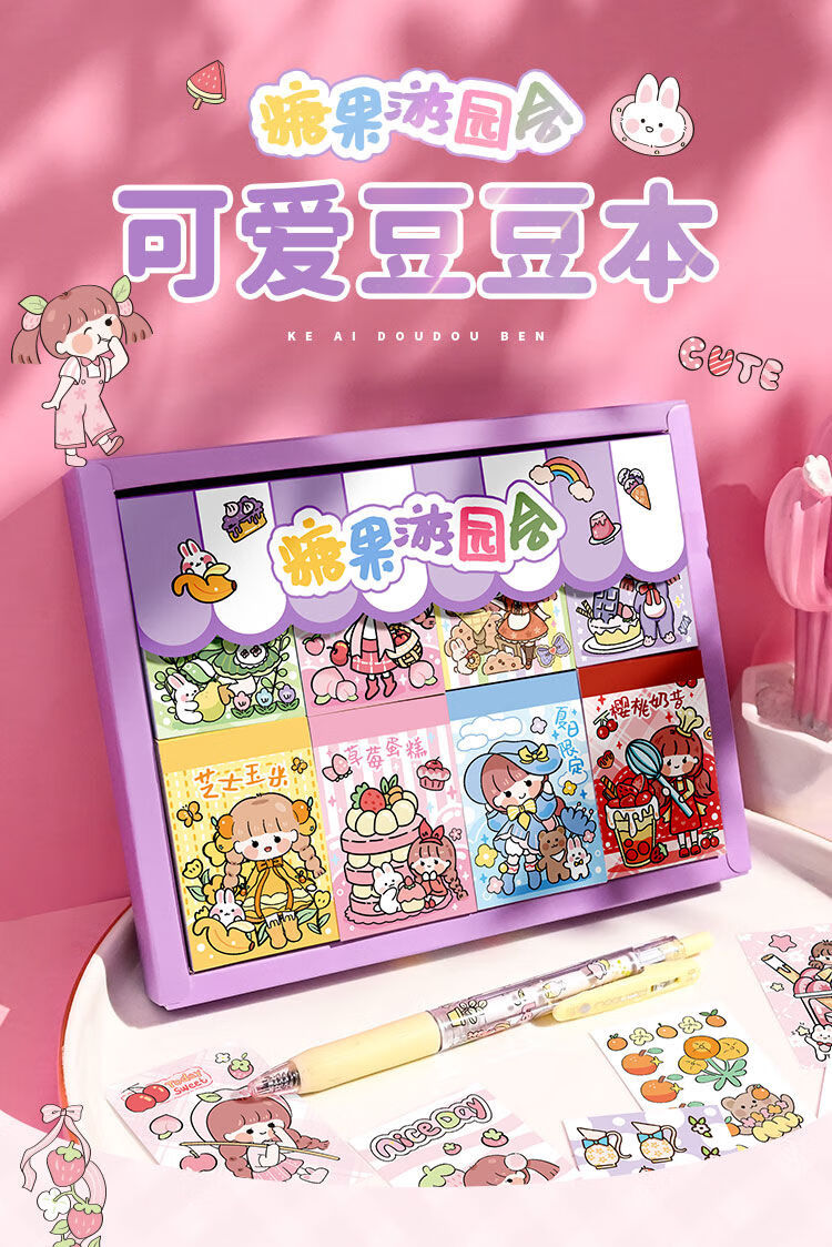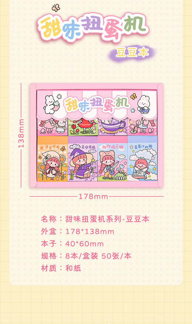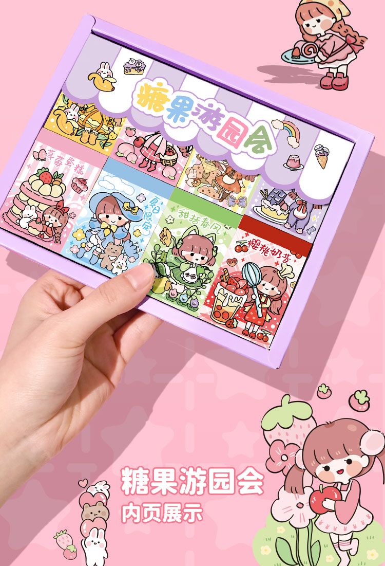 卡通迷你豆豆本可爱自粘手帐公主贴纸本儿童女孩ins高颜值diy手工 甜味扭蛋机-【全套8本400张】