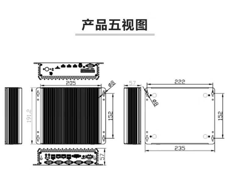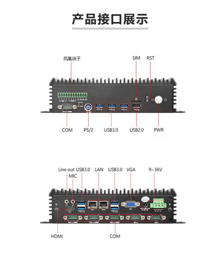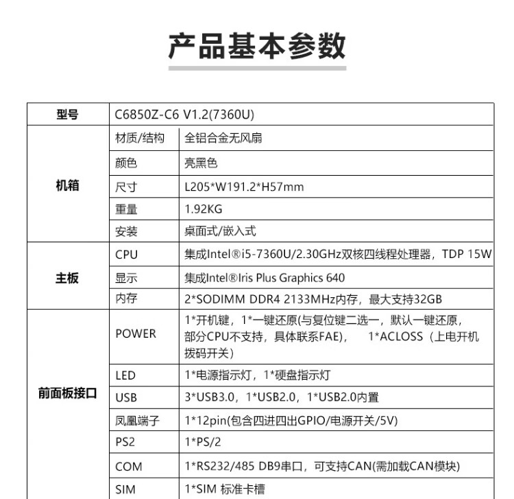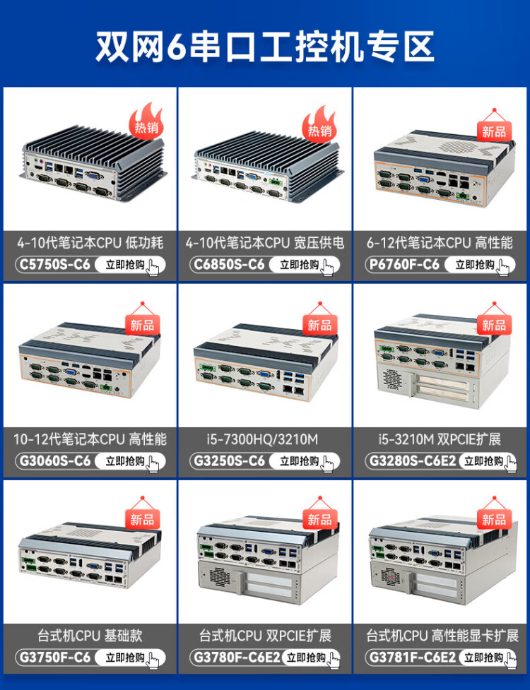 YENTEK lüfterloser Mini-Industriecomputer, Dual-Netzwerk, 6 serielle Anschlüsse, Bildverarbeitung, Mikro-Industriecomputer, 10/11 Generation i3i5i7 Multi-COM, eingebetteter Forschungsbereich, Industriesteuerungshost C6850Z-C6 i5-7360U/2,3 G Dual Core 4 G Speicher + 64 G Solid State + 12 V Stromversorgung