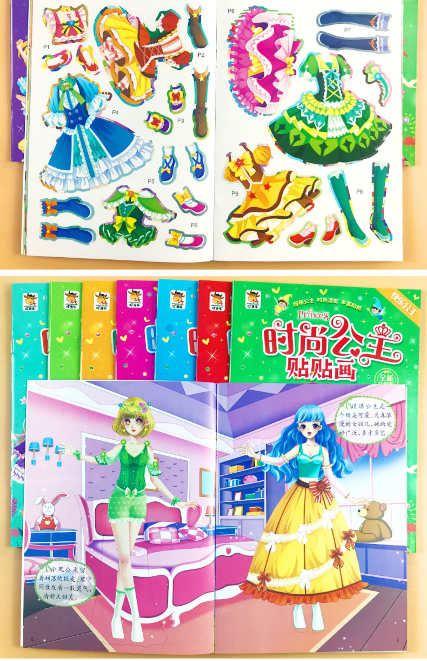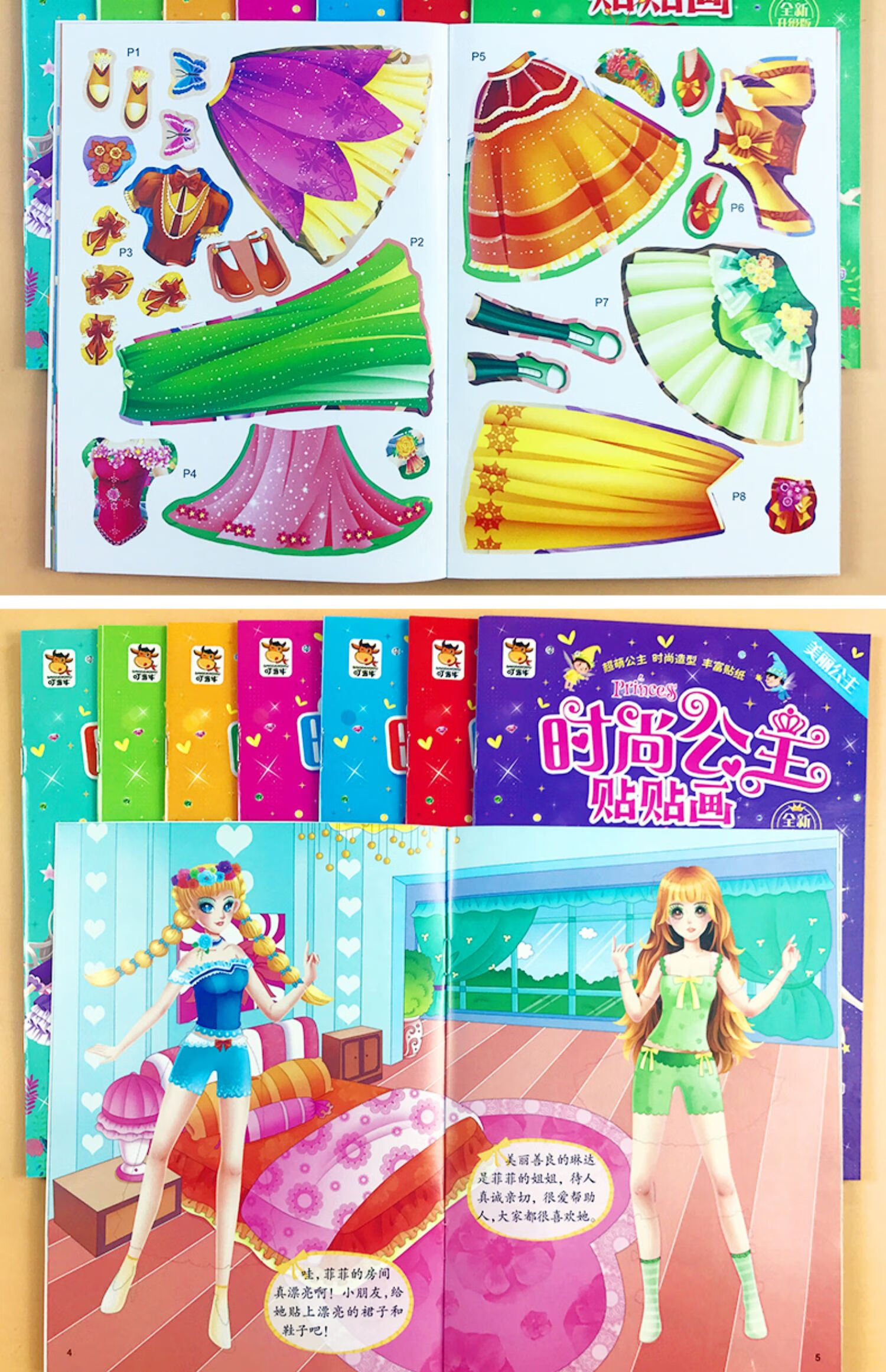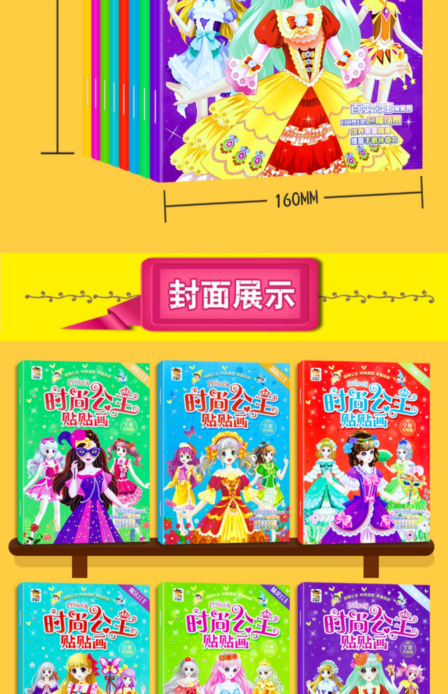 公主贴贴画儿童贴纸书女孩专注力训练益智玩具2到3-4-5-6岁粘贴画 公主贴贴画全12册 无规格