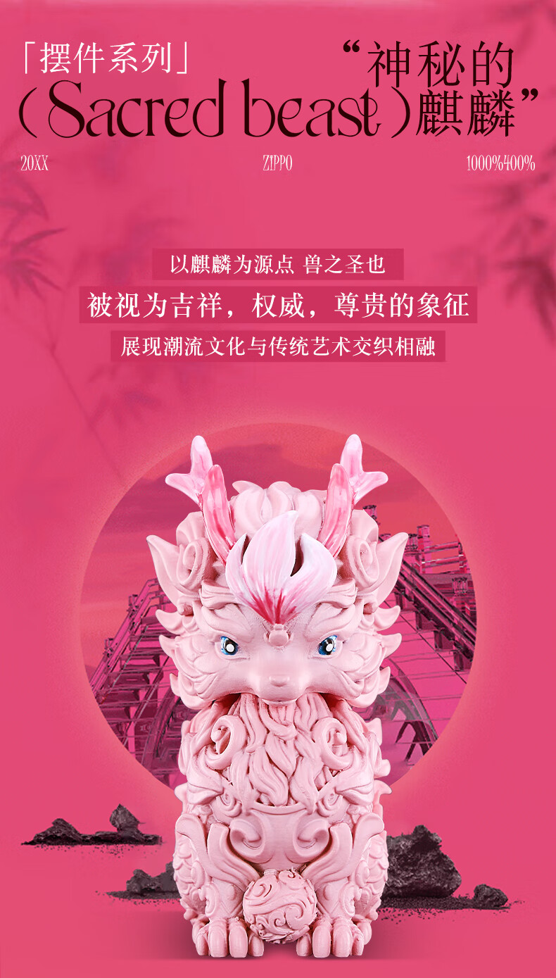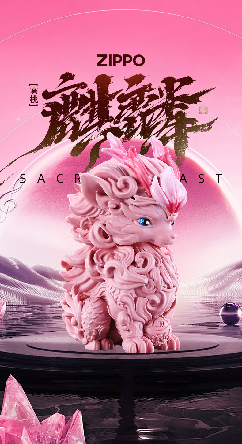 ZIPPO Kerosene Lighter Zippo Genuine Windproof Zhibao Divine Beast Chinese Valentine's Day and Gift for Men Pink Horn Mist Peach Kirin Single Machine Oil-free DY9902
