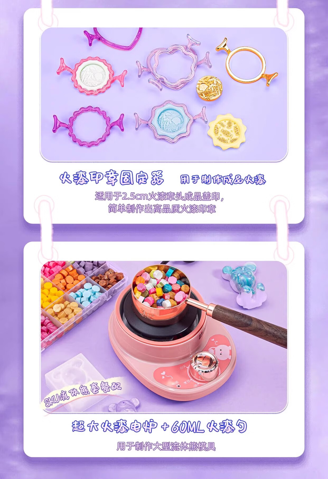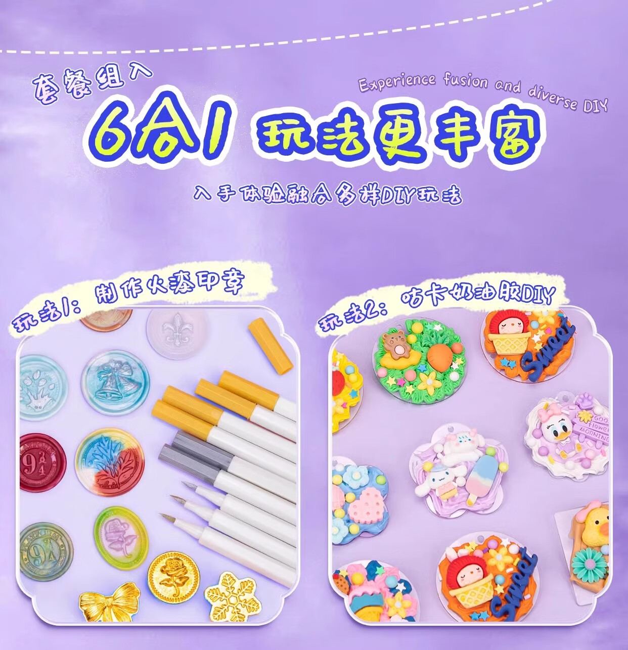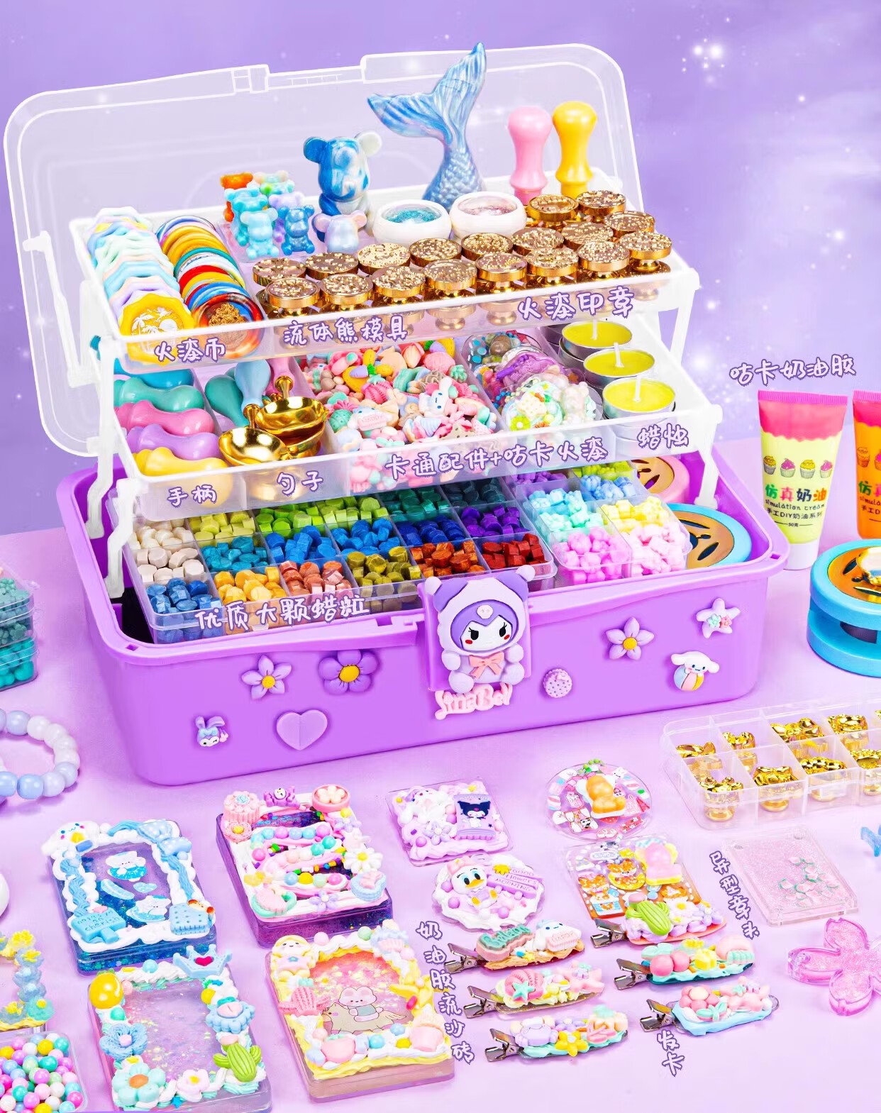 火漆印章套装豪华版咕卡全套蜡烛礼盒全套火气制作的夜光蜡粒火星印章火机蜡印火器女孩儿童手工DIY礼物 677件库洛米火漆模具套装-三丽欧6合1模具