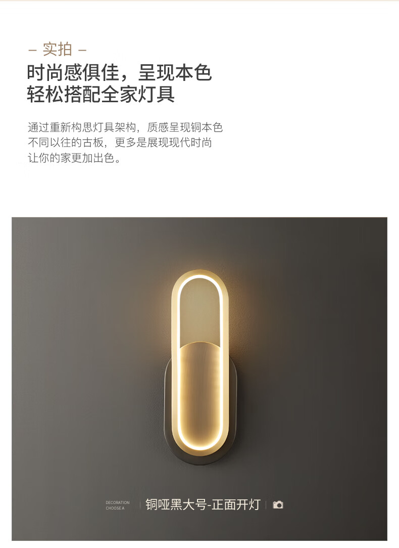 Recordando el pasado Lámpara de pared de cobre completo Dormitorio Lámpara de noche Luz minimalista simple Lámpara de lujo Sala de estar Lámpara de cobre LED creativa Lámpara Zhongshan 1049-Cobre Color verdadero Todo cobre