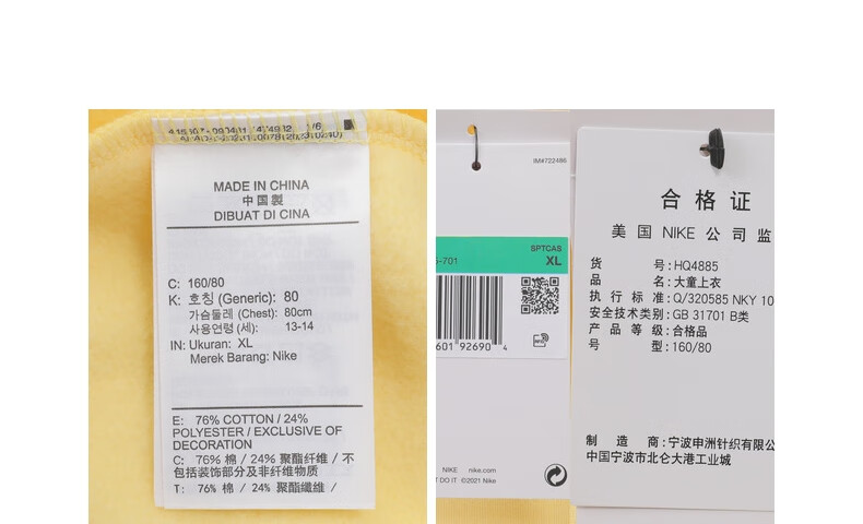 耐克NIKE【滔搏运动】大童K NSW CLUB FLC CREW LS GCEL卫衣 HQ4885-701 XS