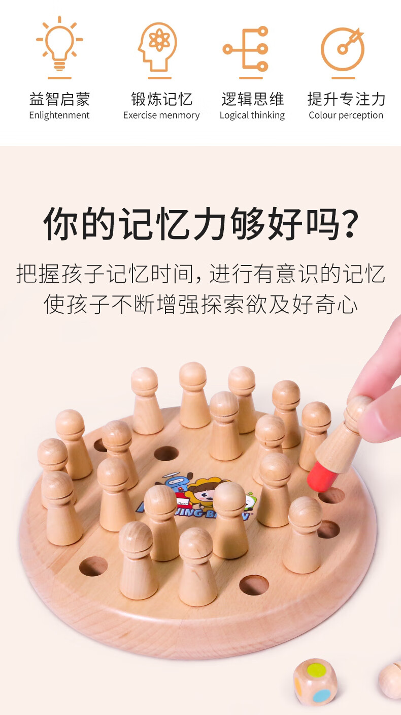 Wooden Wanshijia memory chessboard children's concentration training logical thinking early education puzzle parent-child interactive table game intellectual toy memory chessboard toy
