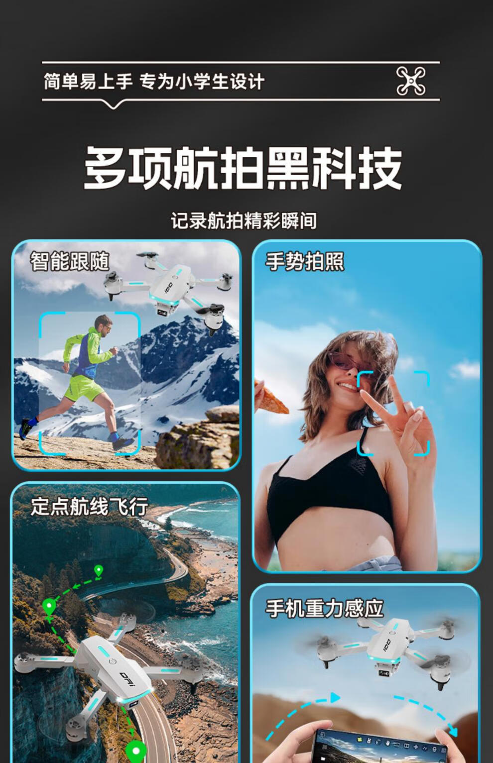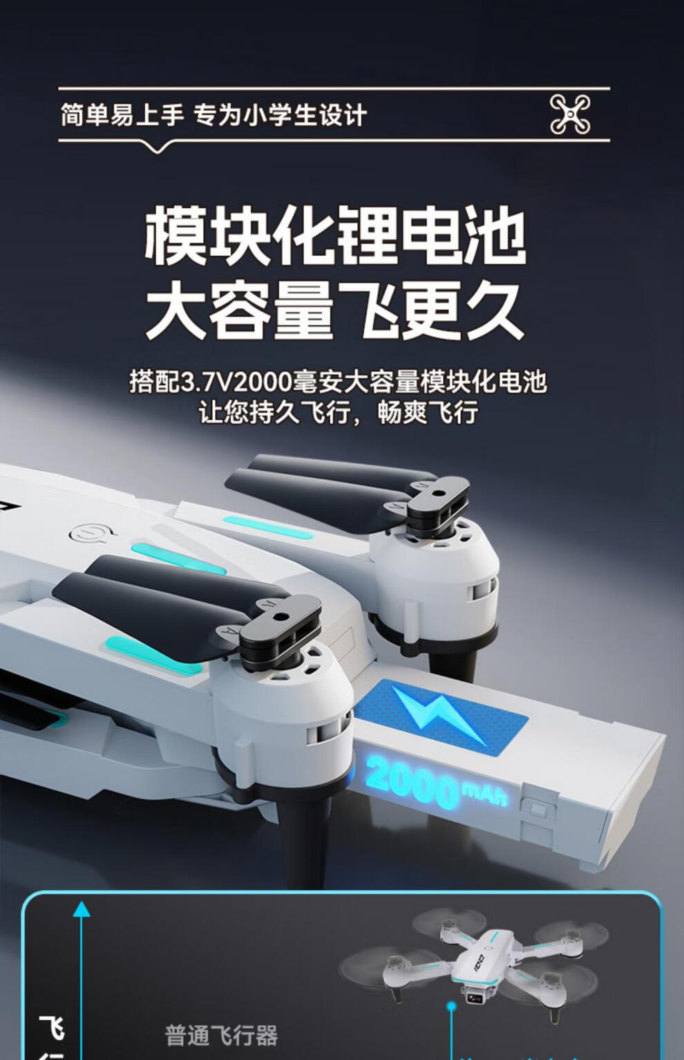 Jingtao UAV Kinder-Fernbedienungsflugzeug, Luftaufnahmen, hochauflösende Grundschule, kleines Modellflugzeug, Hubschrauber, Jungenspielzeug, 1 Handtasche + Schutzständer, Ein-Klick-Start/Rückkehr, Deluxe-Paket, 4 Akkulaufzeit ca. 120 Minuten +