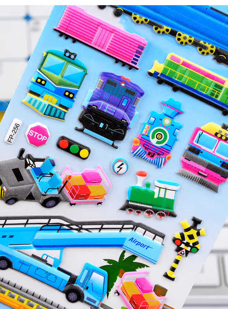 火车新干线3d立体泡泡贴纸儿童玩具男孩交通工具奖励粘贴画 DF33大号火车立体泡泡贴