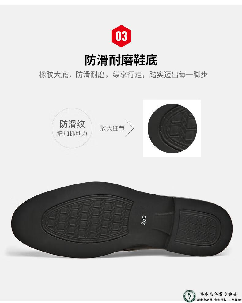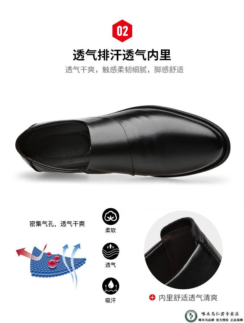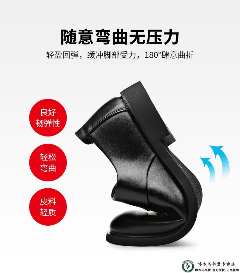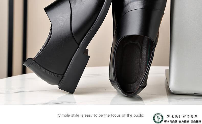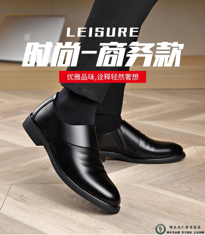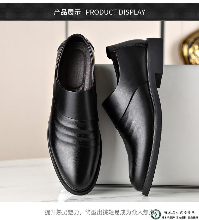啄木鸟男鞋秋款2026新款商务正装皮鞋秋冬季加绒内增高真皮软底休闲鞋子 ZQF6189-2黑色加绒款 38