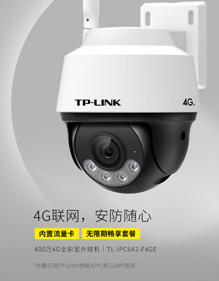 普联(TP-LINK)终身免流量4G监控摄像头家用 无限流量高清无线全彩夜视室内外防水监控手机远程360度全景旋转云台 800万室外单镜头【4G无限流量】 32GB【免费升级64GB卡】
