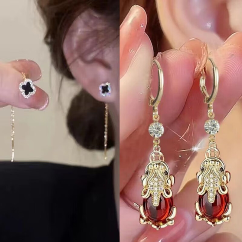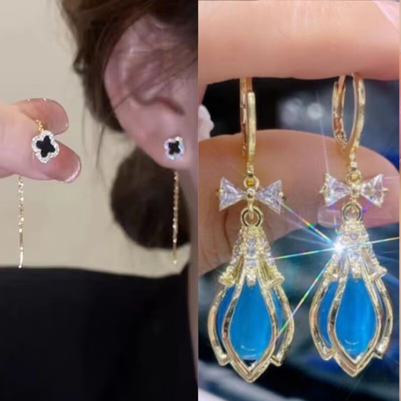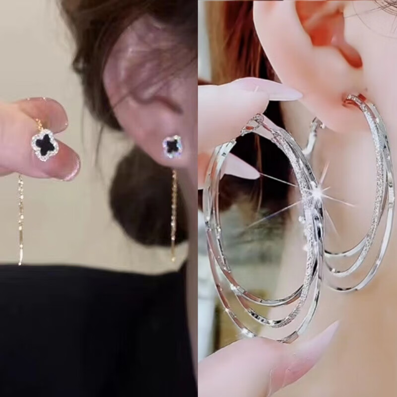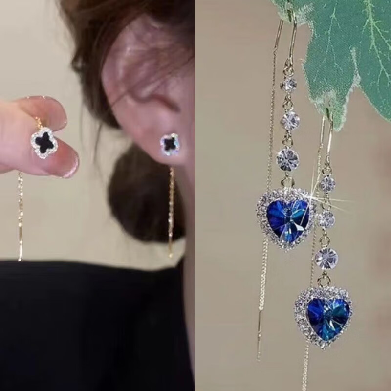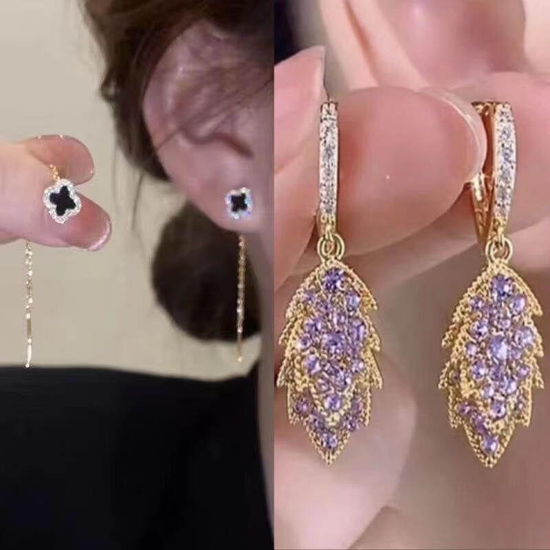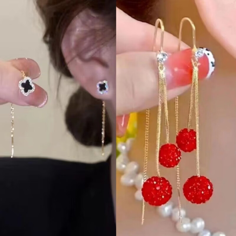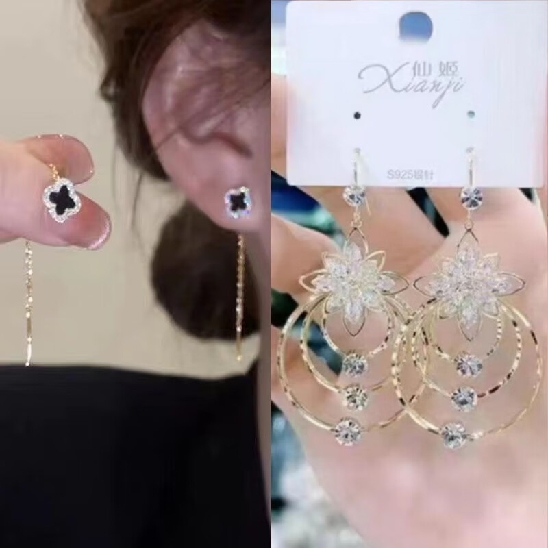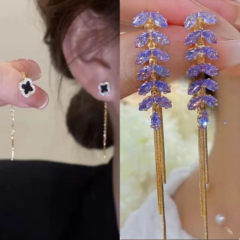 含春花四叶草流苏耳线女感气质耳饰2025年新款网红长款耳坠耳线 A921/A691黑四叶草+银色羽毛
