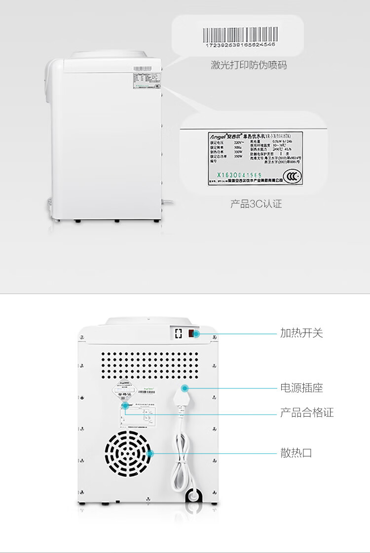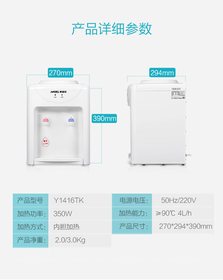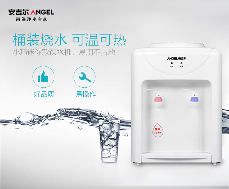 安吉尔饮水机家用小型台式桌面桶装水温热多用型客厅办公室1416TK 白色 温热