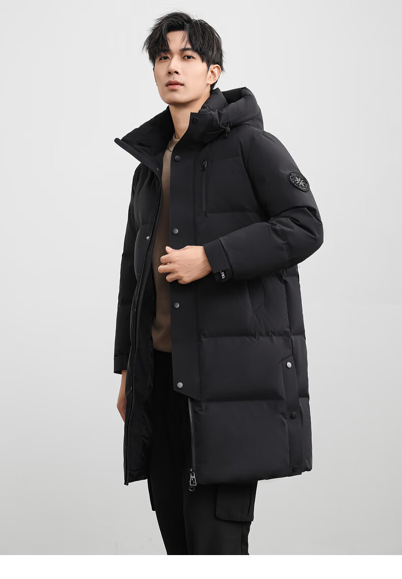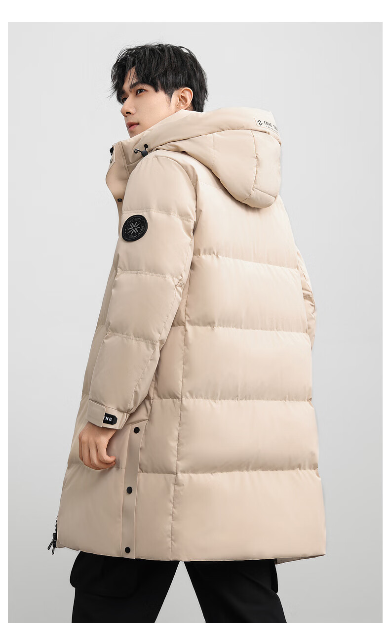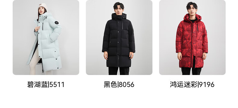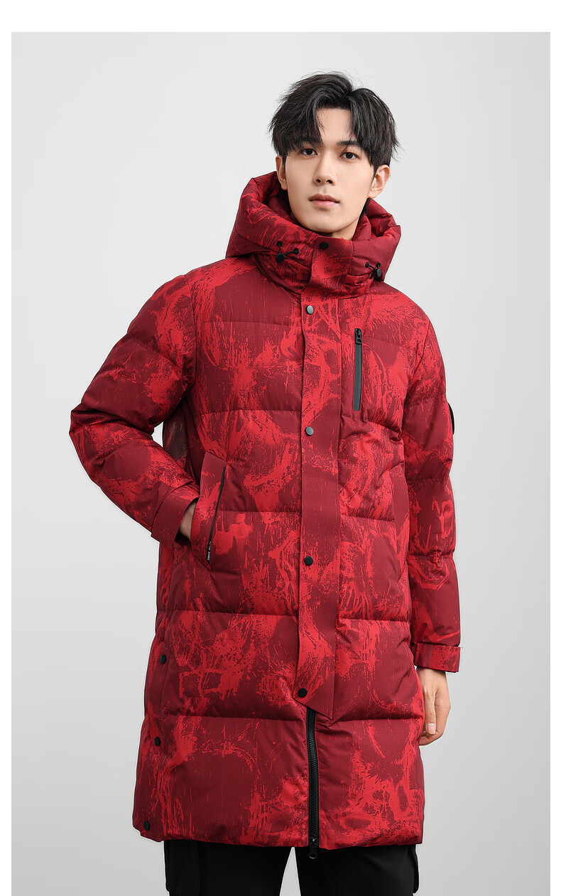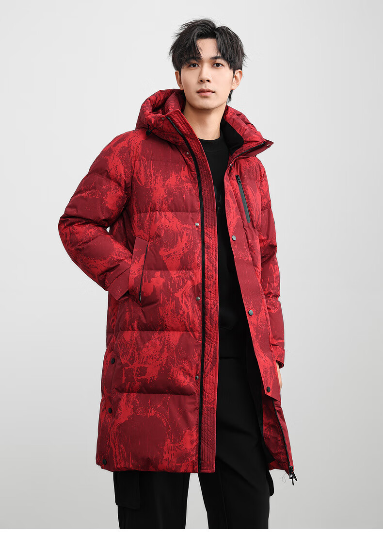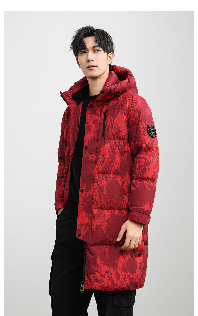 雪中飞新款中长款连帽羽绒服男女同款时尚简约保暖抗寒休闲舒适 鸿运迷彩|9196 2XL /180/100A