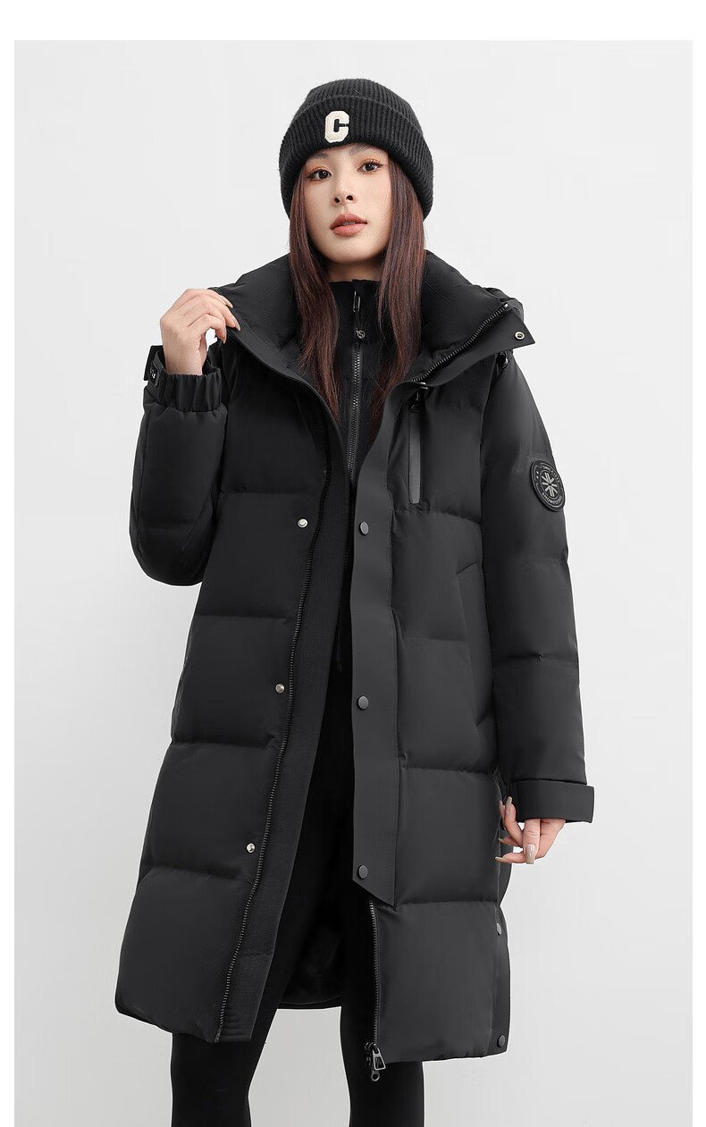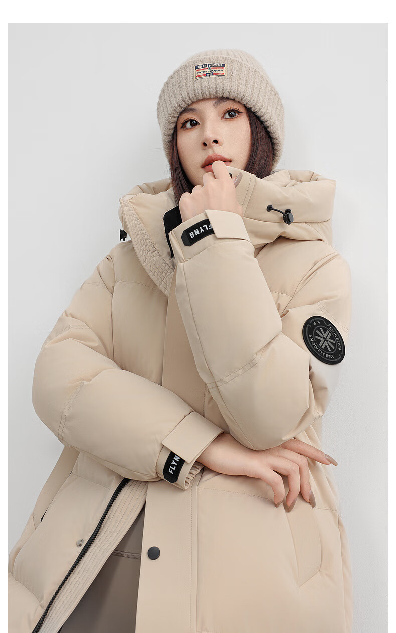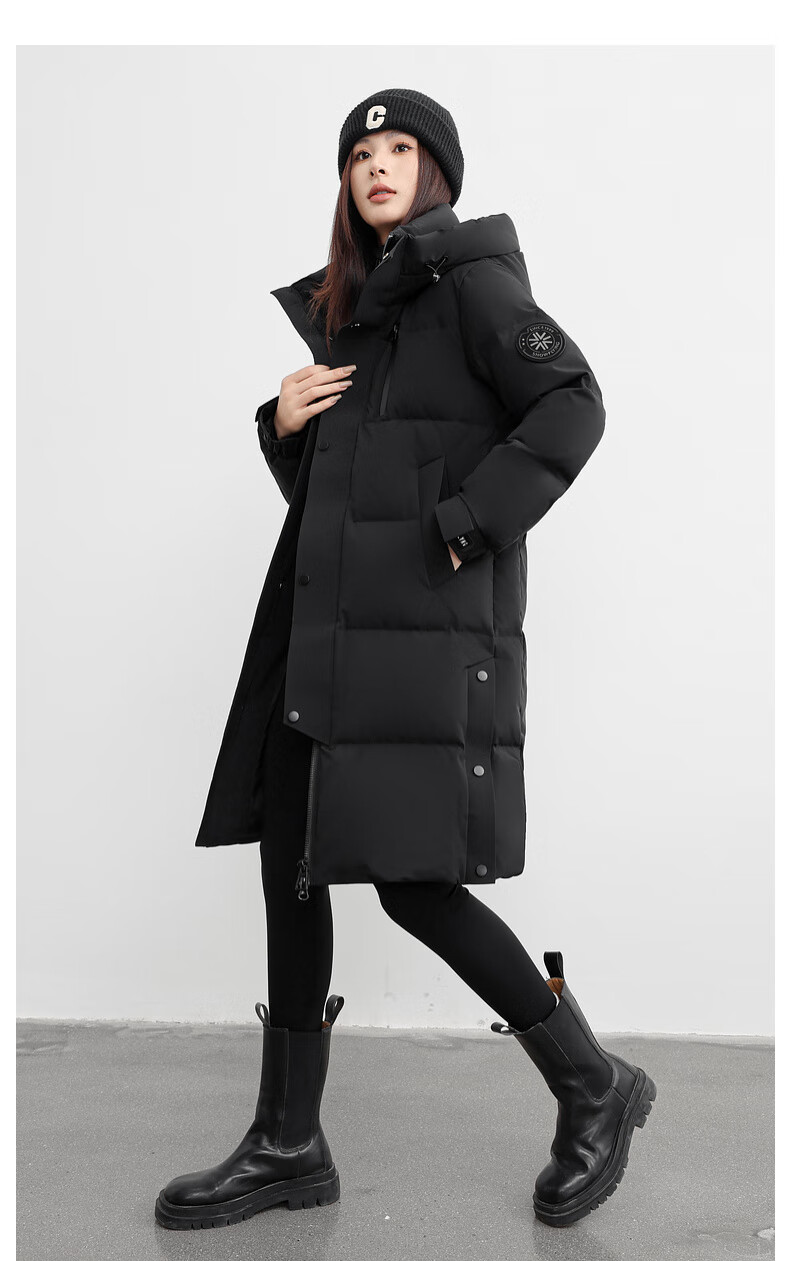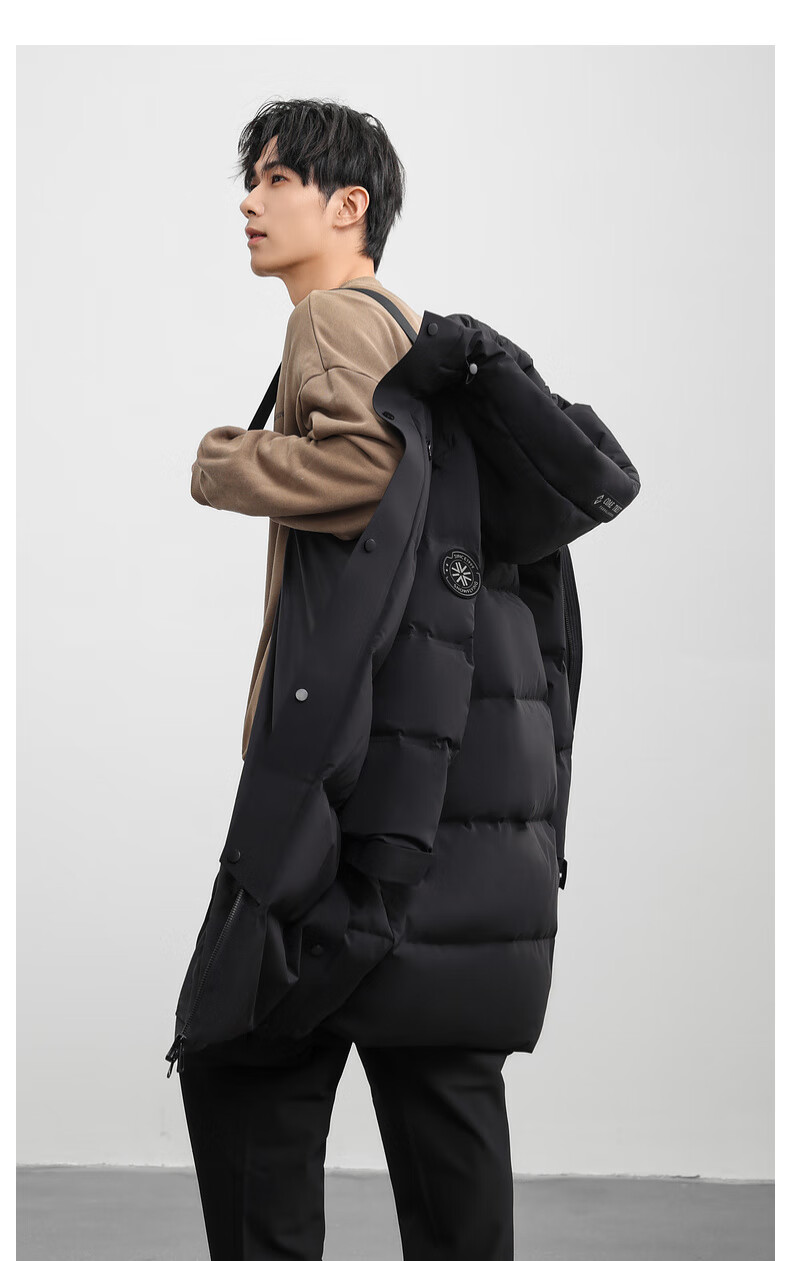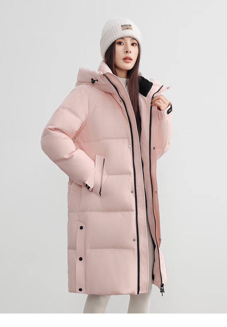 雪中飞新款中长款连帽羽绒服男女同款时尚简约保暖抗寒休闲舒适 鸿运迷彩|9196 2XL /180/100A