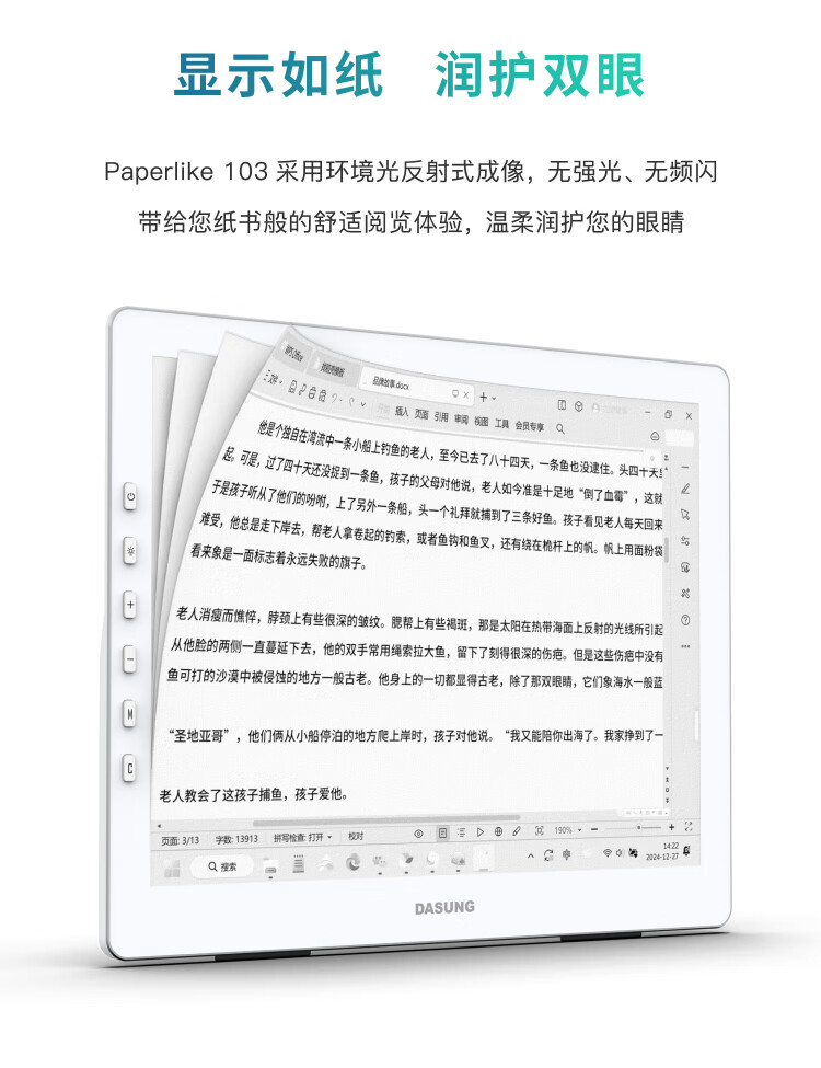 DASUNG Paperlike 103 Revolutionary 10,3-Zoll-Augenschutz-Tintenbildschirm-Display 60-Hz-Ultra-High-Pinselcode-Eingabetool für Web-Autoren Kompatibel mit Win und Mac Paperlike 103 Revolutionary ist standardmäßig im Lieferumfang enthalten