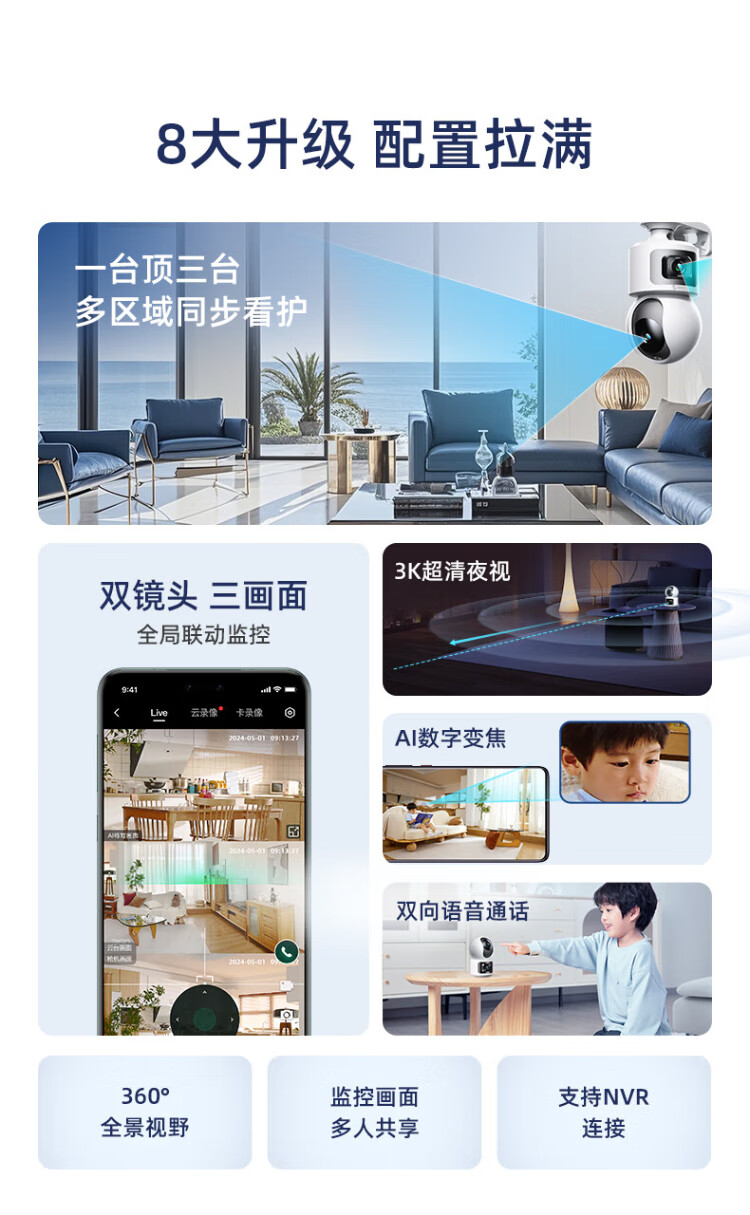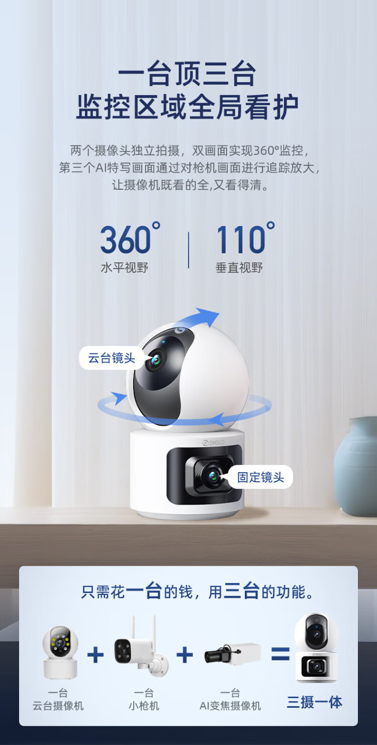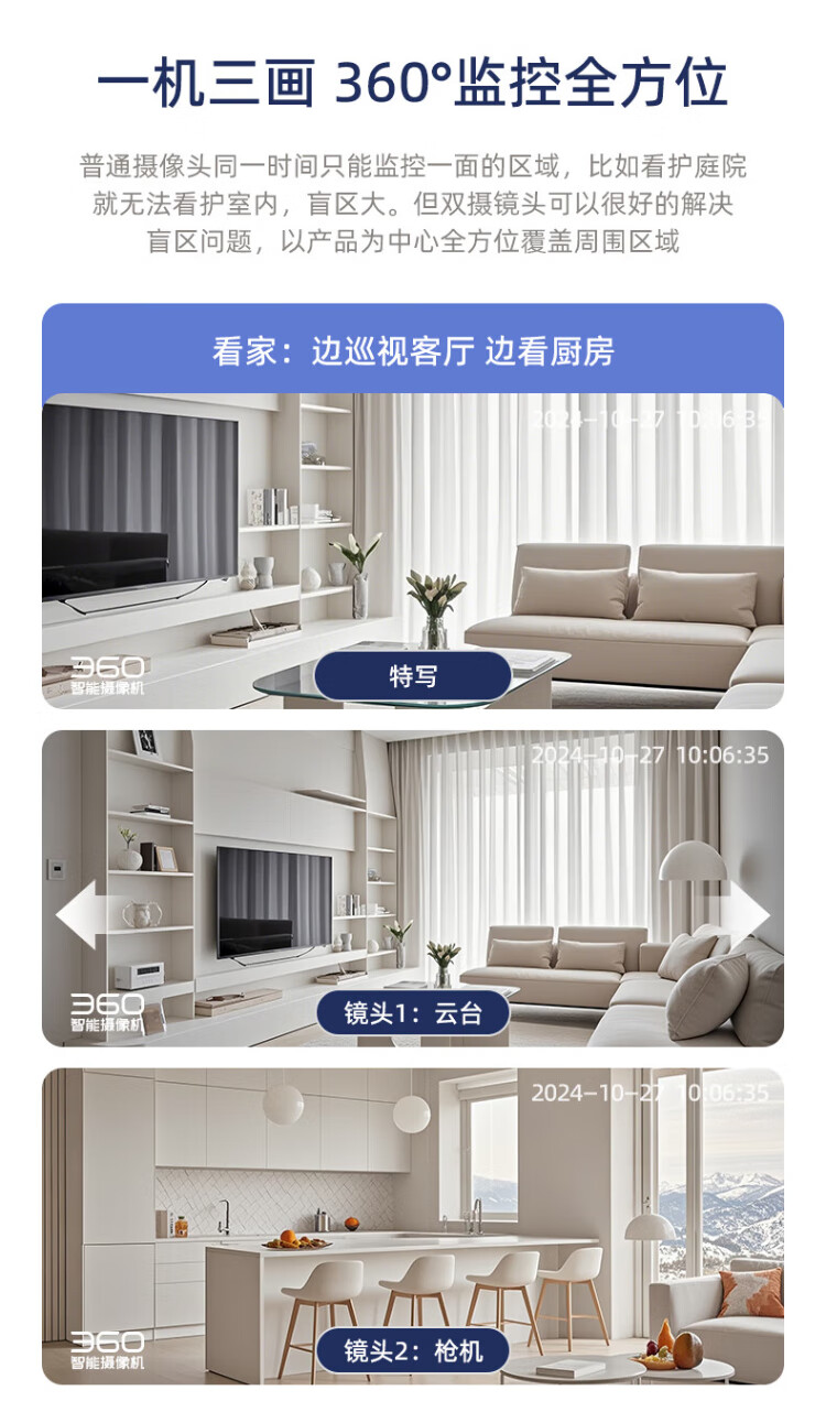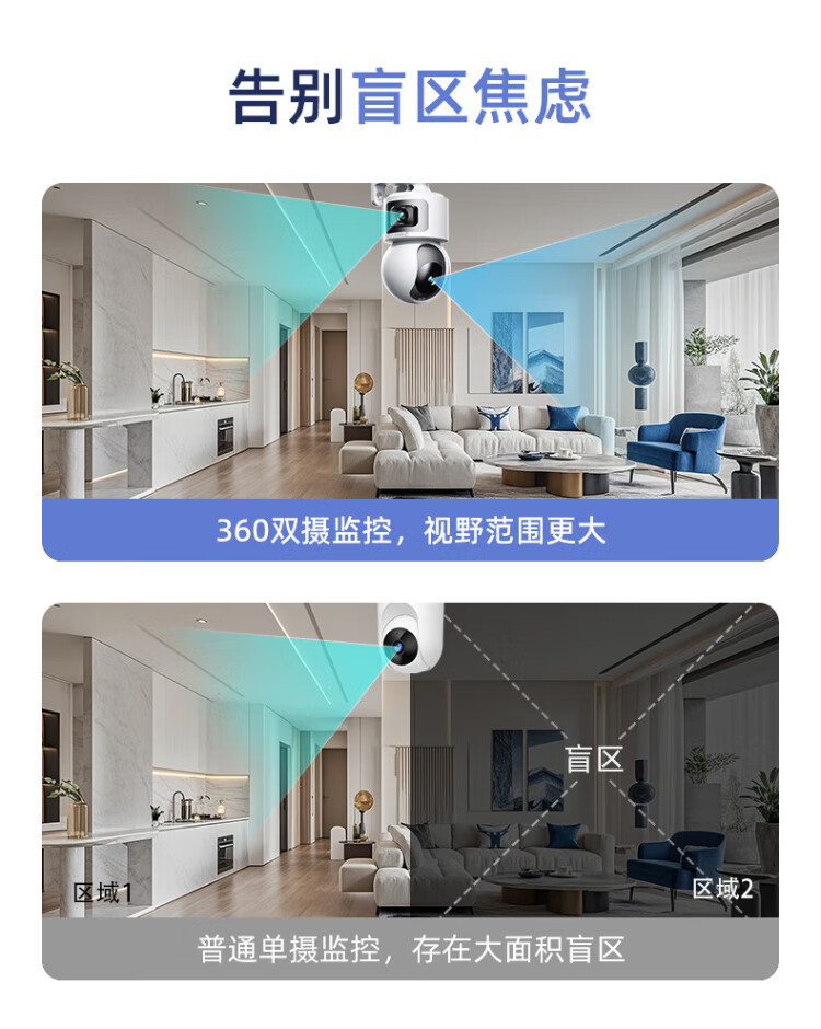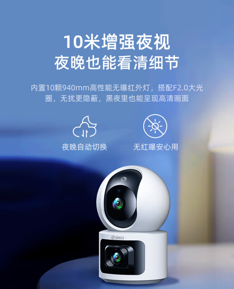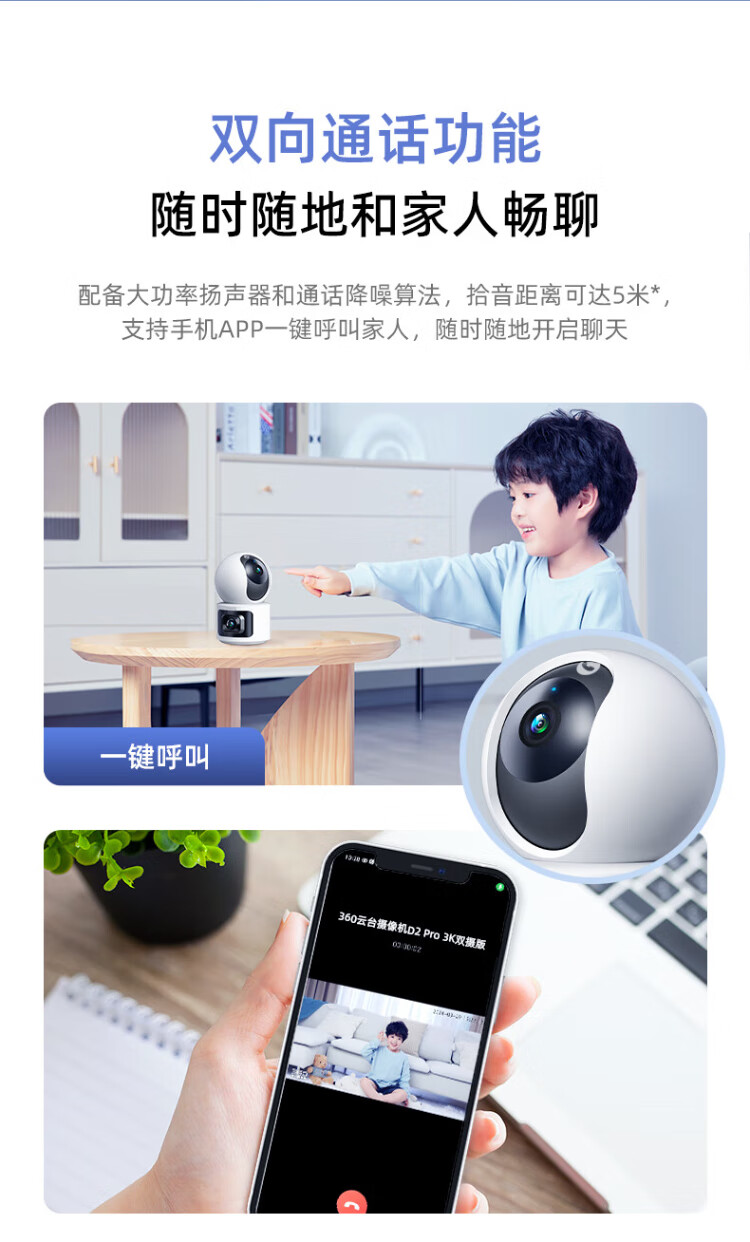 360 smart home security camera Home D2Pro dual camera 10 million monitor 360 panoramic view without blind spots with night vision Wireless remote indoor anti-theft AI care Dual camera flagship model Home PTZ dual camera 10 million + 128G