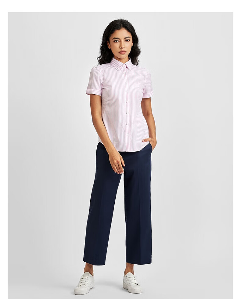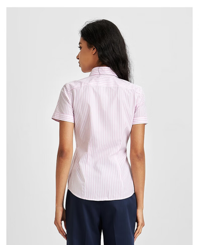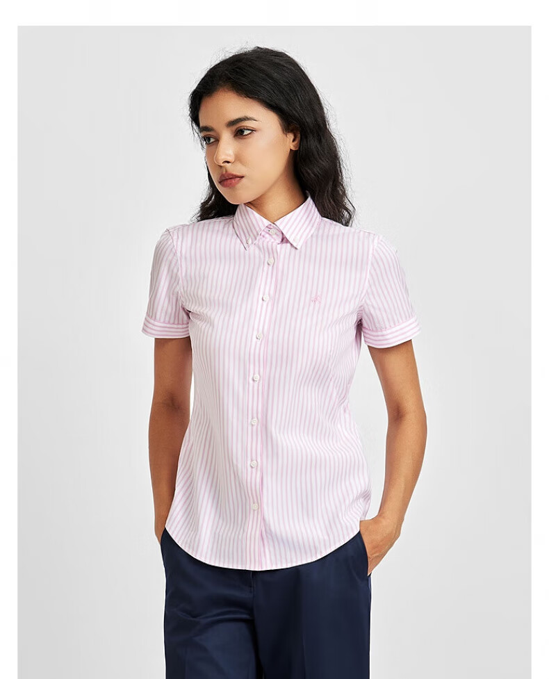 布克兄弟(BrooksBrothers)[易打理]女士夏季新款supima棉短袖衬衫 B695-粉色 S 4