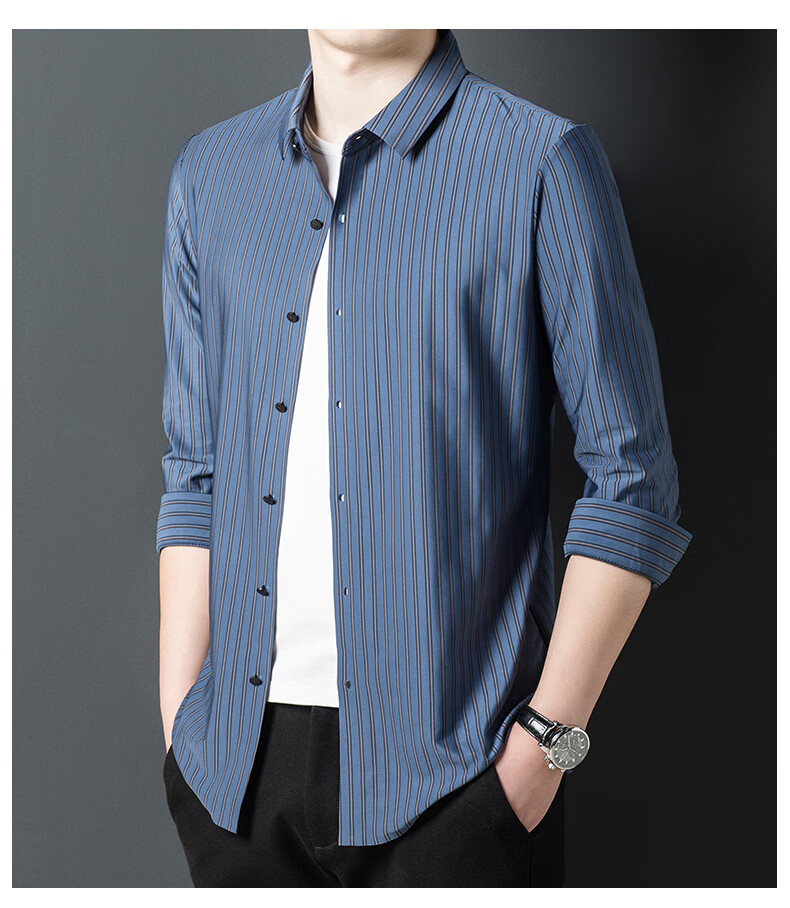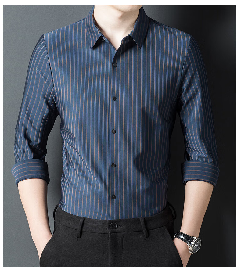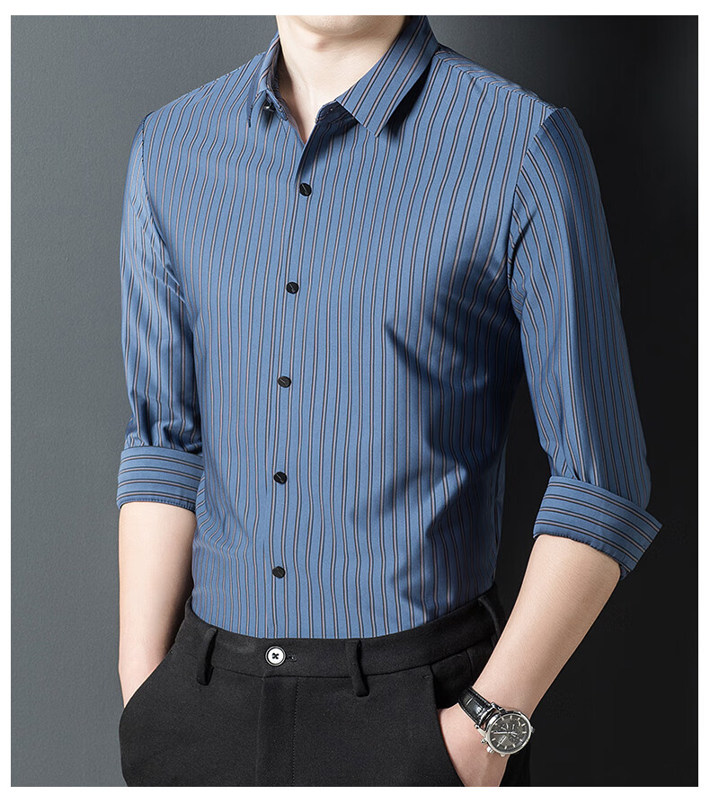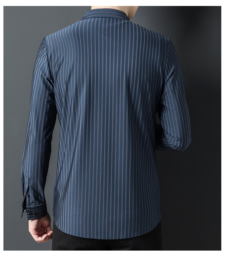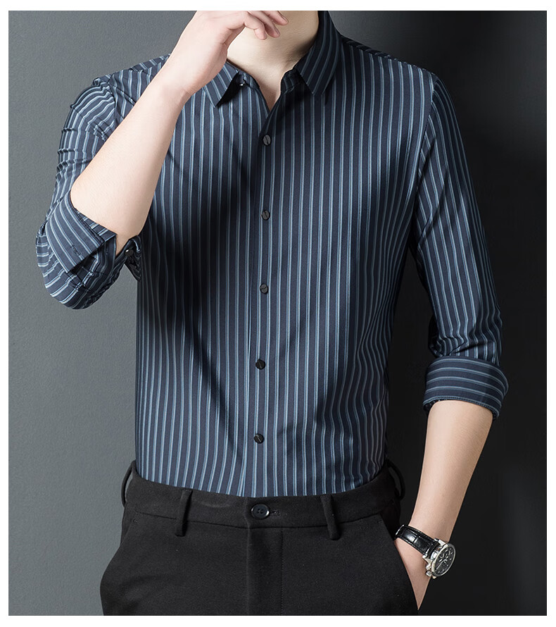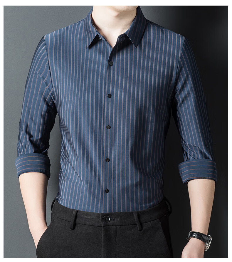 赢瑞衬衫男士无痕长袖中年春秋季新款商务休闲弹力免烫条纹衬衣男 9928-上青 XL 175【建议130-150斤】