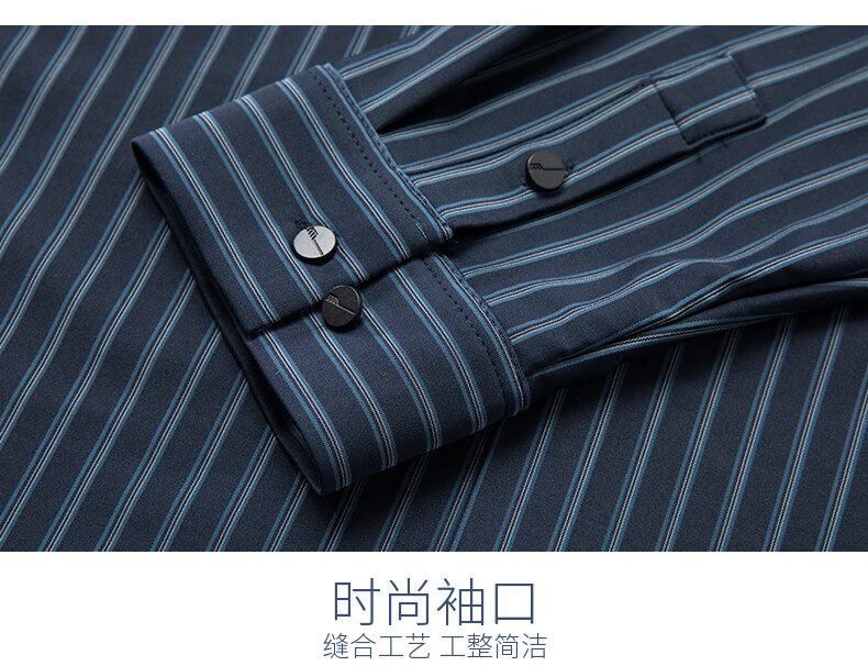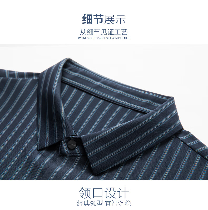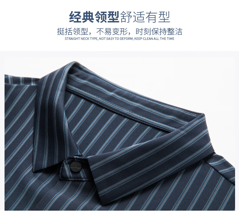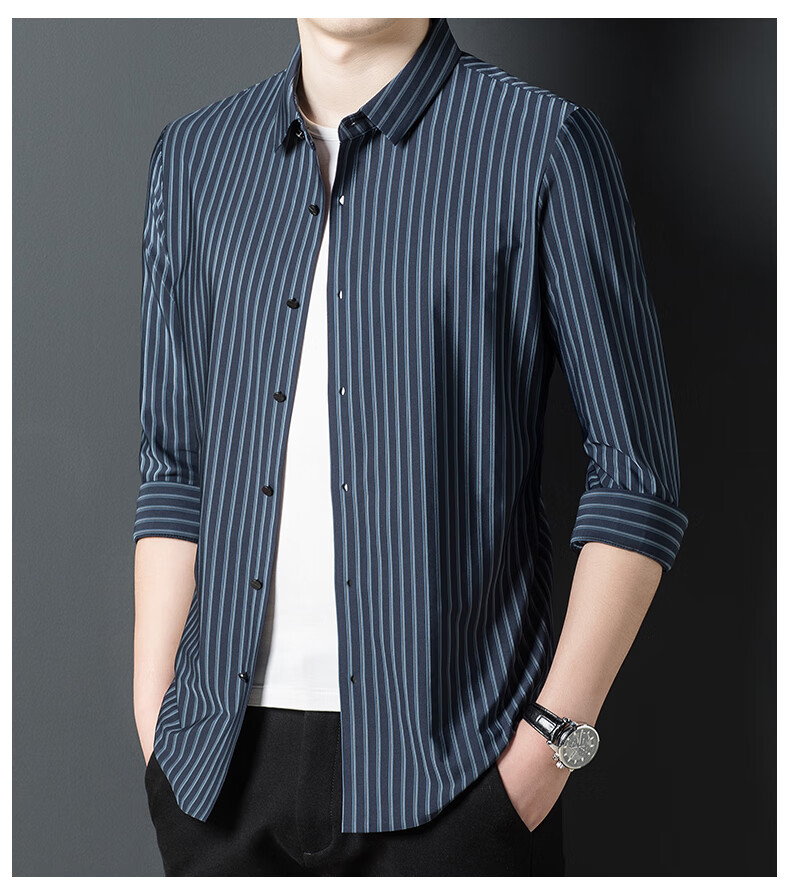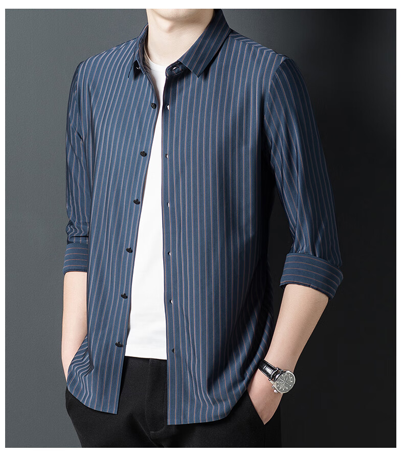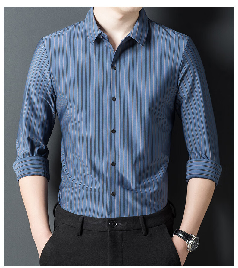 赢瑞衬衫男士无痕长袖中年春秋季新款商务休闲弹力免烫条纹衬衣男 9928-上青 XL 175【建议130-150斤】