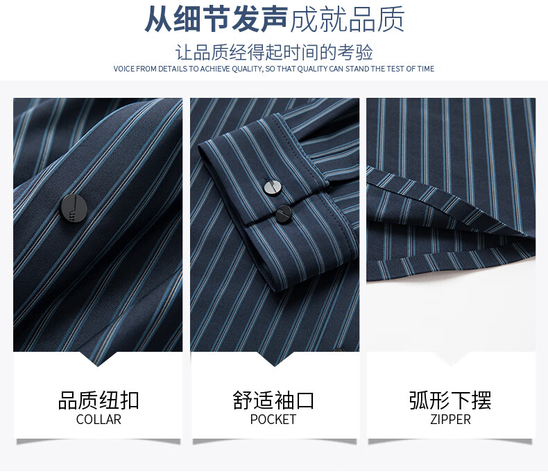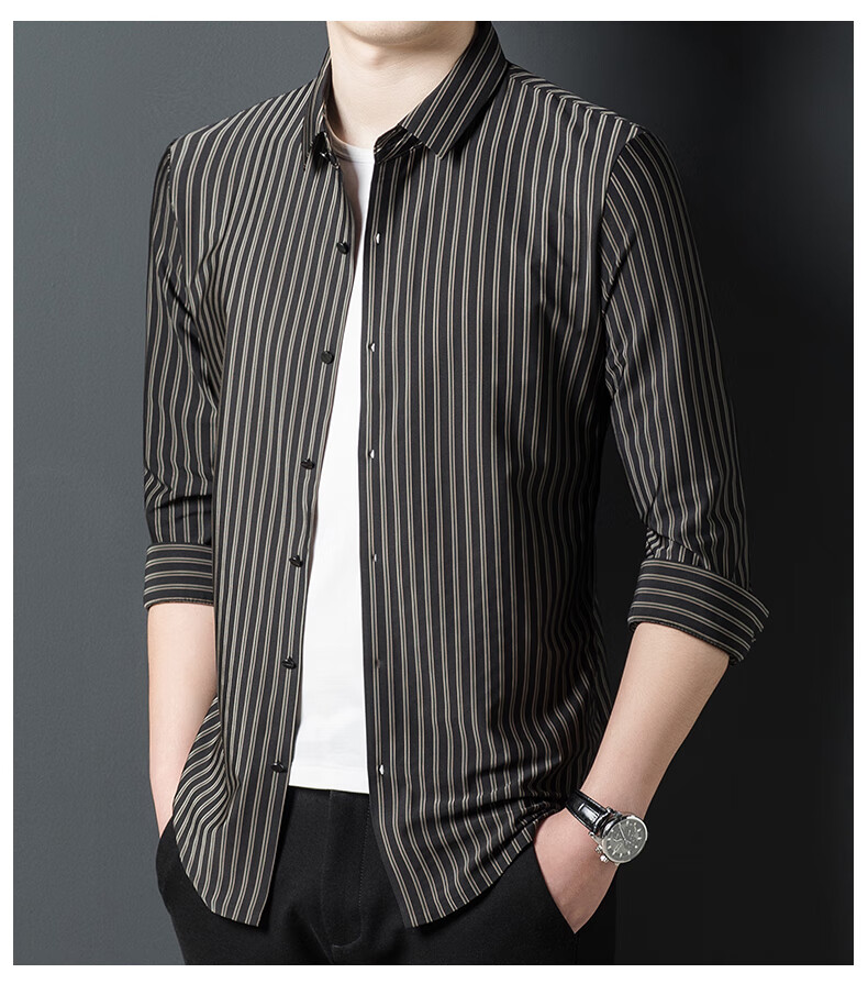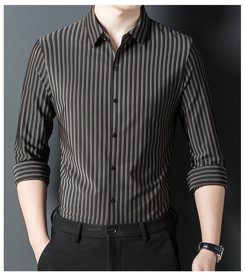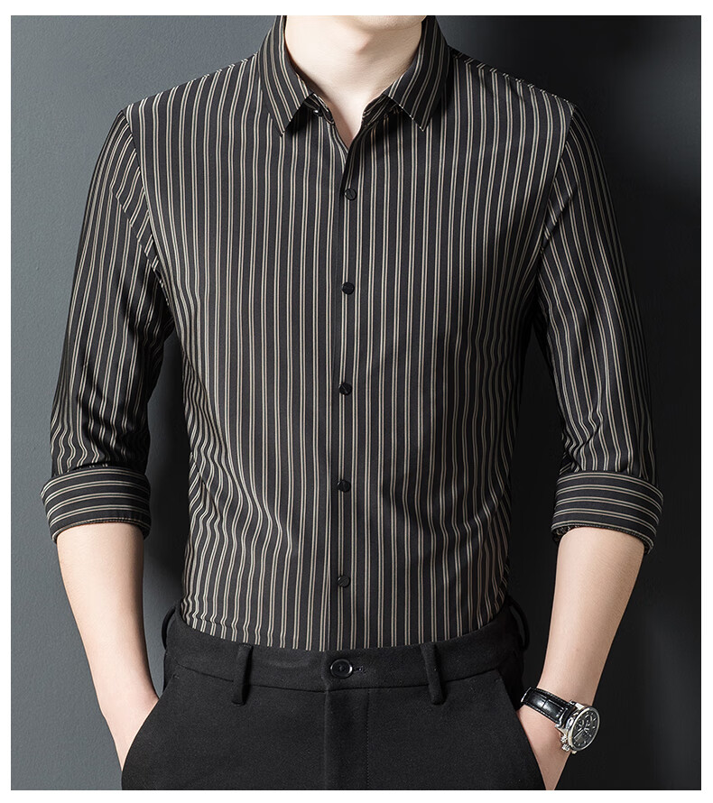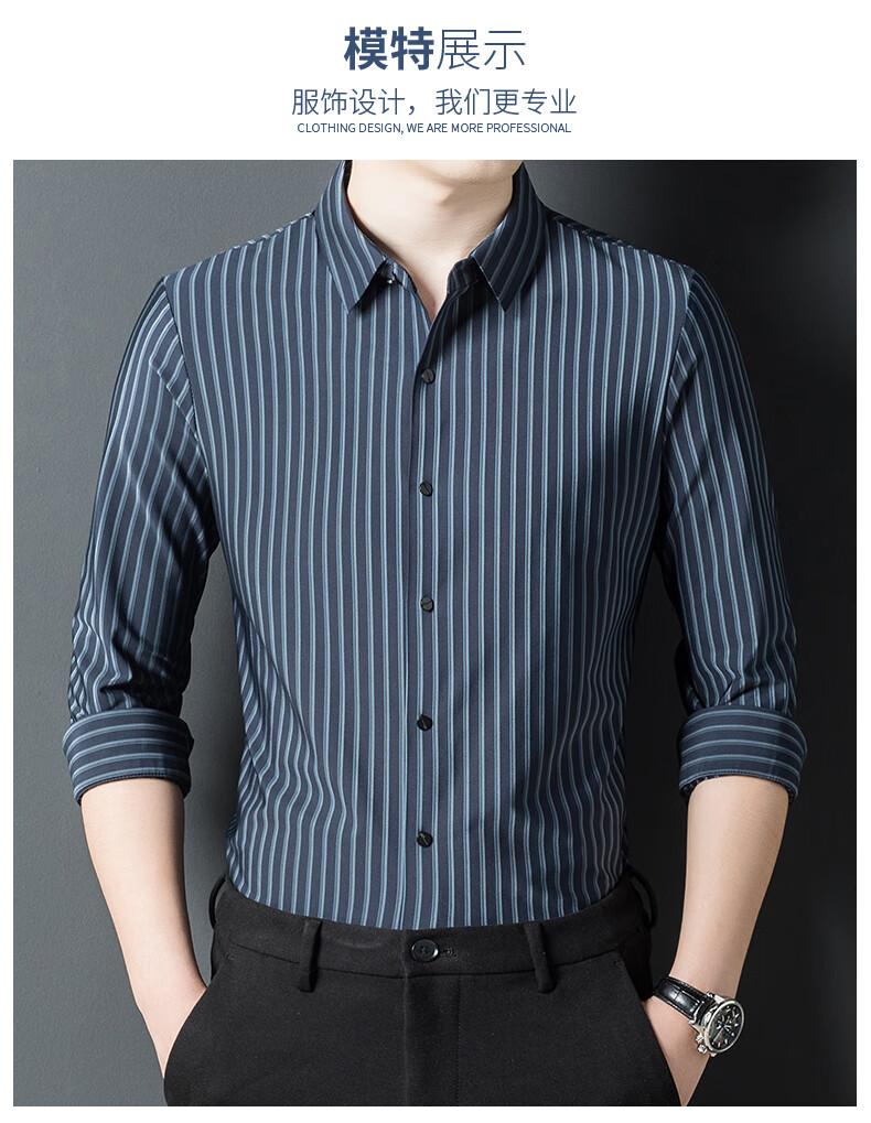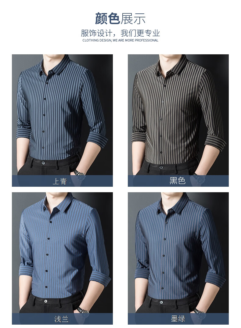 赢瑞衬衫男士无痕长袖中年春秋季新款商务休闲弹力免烫条纹衬衣男 9928-上青 XL 175【建议130-150斤】