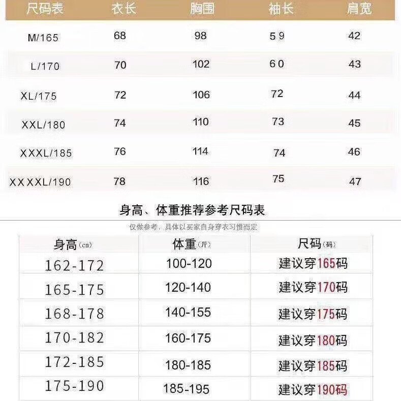 China (cm) 160-165/84-86 165-170 / 88-90 167-172 / 92-96 168-173 / 98-102 170-176 / 106-110